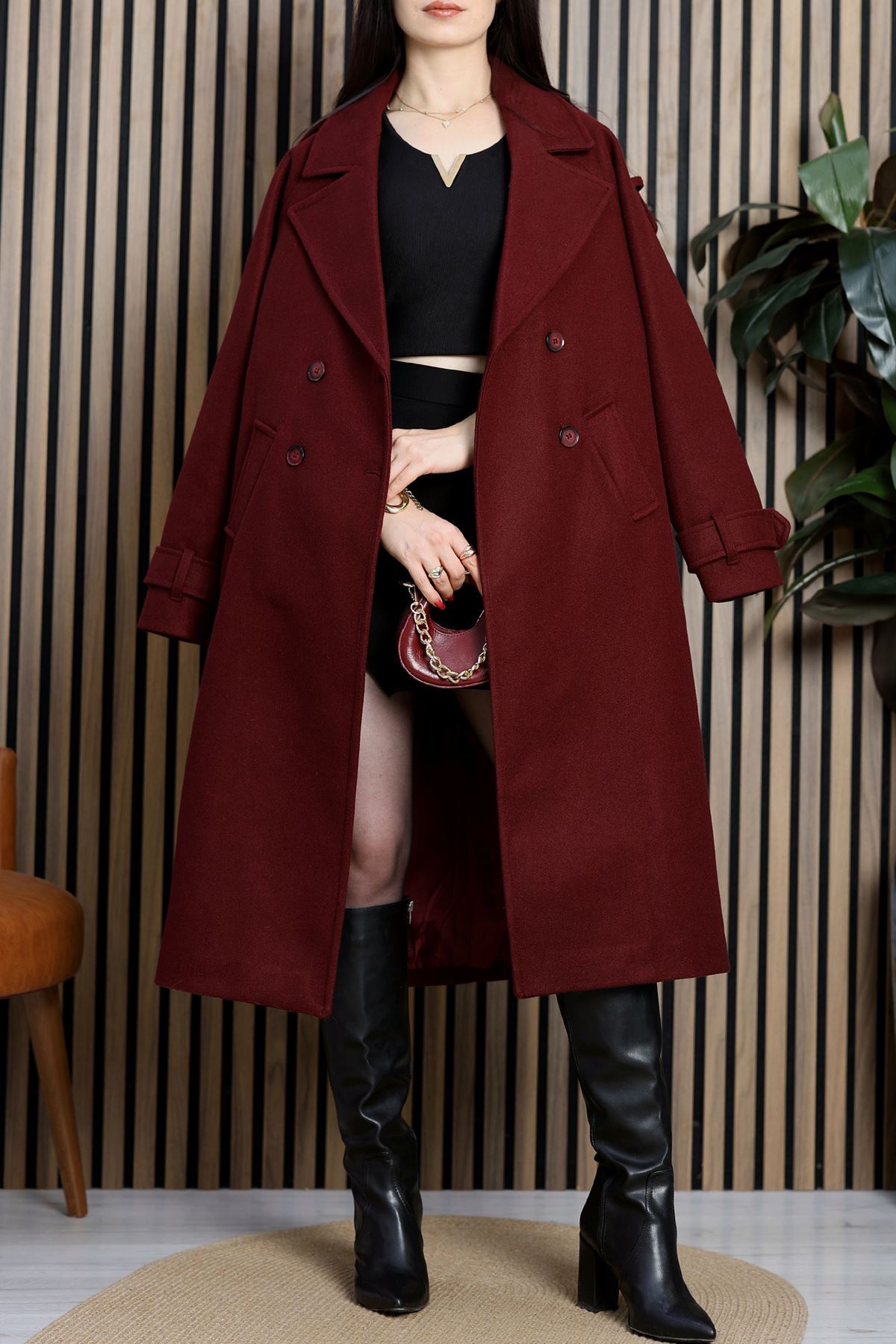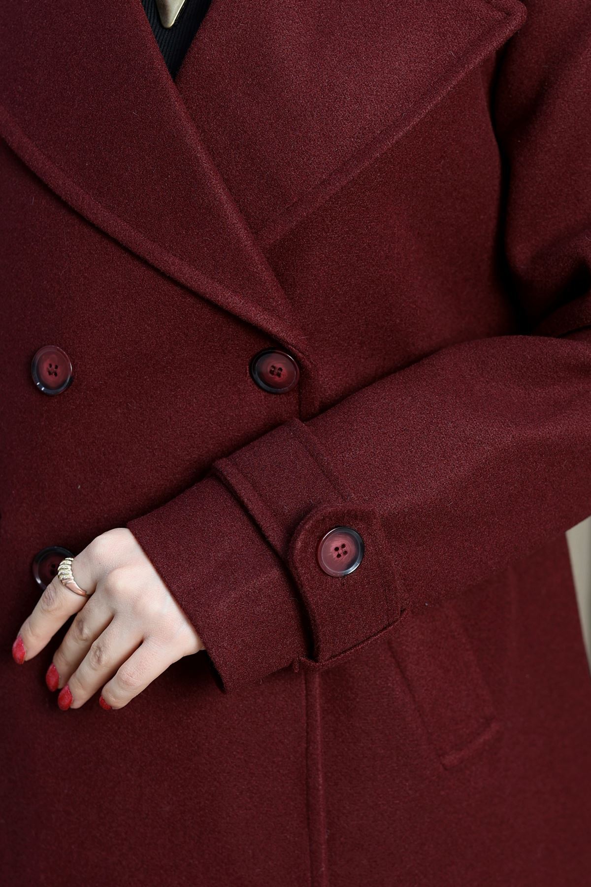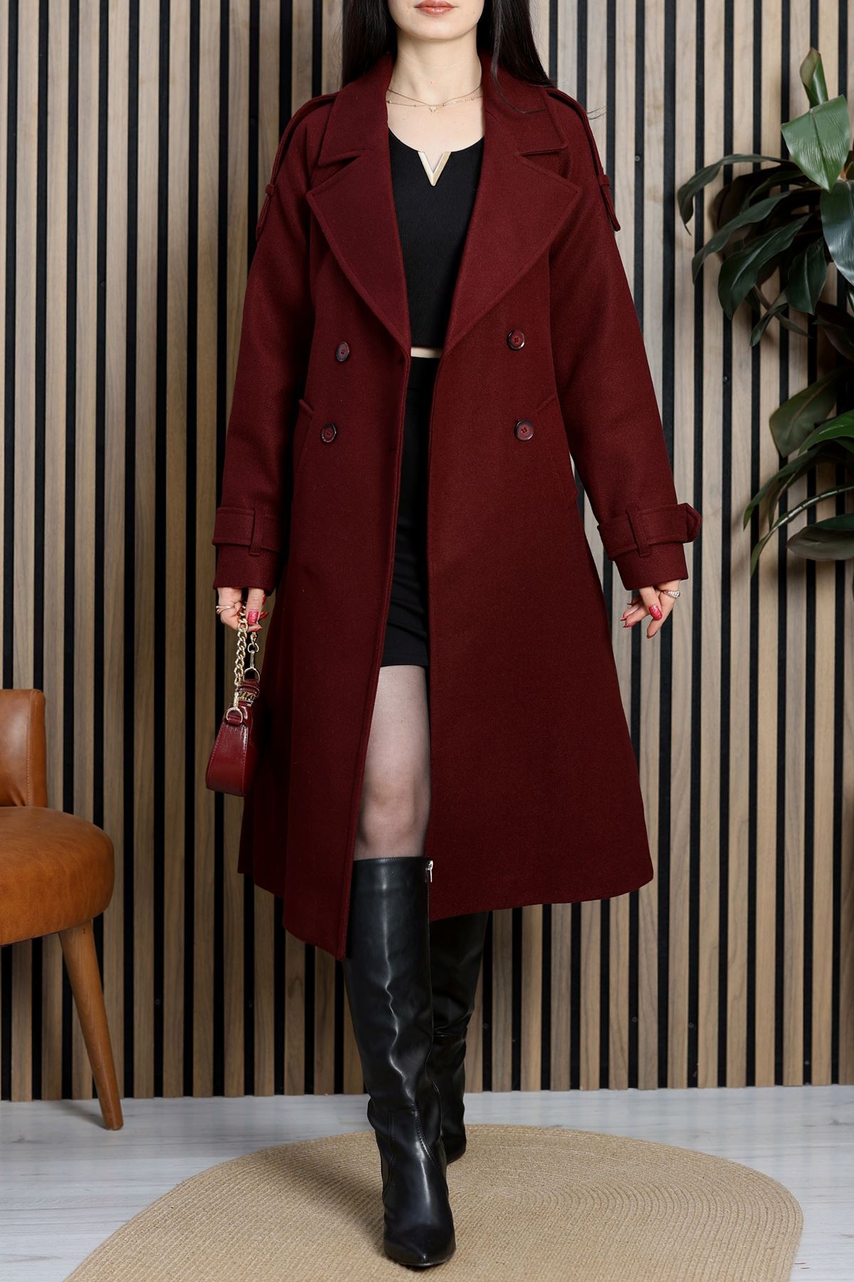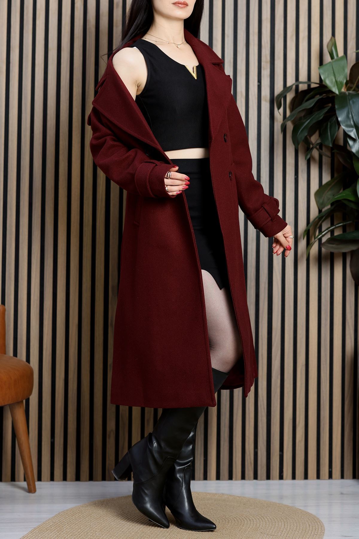 Ressam Kuşaklı Kaşe Kaban Bordo - 3198.1322.