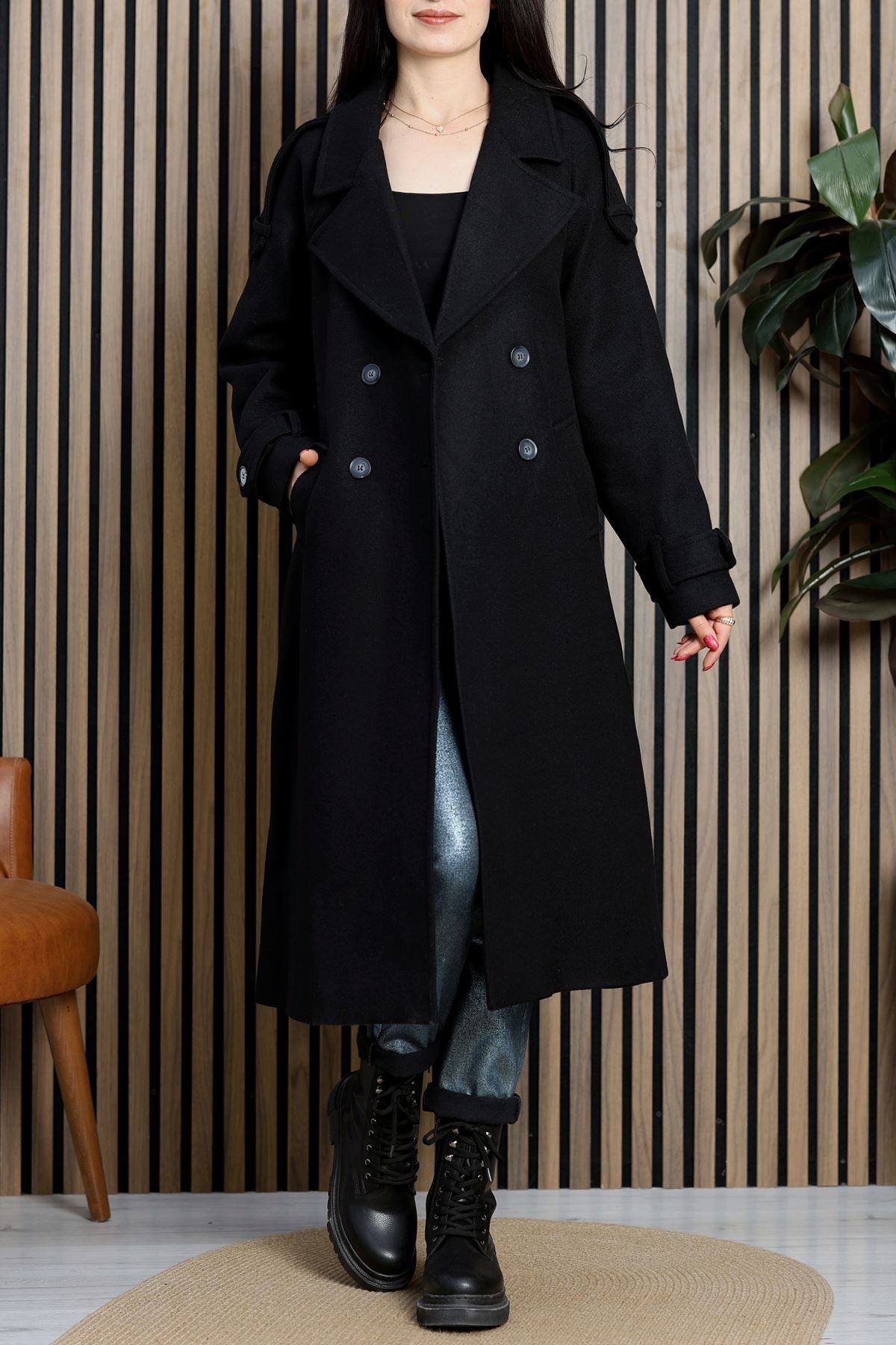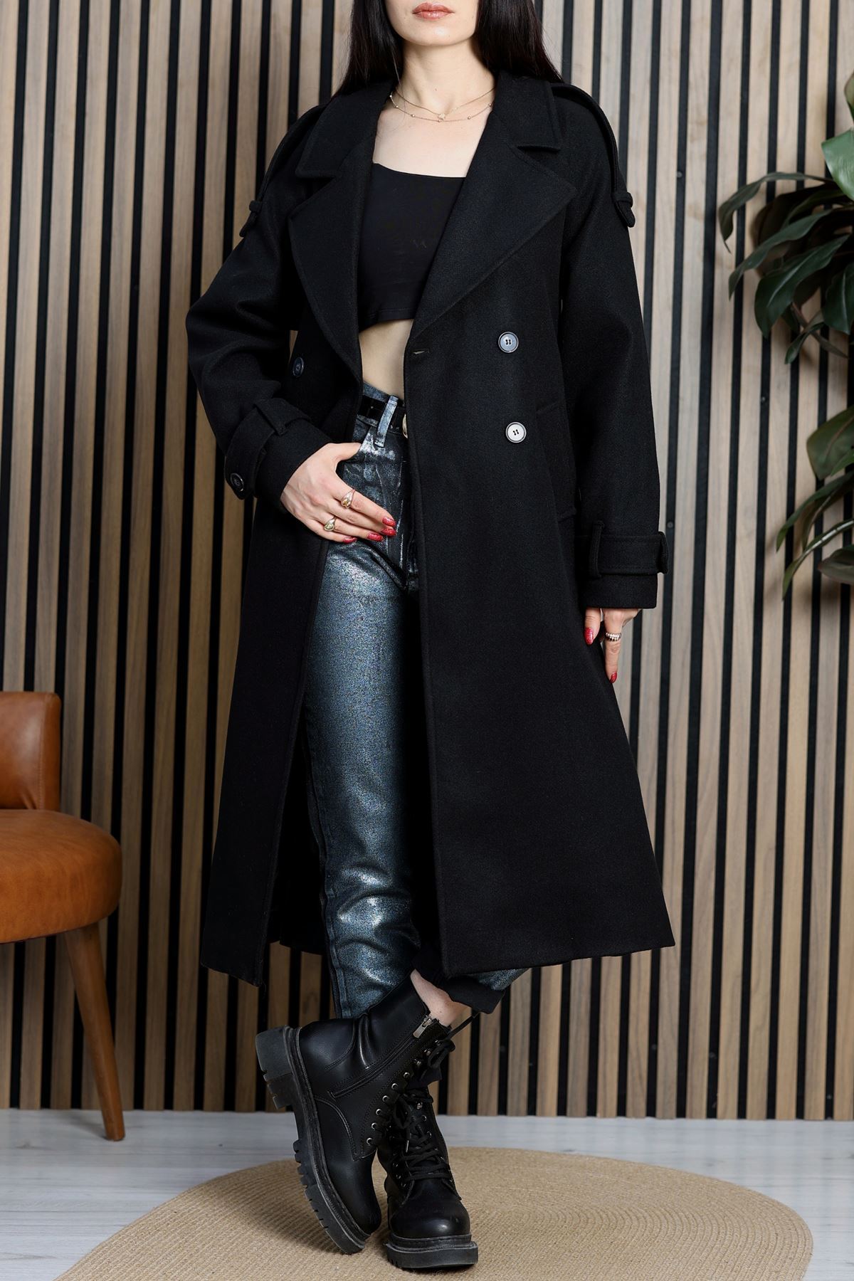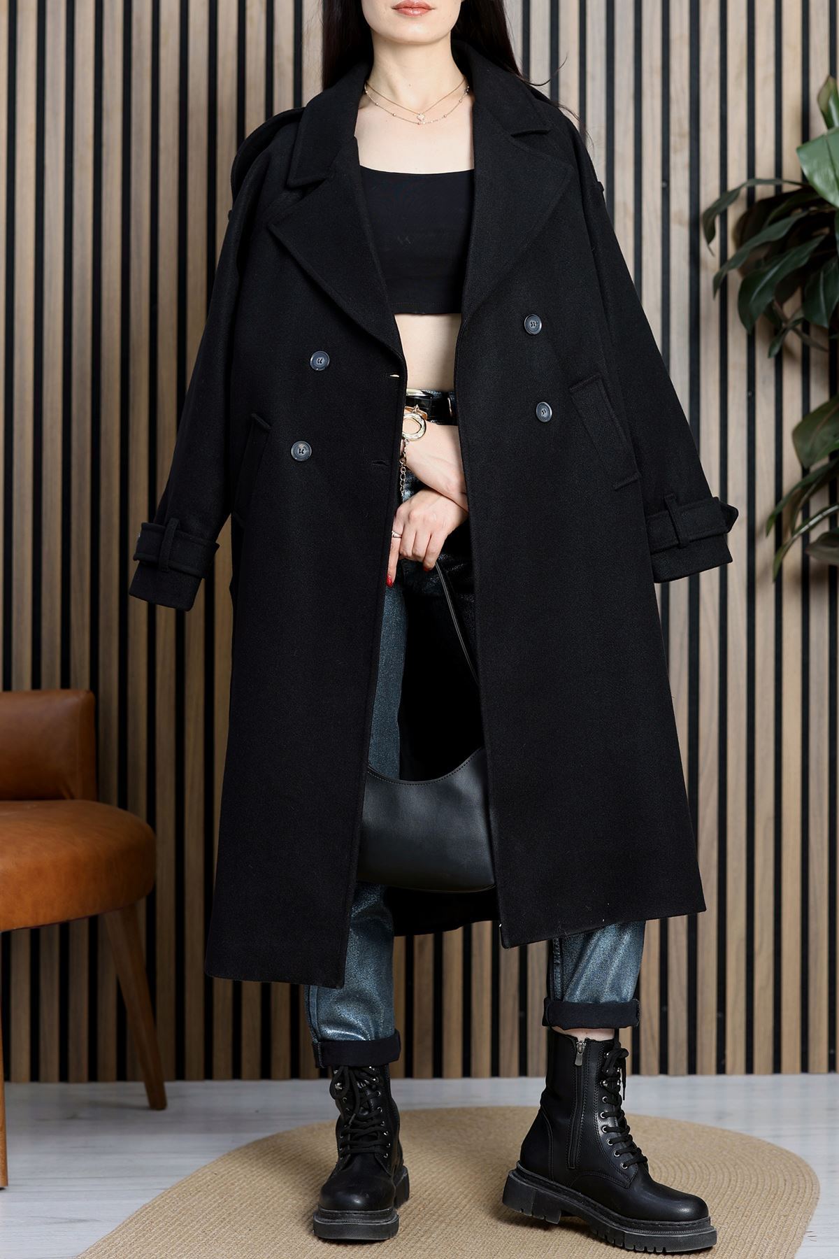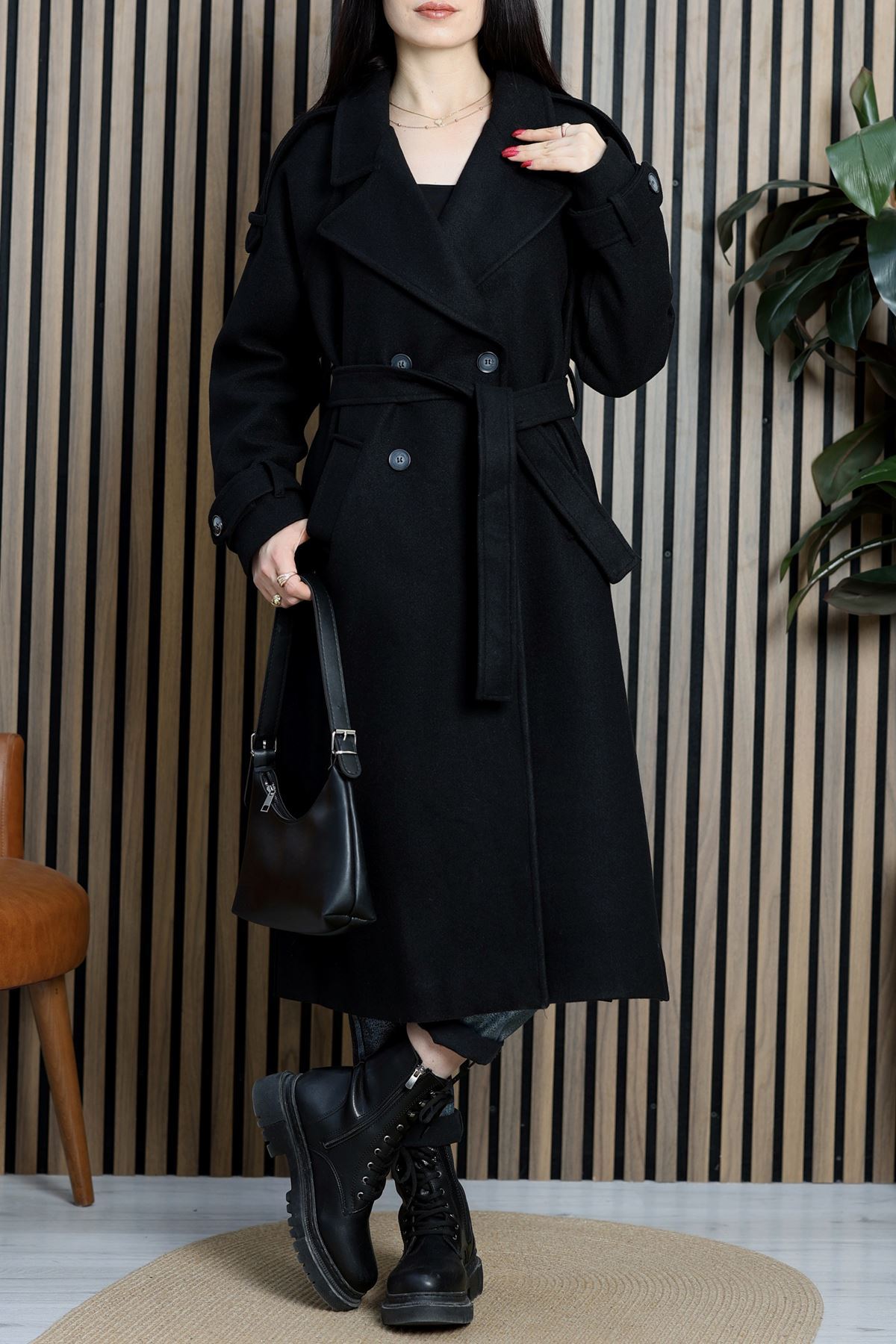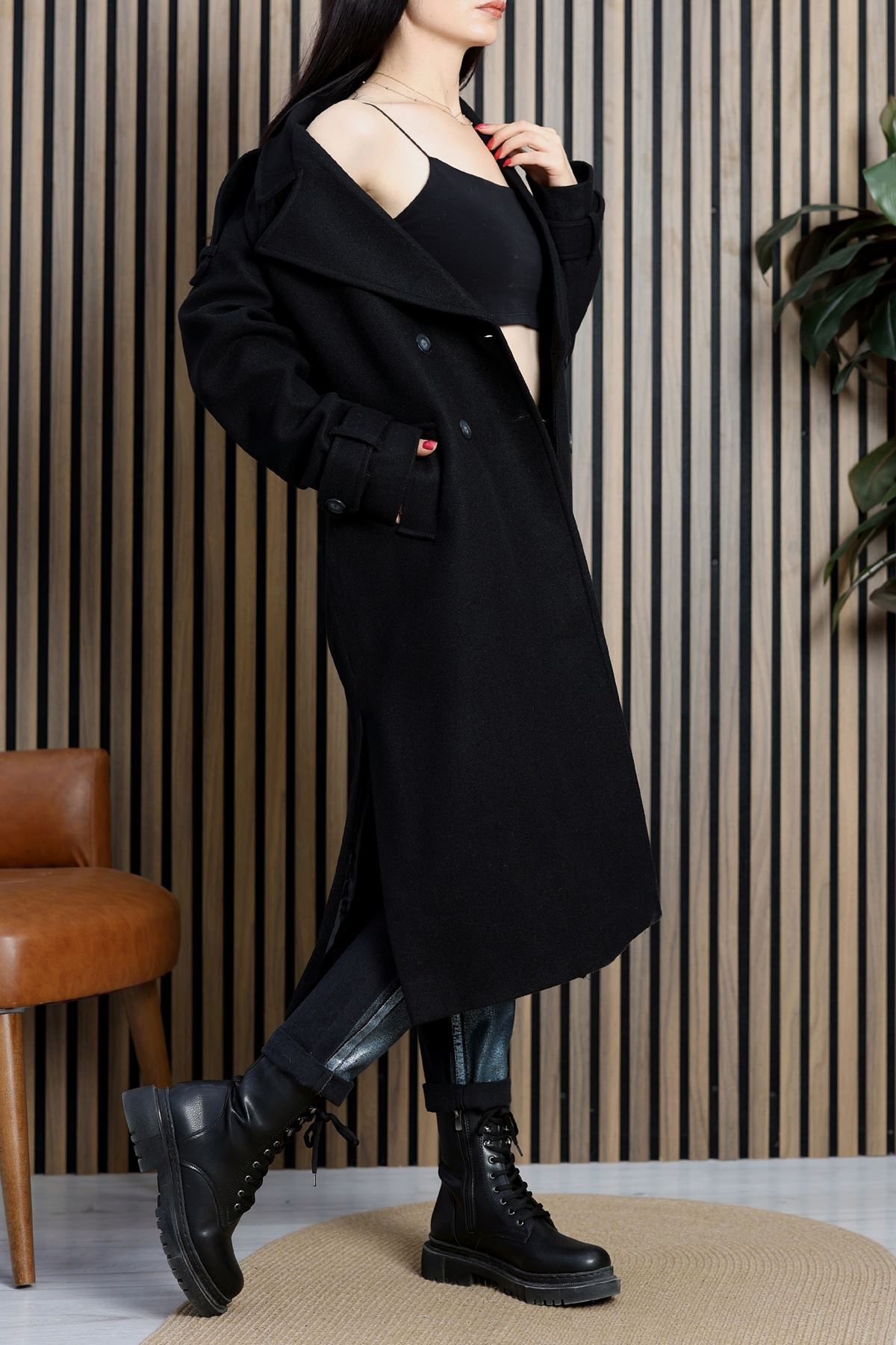 Ressam Kuşaklı Kaşe Kaban Siyah - 3198.1322.