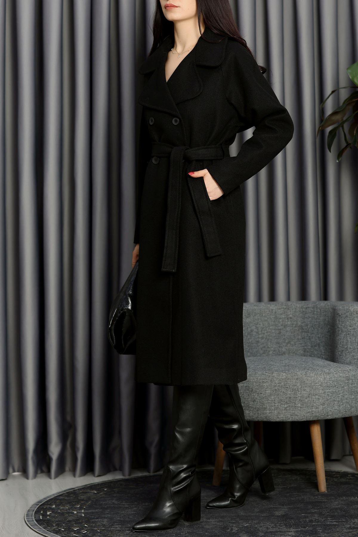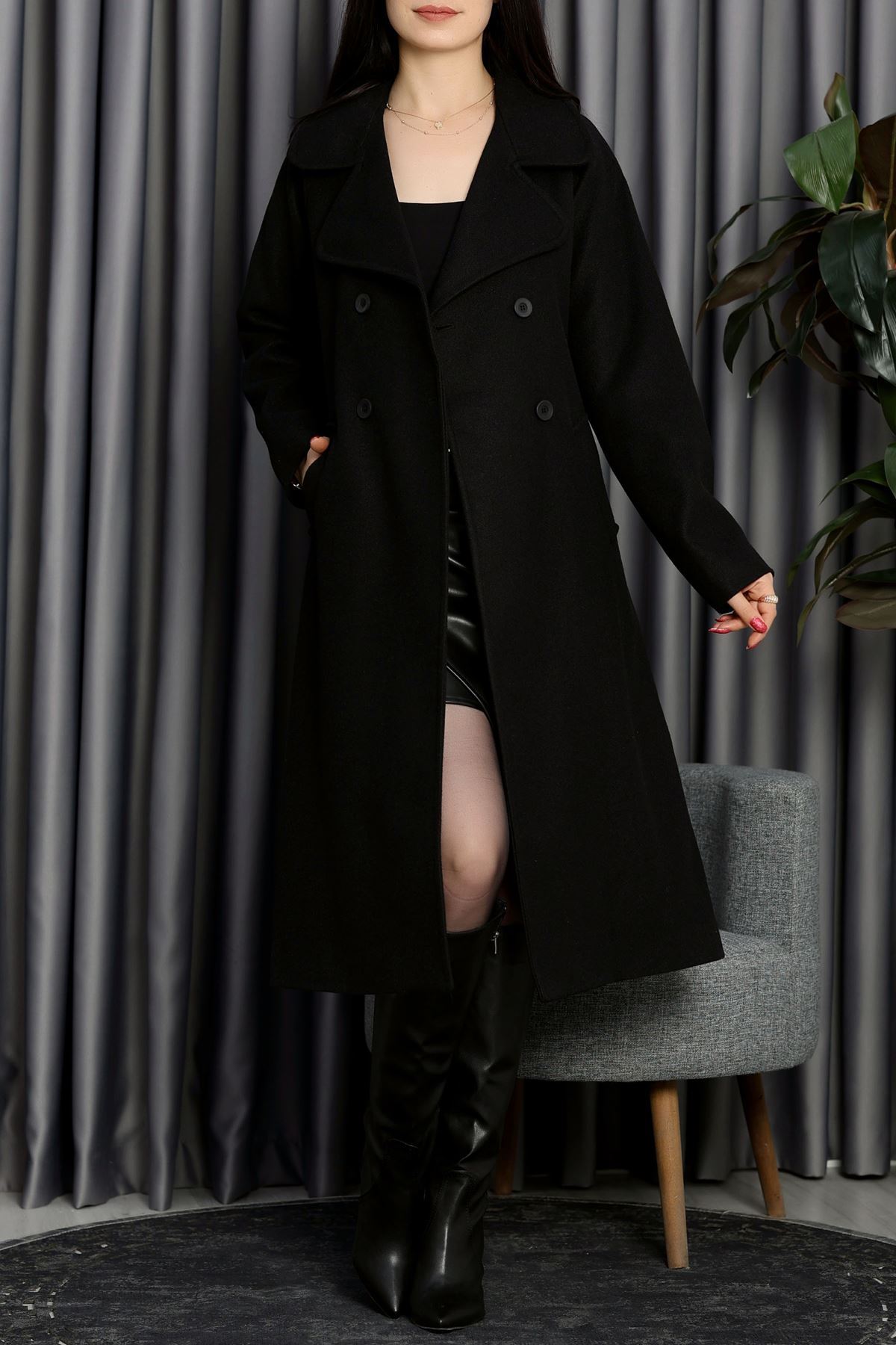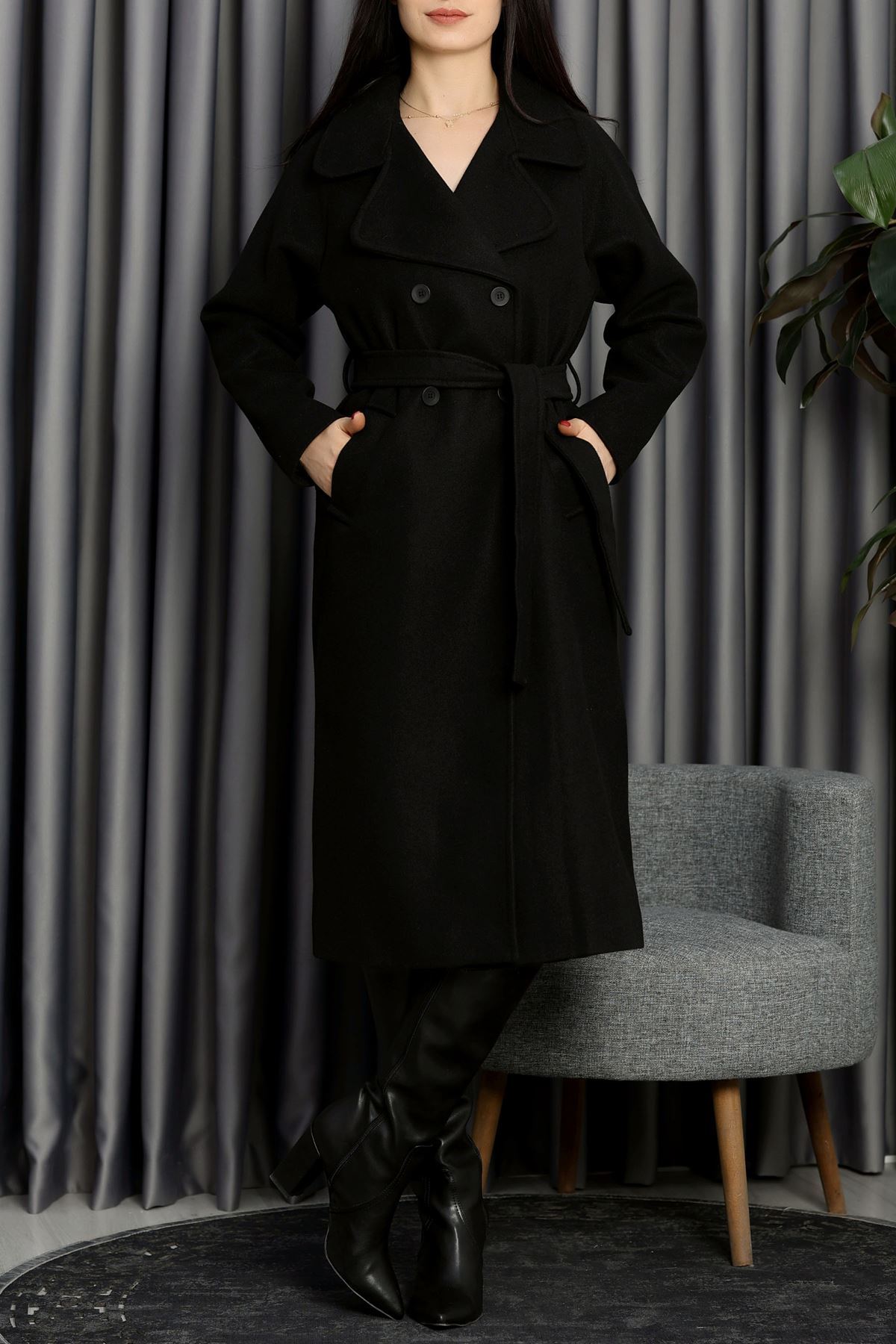 Ressam Kuşaklı Kaşe Kaban Siyah - 3207.1322.