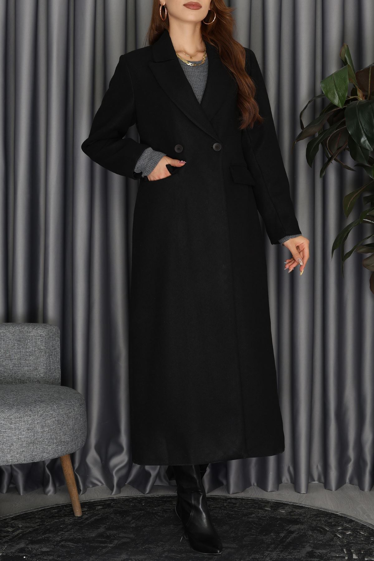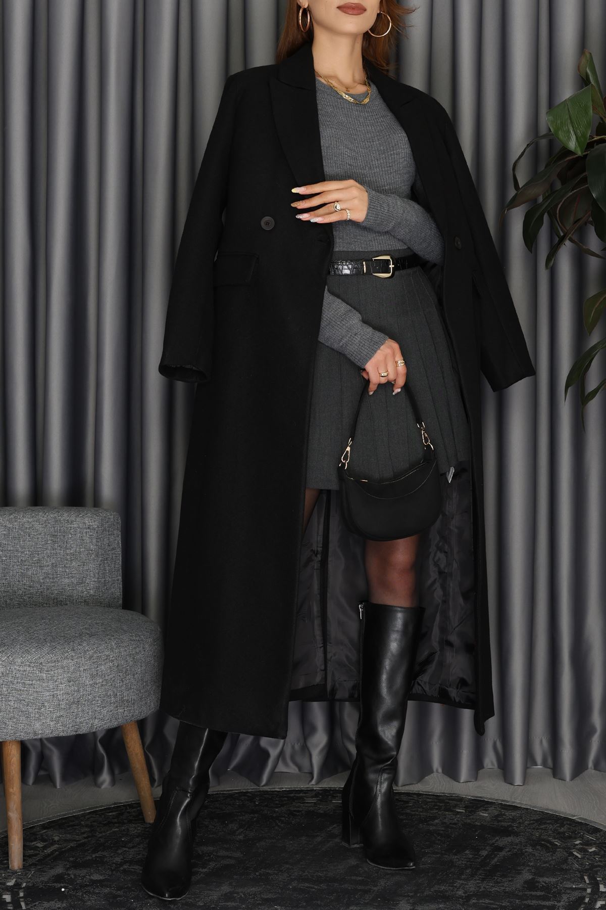 Ressam Kuşaklı Kaşe Kaban Siyah - 3208.1322.