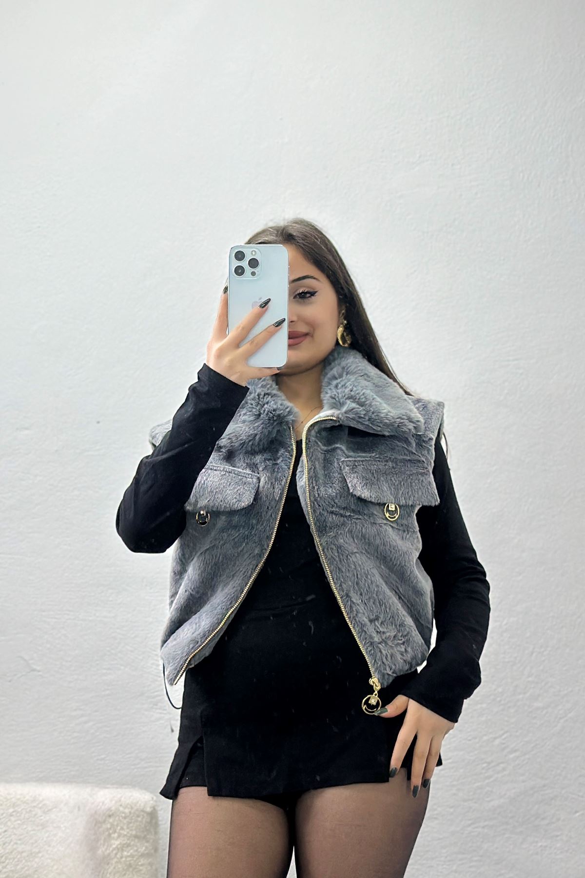 Ressam Yaka Kürklü Stoperli Yelek Dumangri - 31770.1322.