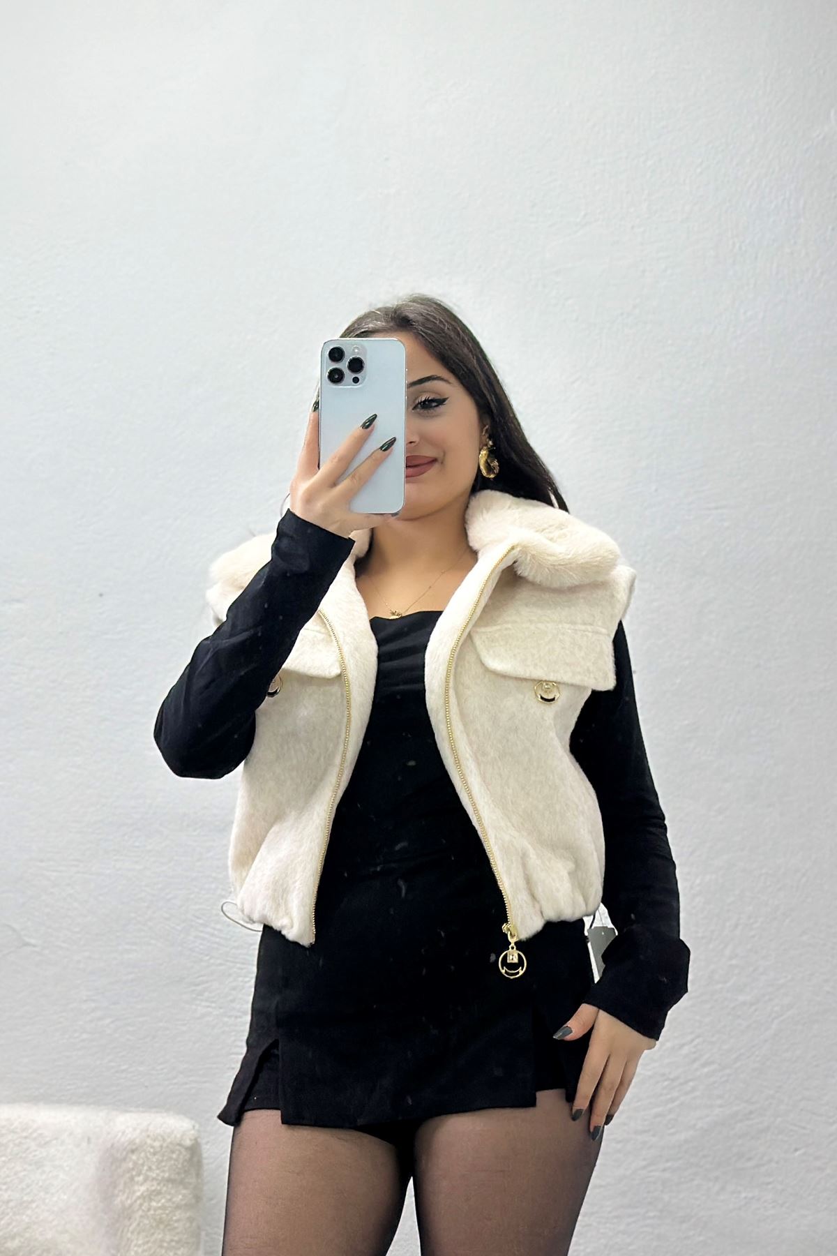 Ressam Yaka Kürklü Stoperli Yelek Taş - 31770.1322.
