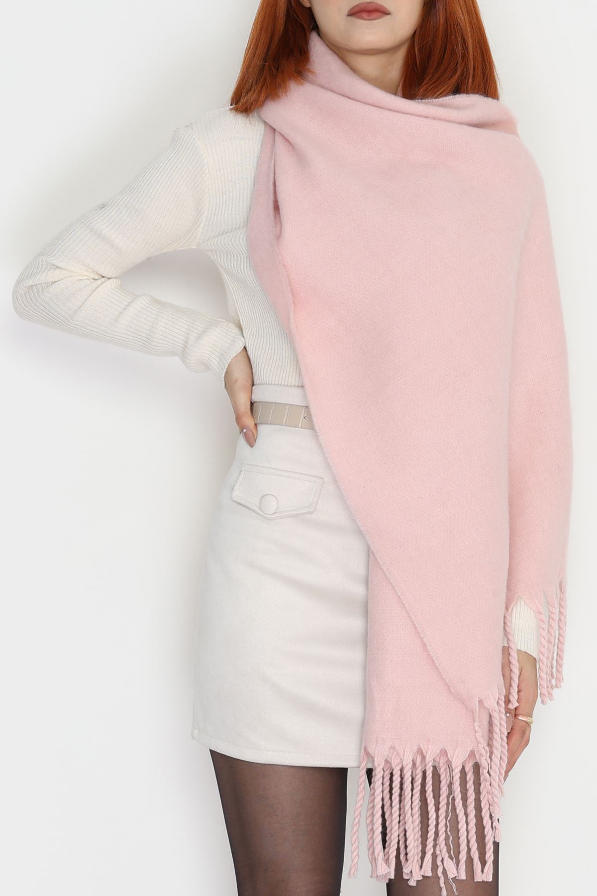 Saçaklı Düz Şal Pudra - 70865.1736.