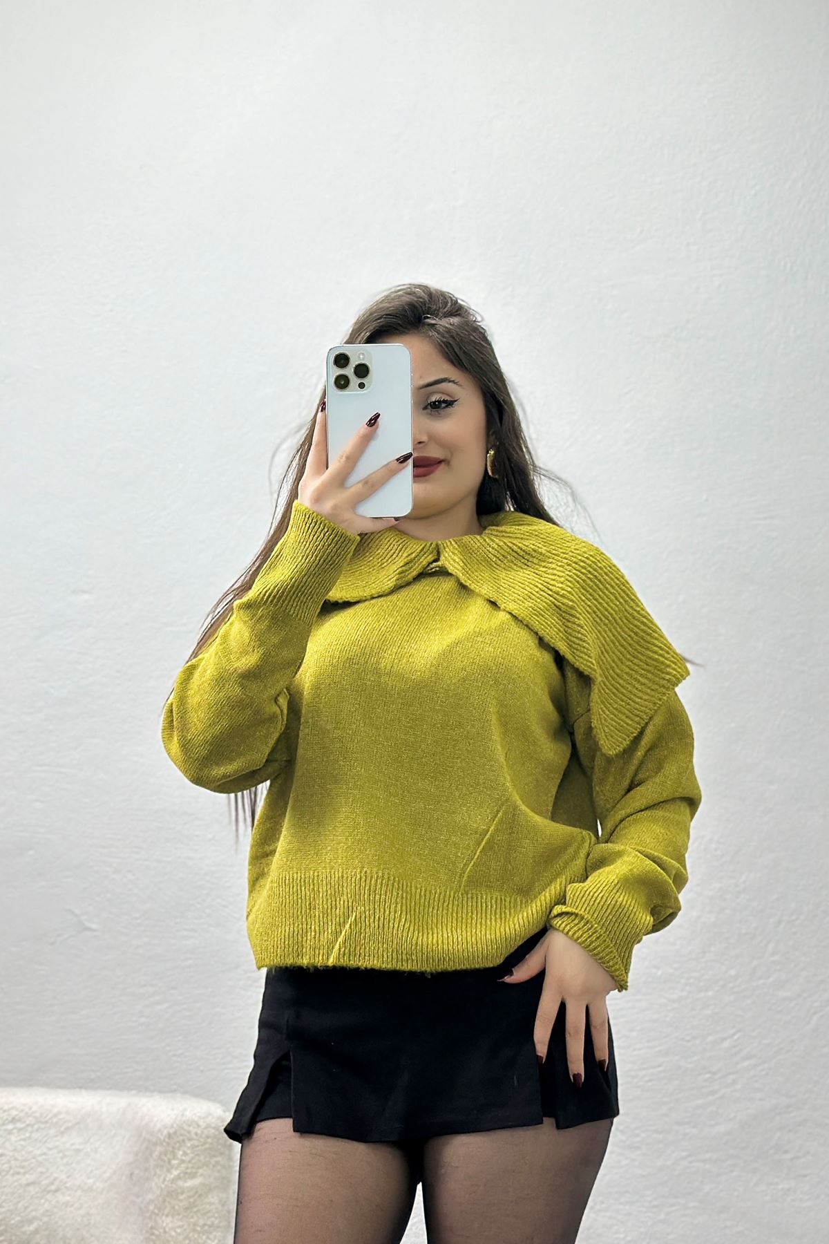 Şal Yaka Triko Yağyeşili - 2256.1765.