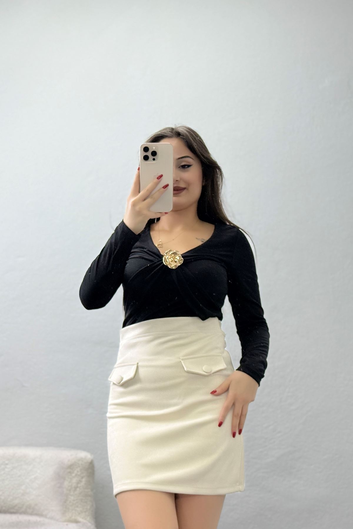 Sandy Kumaş Aksesuarlı Bluz Siyah - 70873.1918.