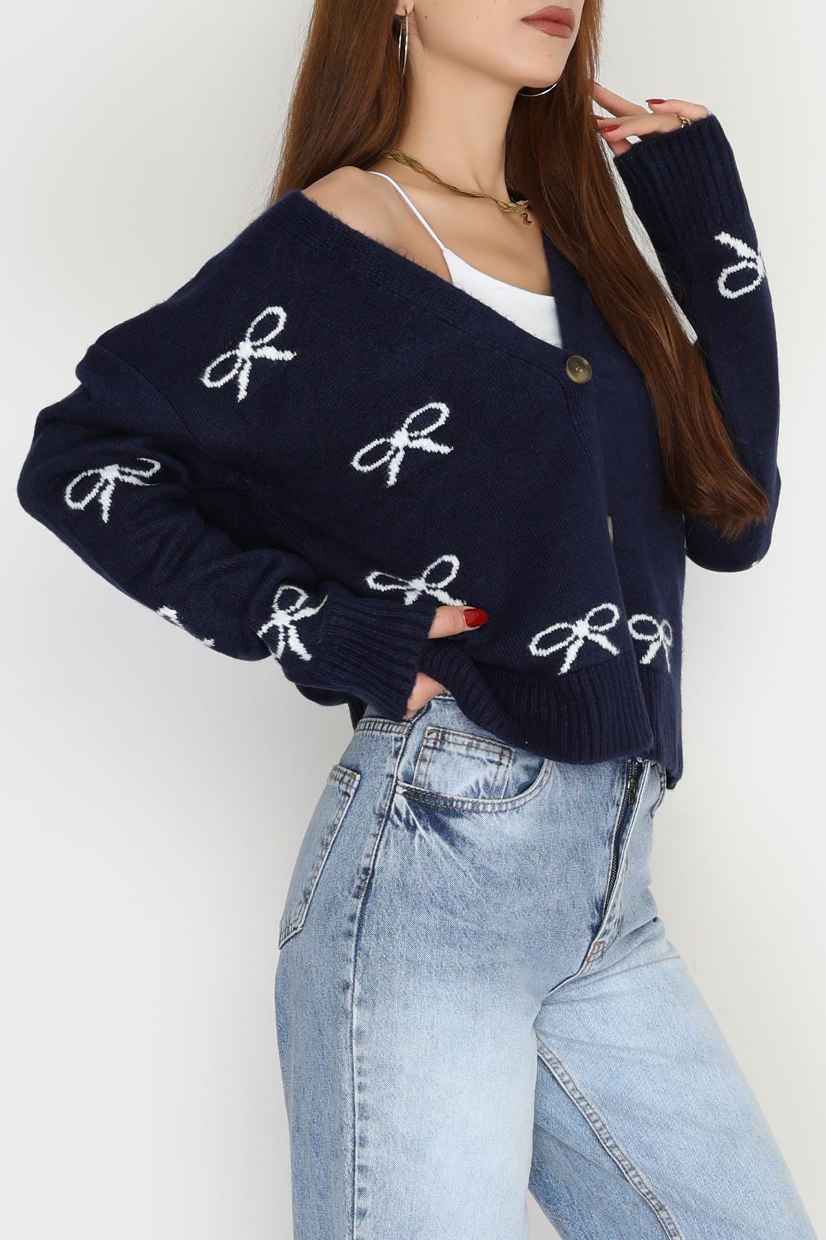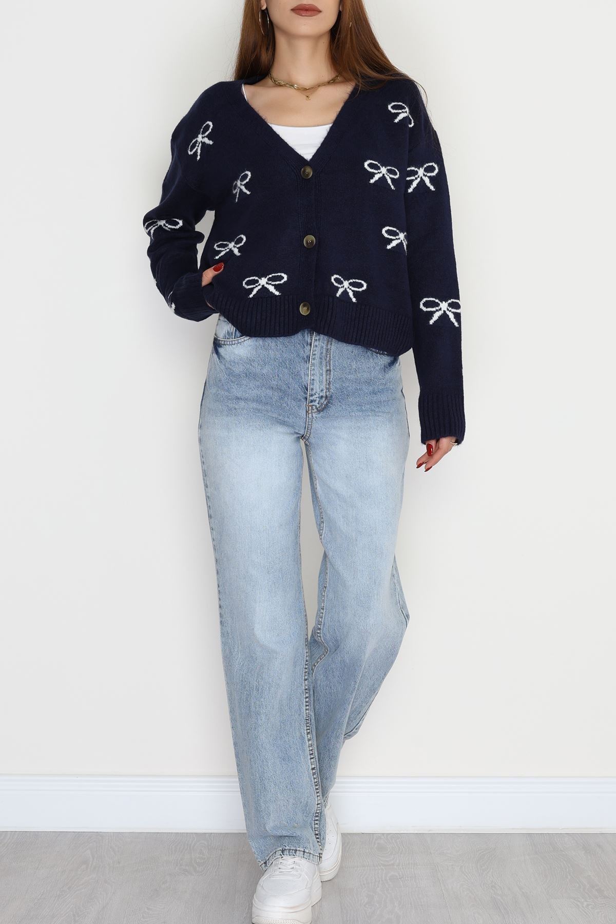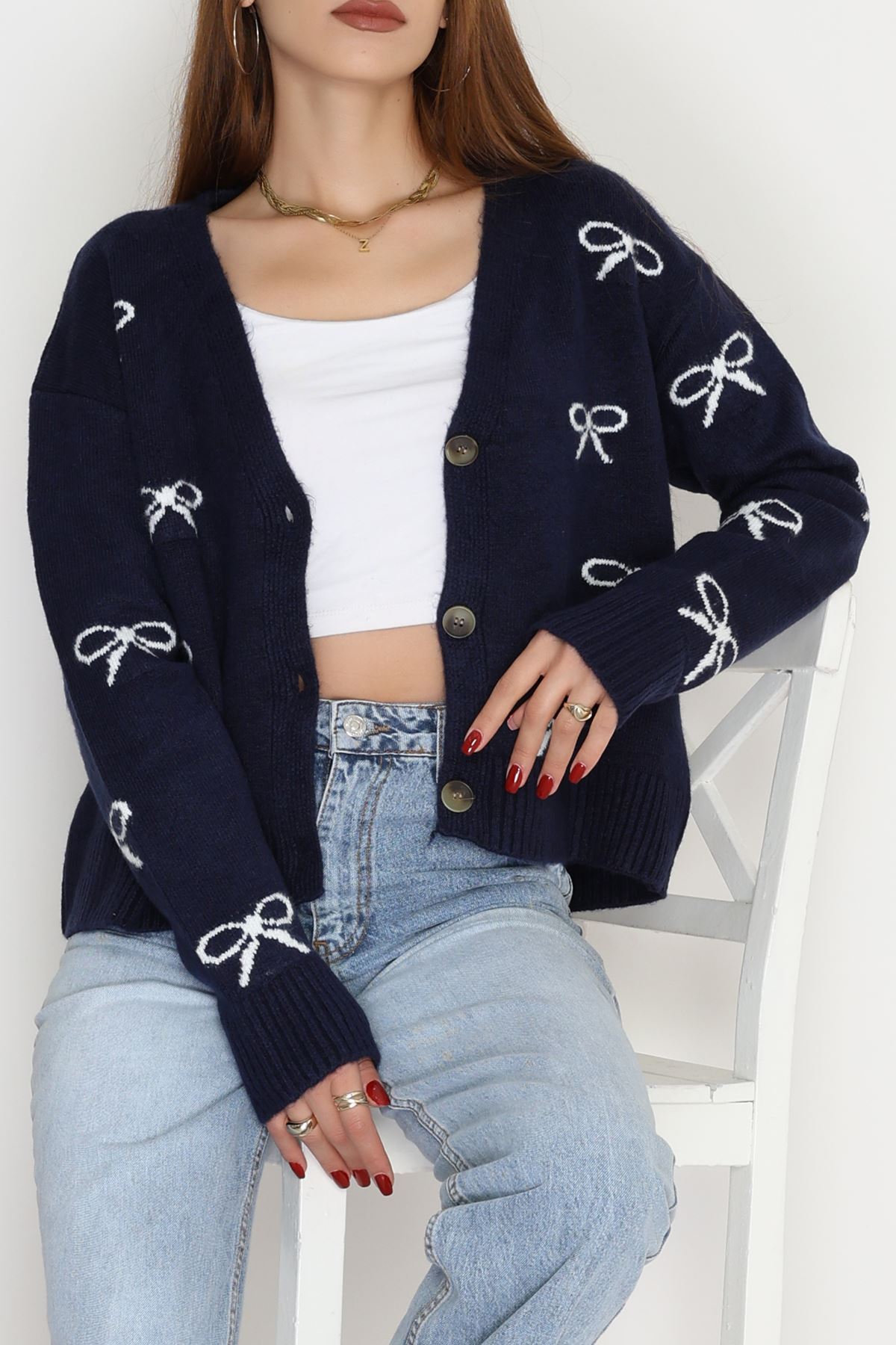 Şardonlu Düğmeli Triko Hırka Lacivert - 31456.1766.