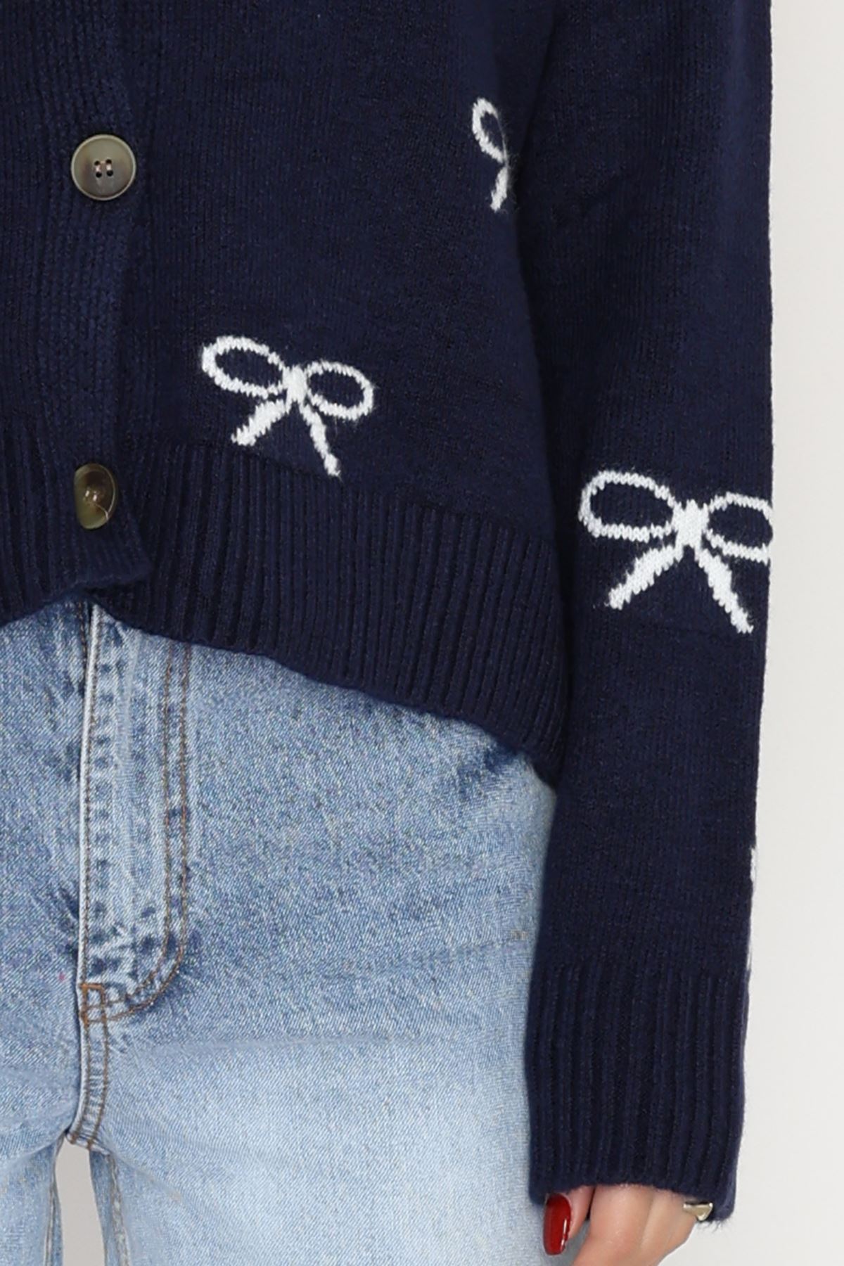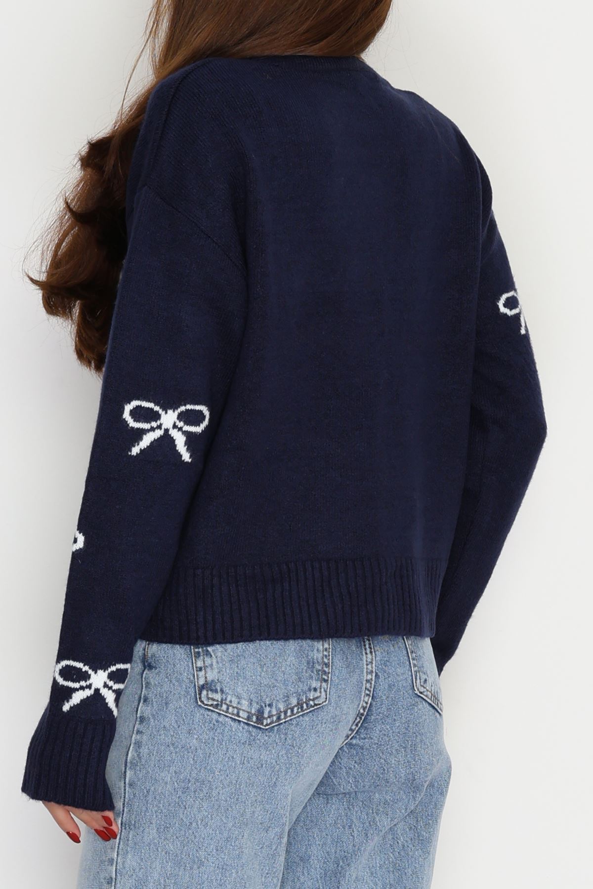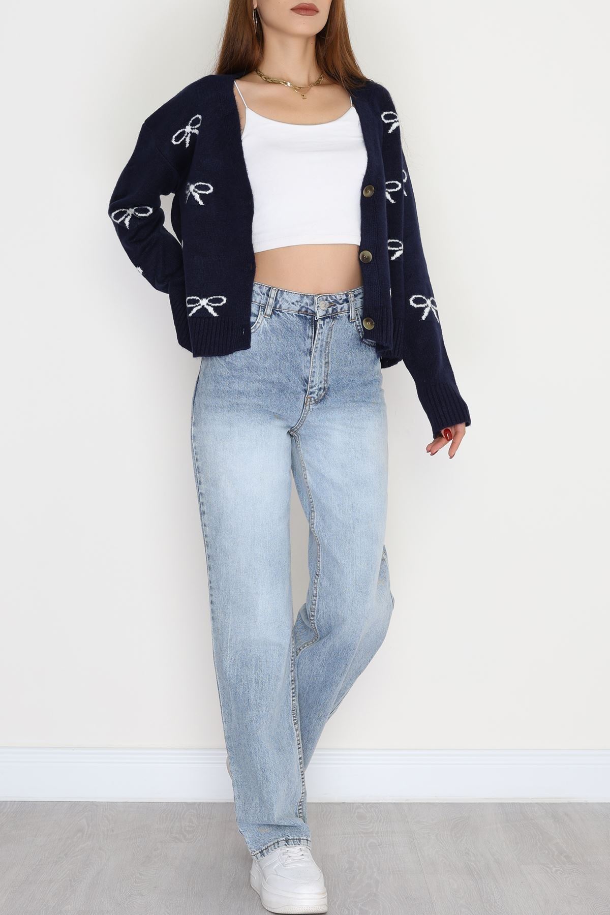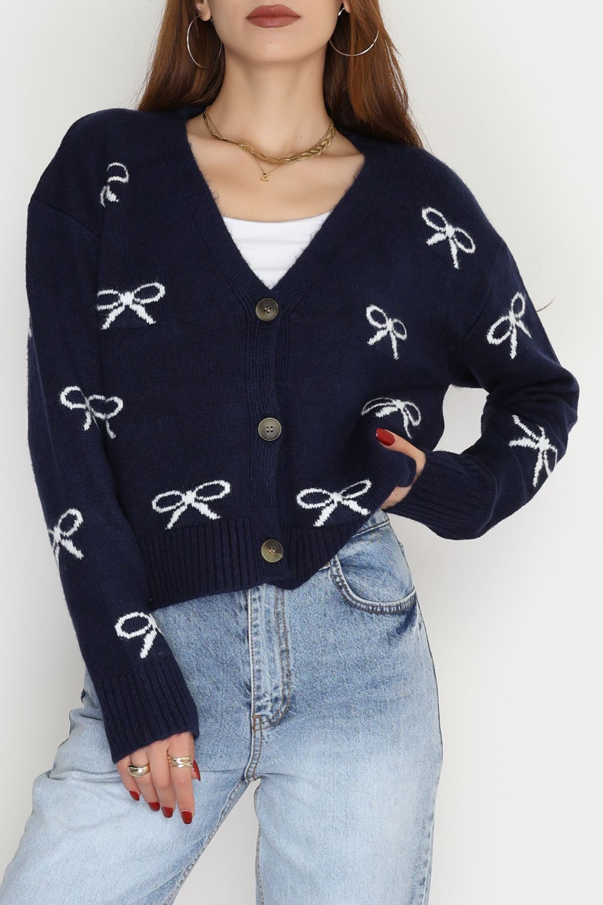 Şardonlu Düğmeli Triko Hırka Lacivert - 31456.1766.