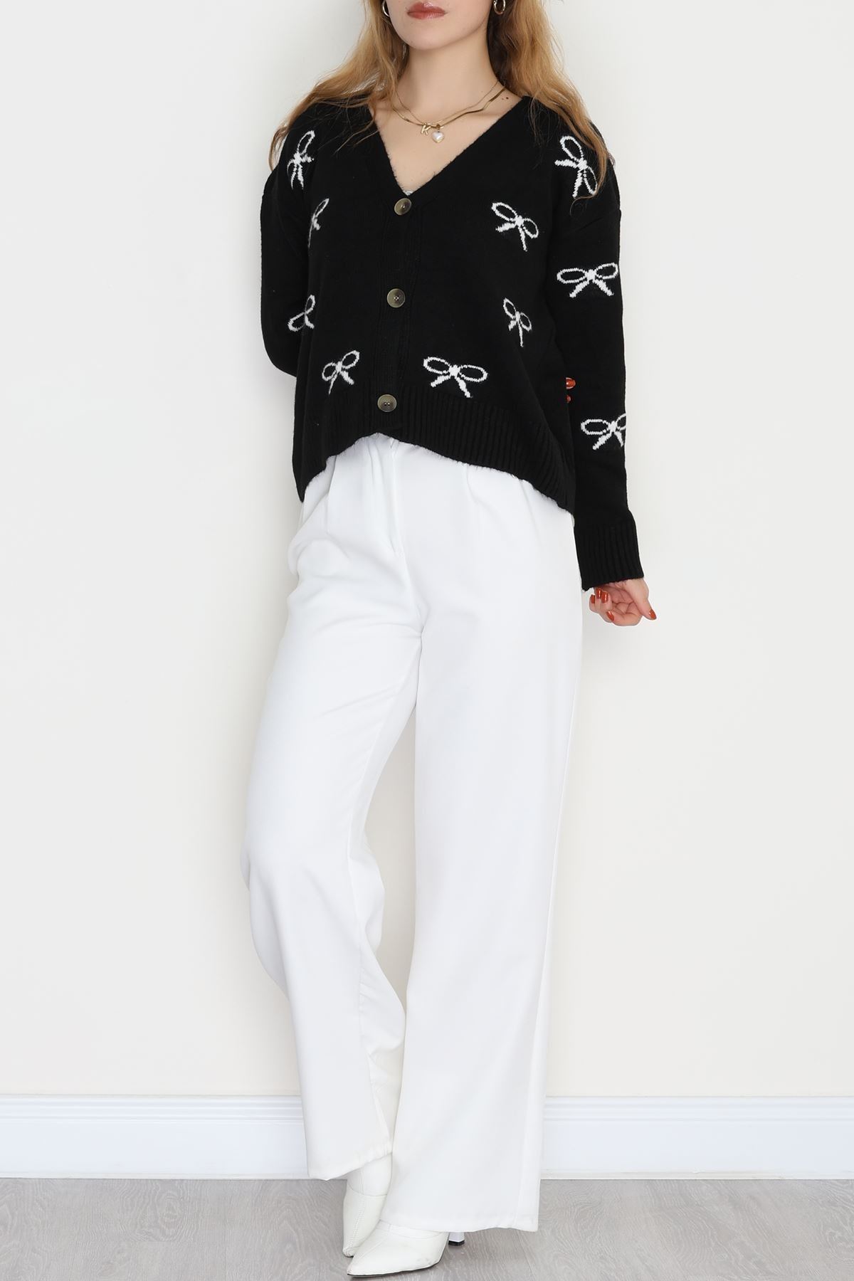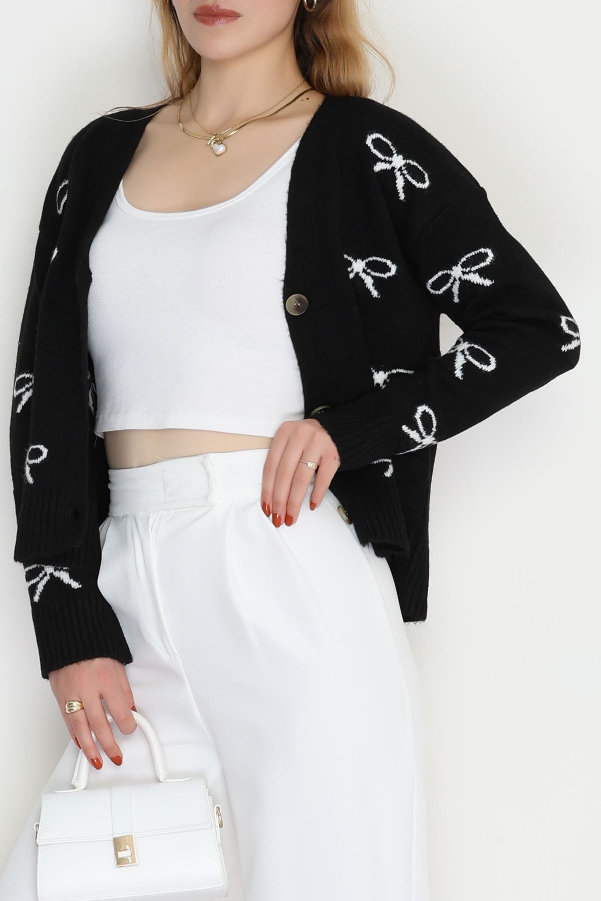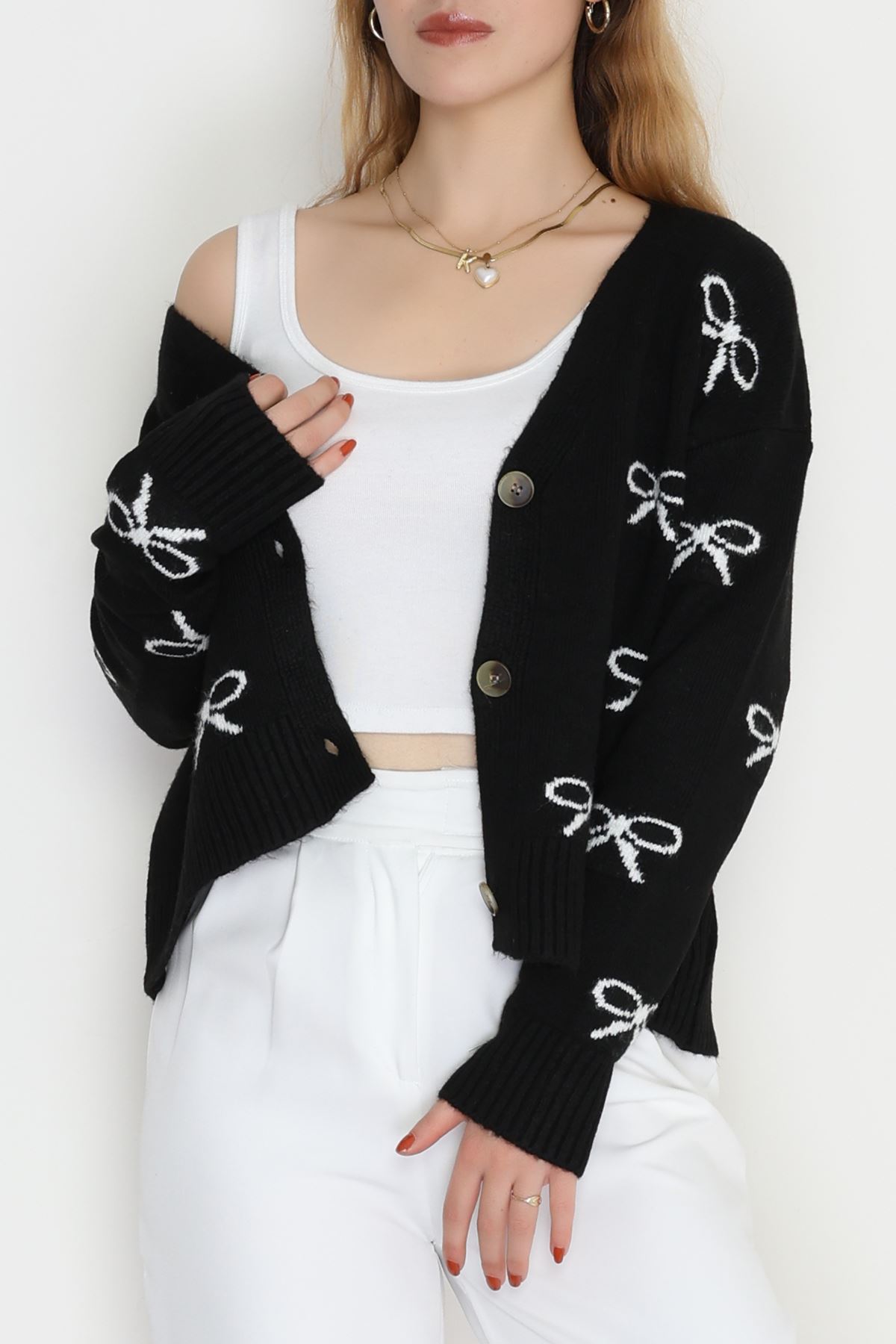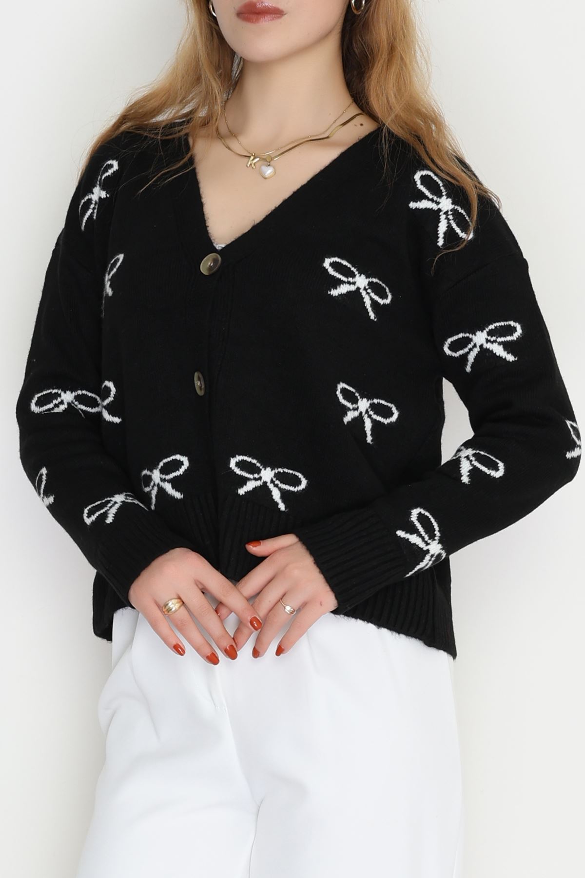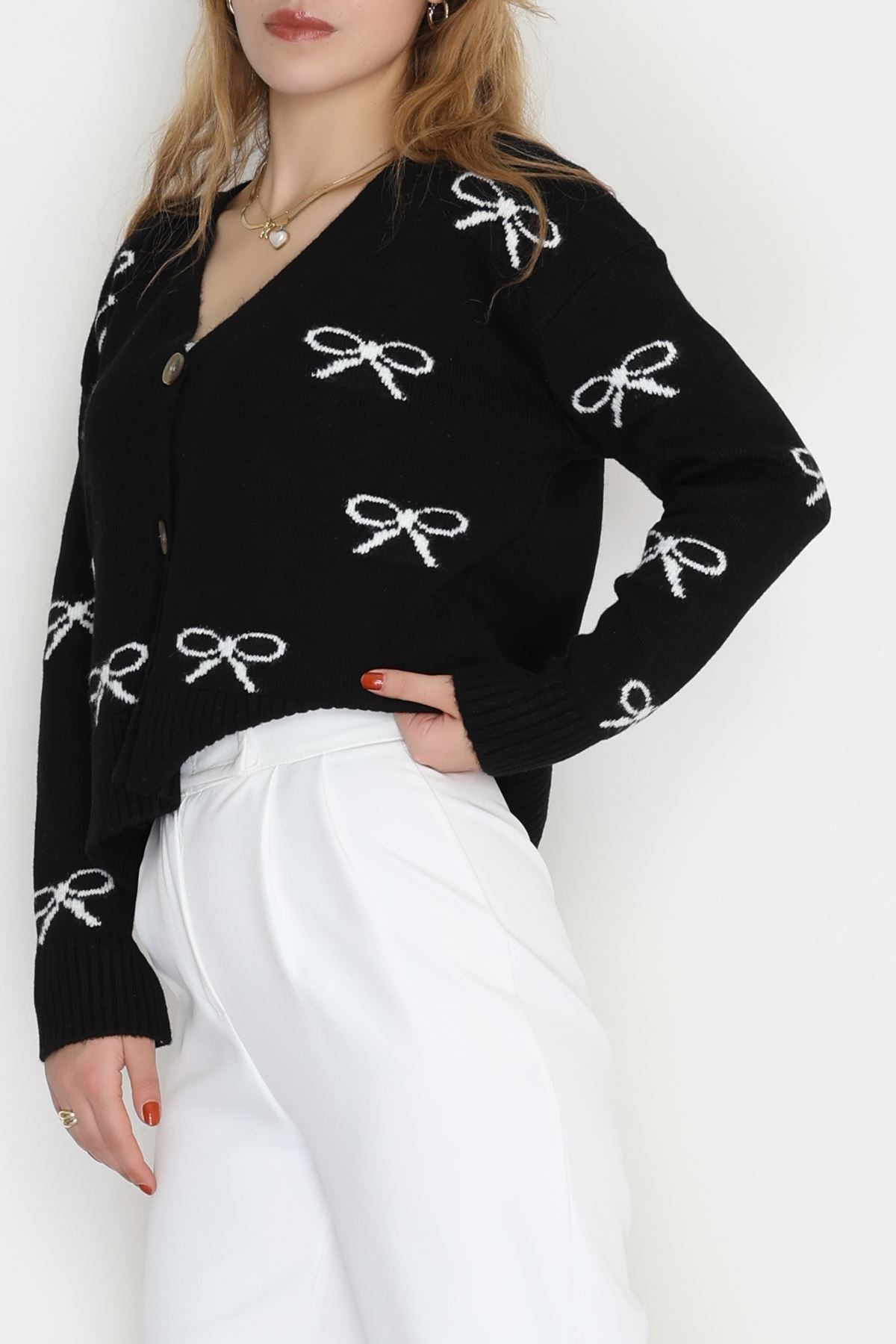 Şardonlu Düğmeli Triko Hırka Siyah - 31456.1766.