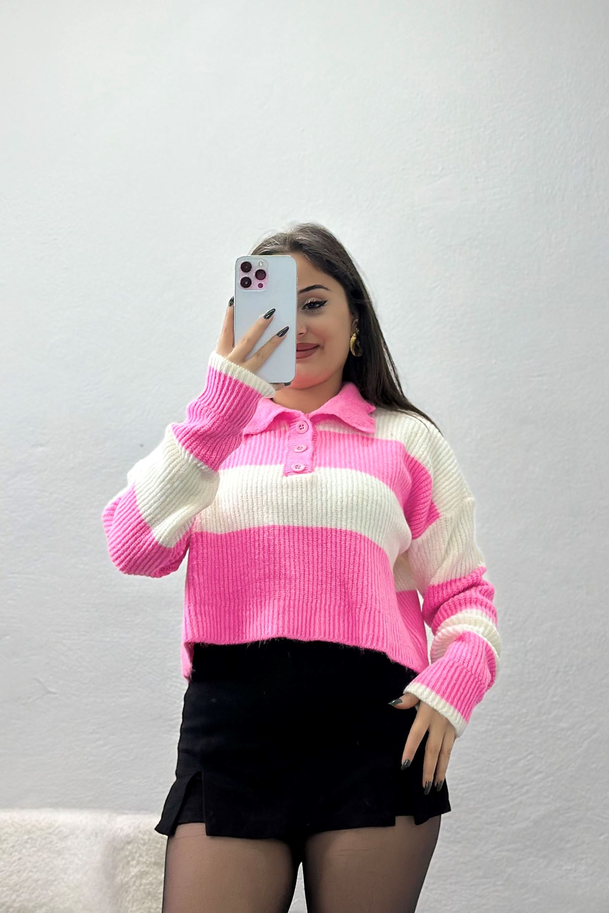 Şardonlu Düğmeli Triko Pembe - 31066.1766.