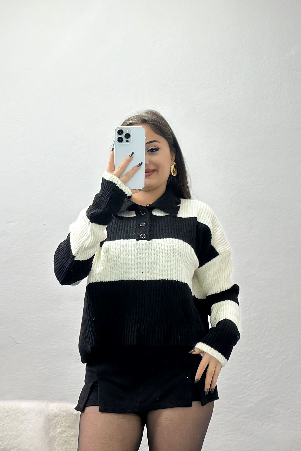 Şardonlu Düğmeli Triko Siyah - 31066.1766.