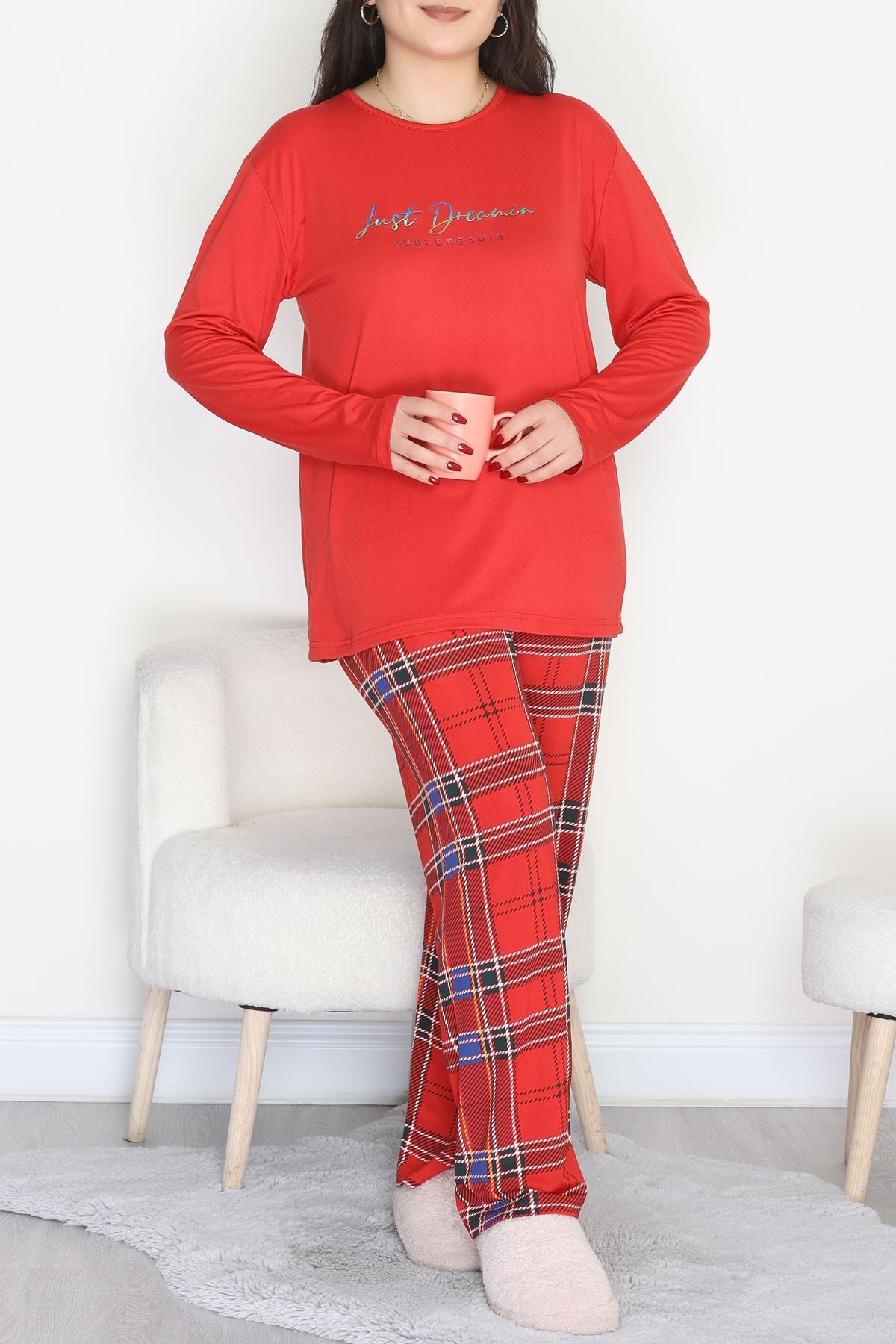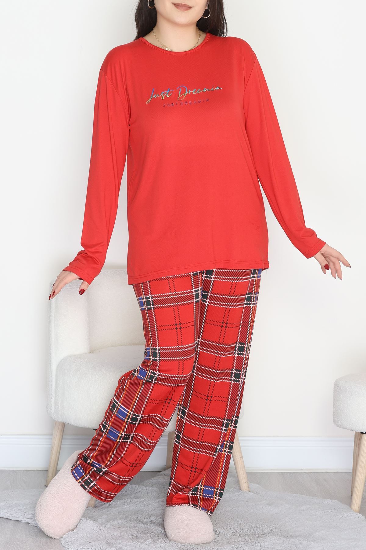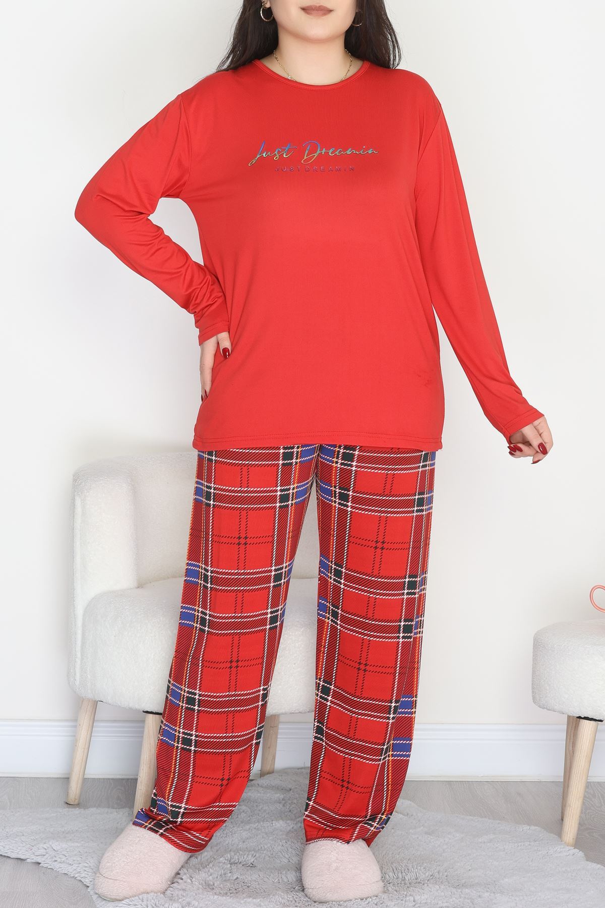 Şardonlu Milan Büyük Beden Pijama Takımı Ekose - 665.1287.
