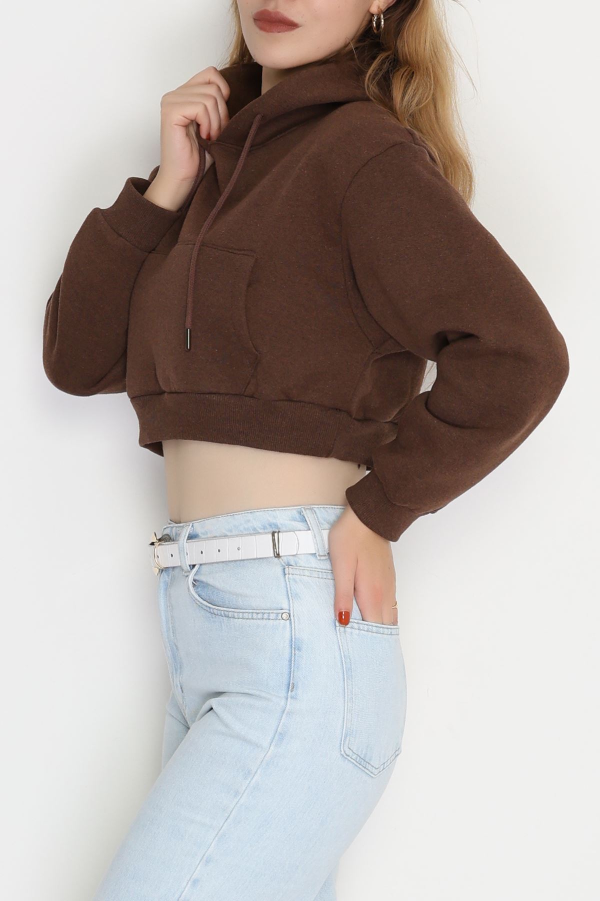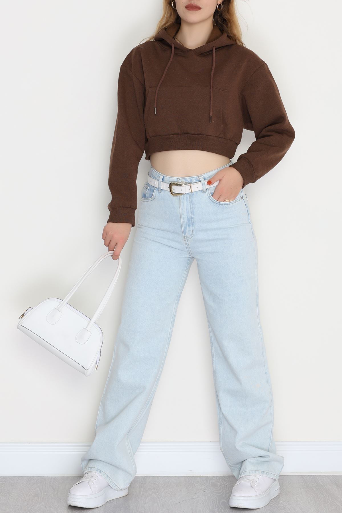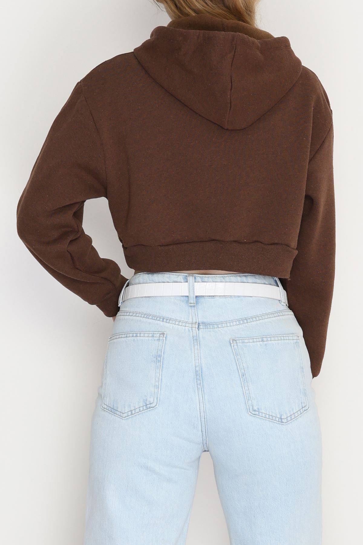 Şardonlu Oversize Crop Sweat Kahve - 21391.200.