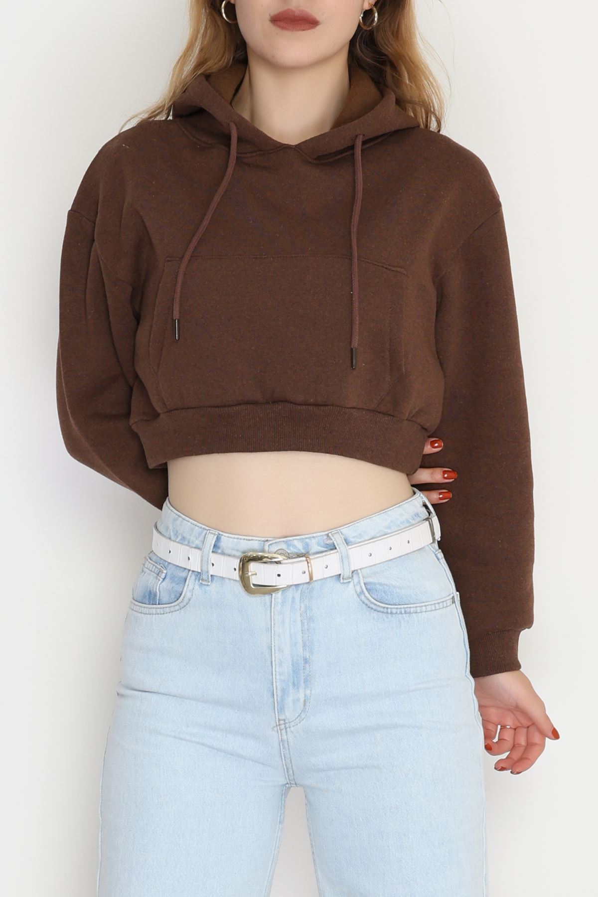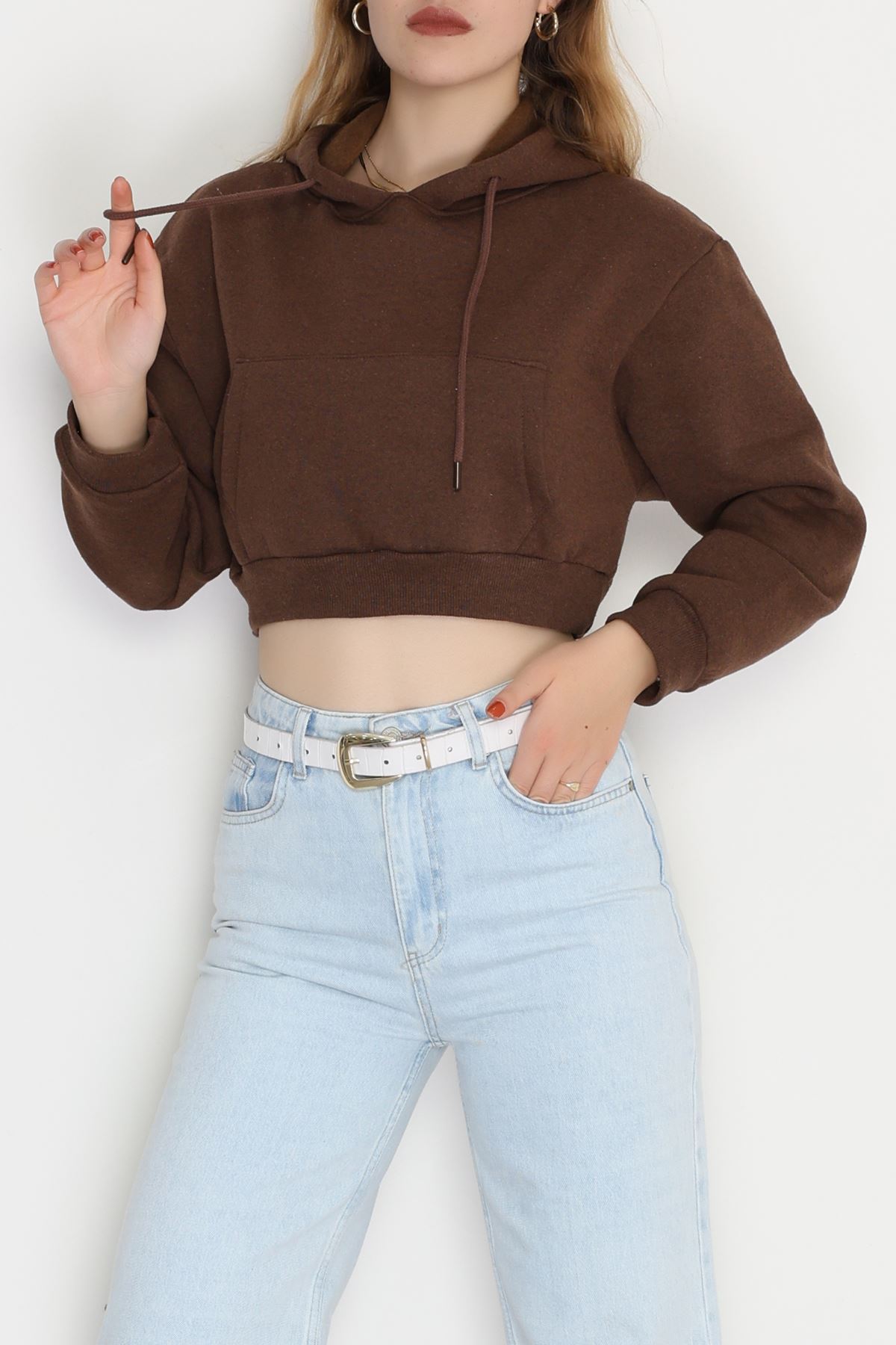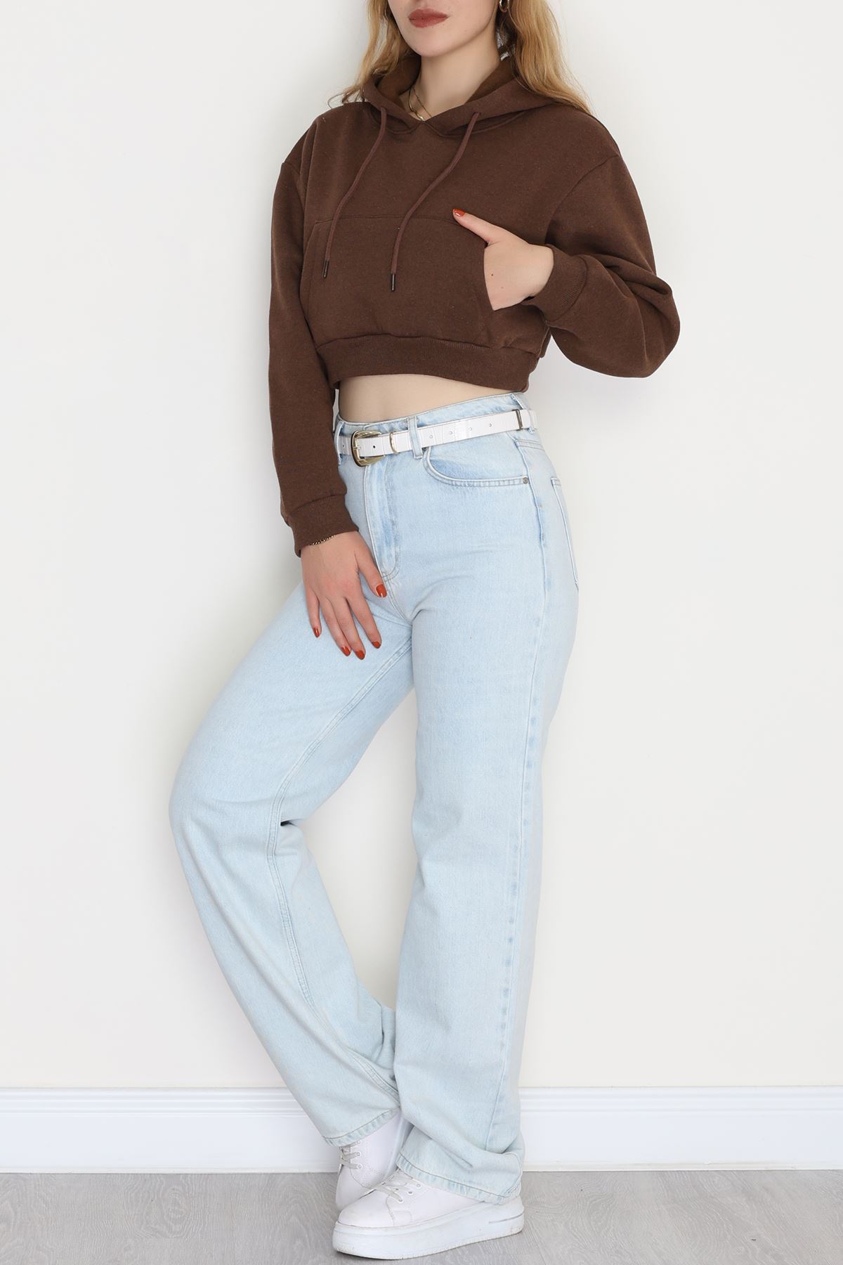 Şardonlu Oversize Crop Sweat Kahve - 21391.200.
