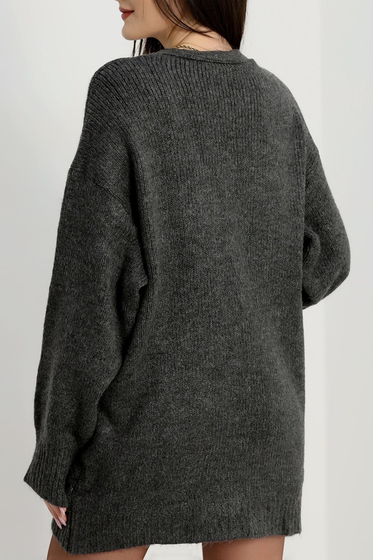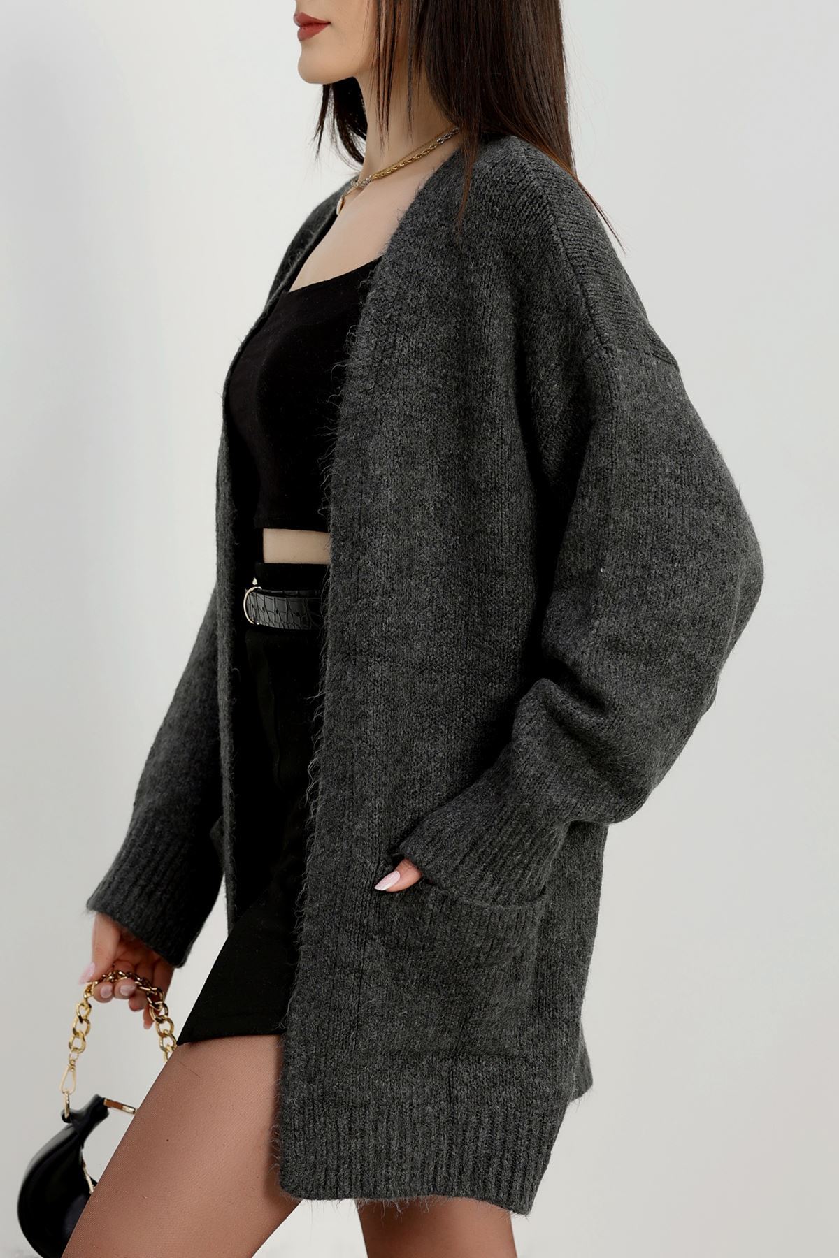 Şardonlu Triko Hırka Füme - 31054.1766.