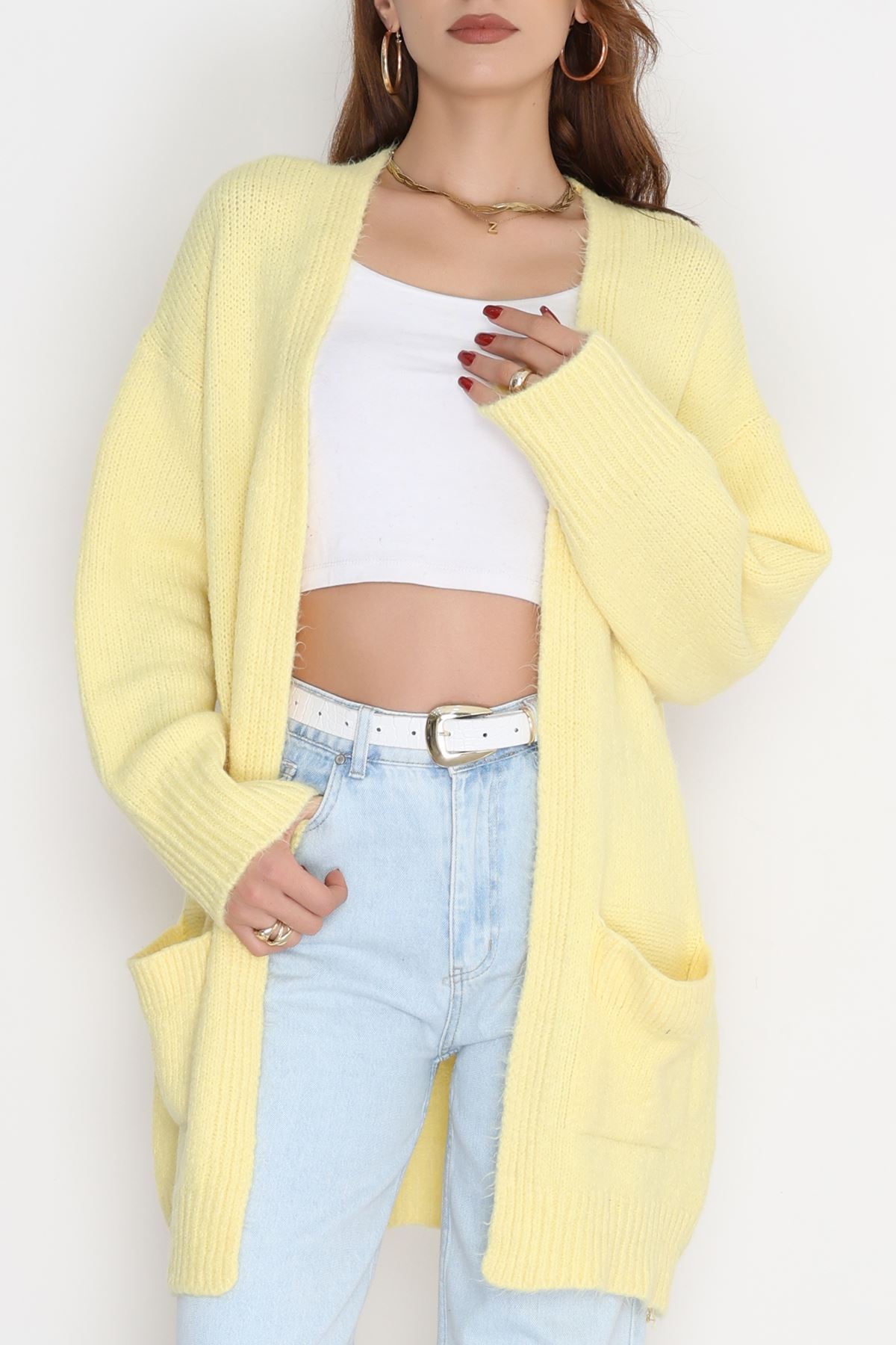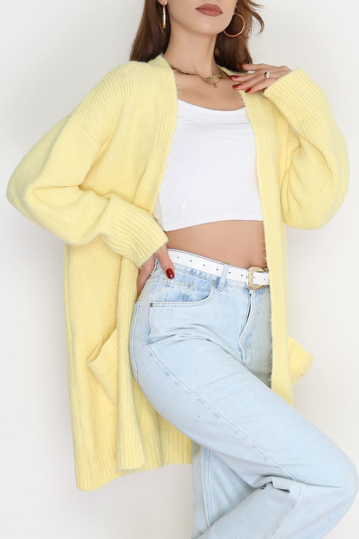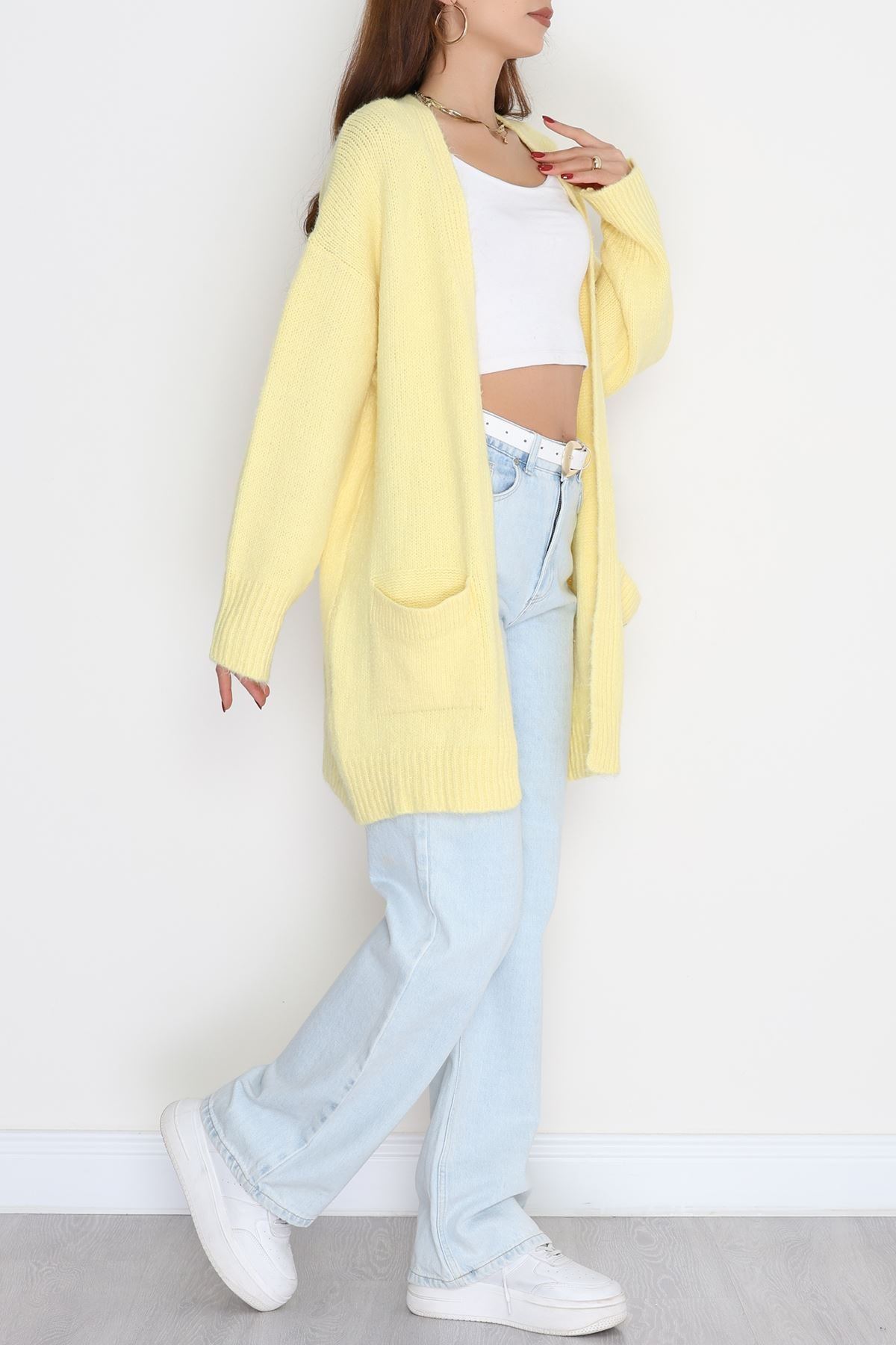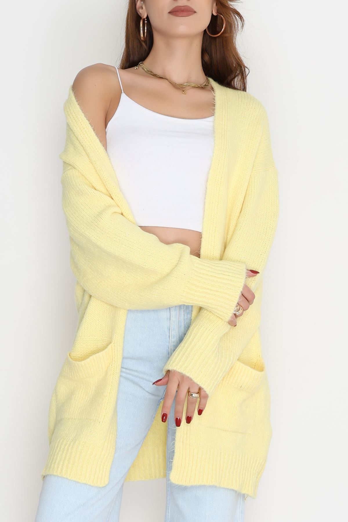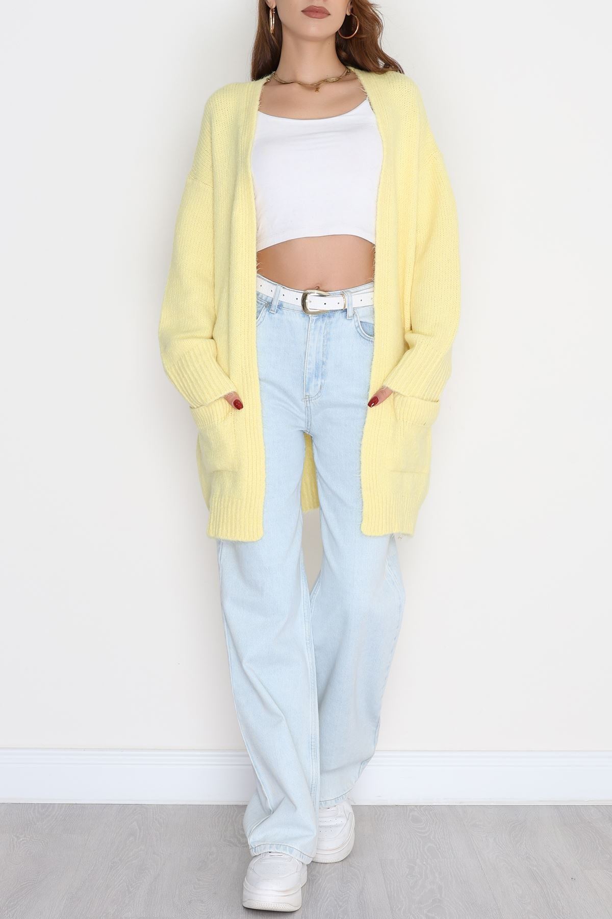 Şardonlu Triko Hırka Sarı - 31054.1766.