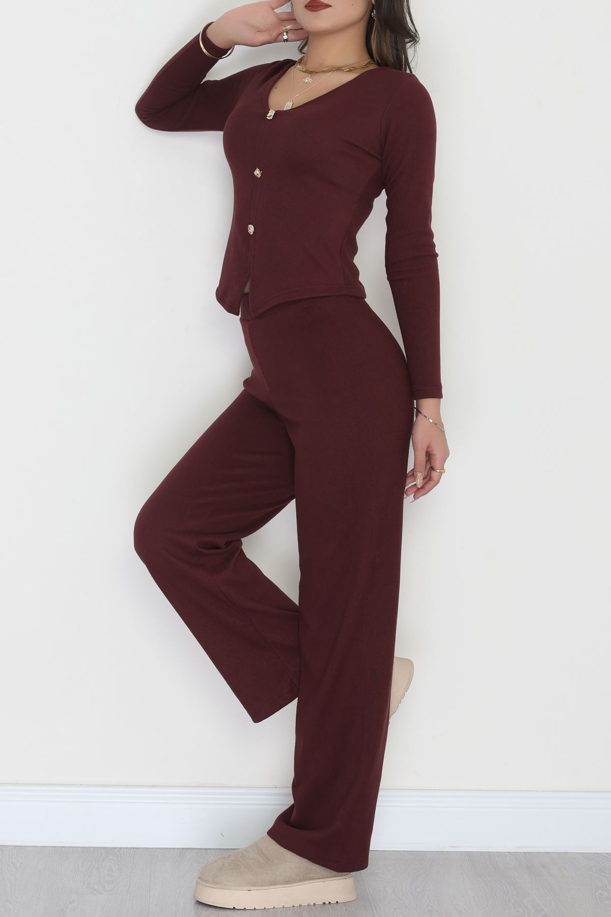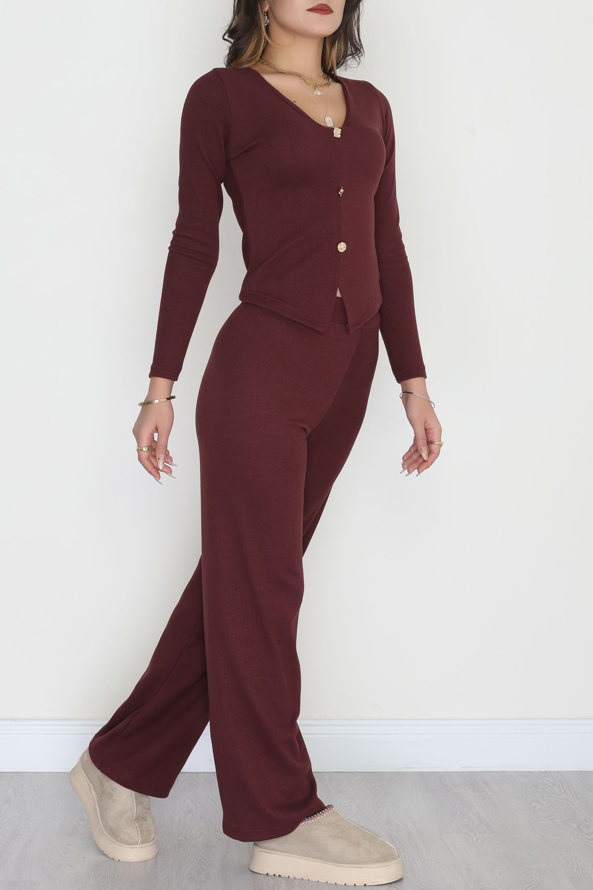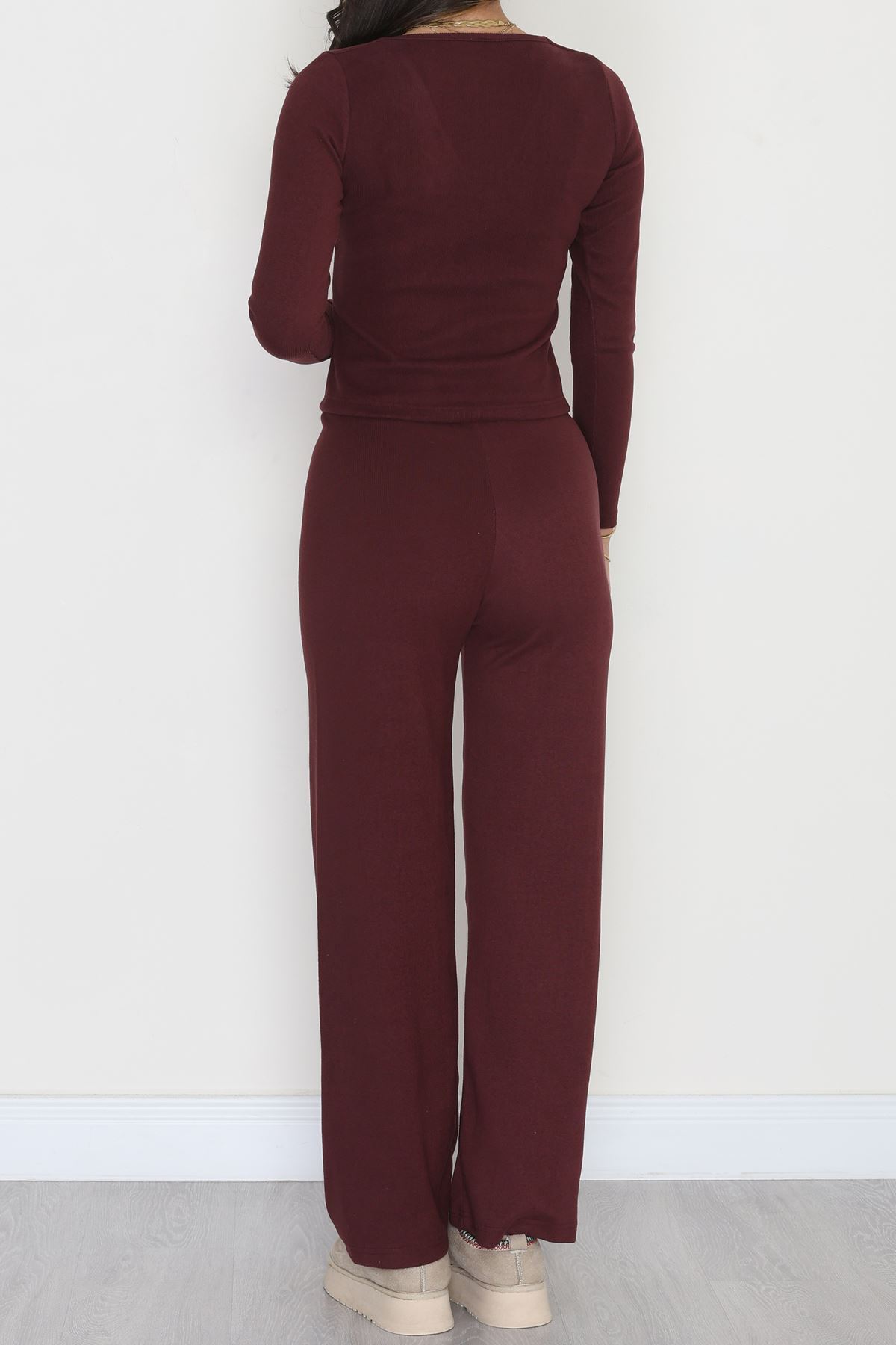 Parmak Geçmeli Yarım Dik Yaka Likralı Raporlu İnterlok Takım Bordo - 90968.1748.