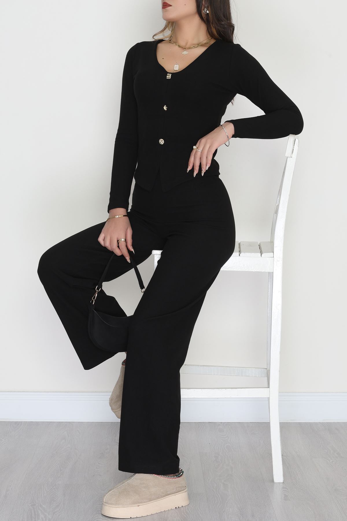 Yanları Biyeli İkili Takım Siyah - 42734.1871.