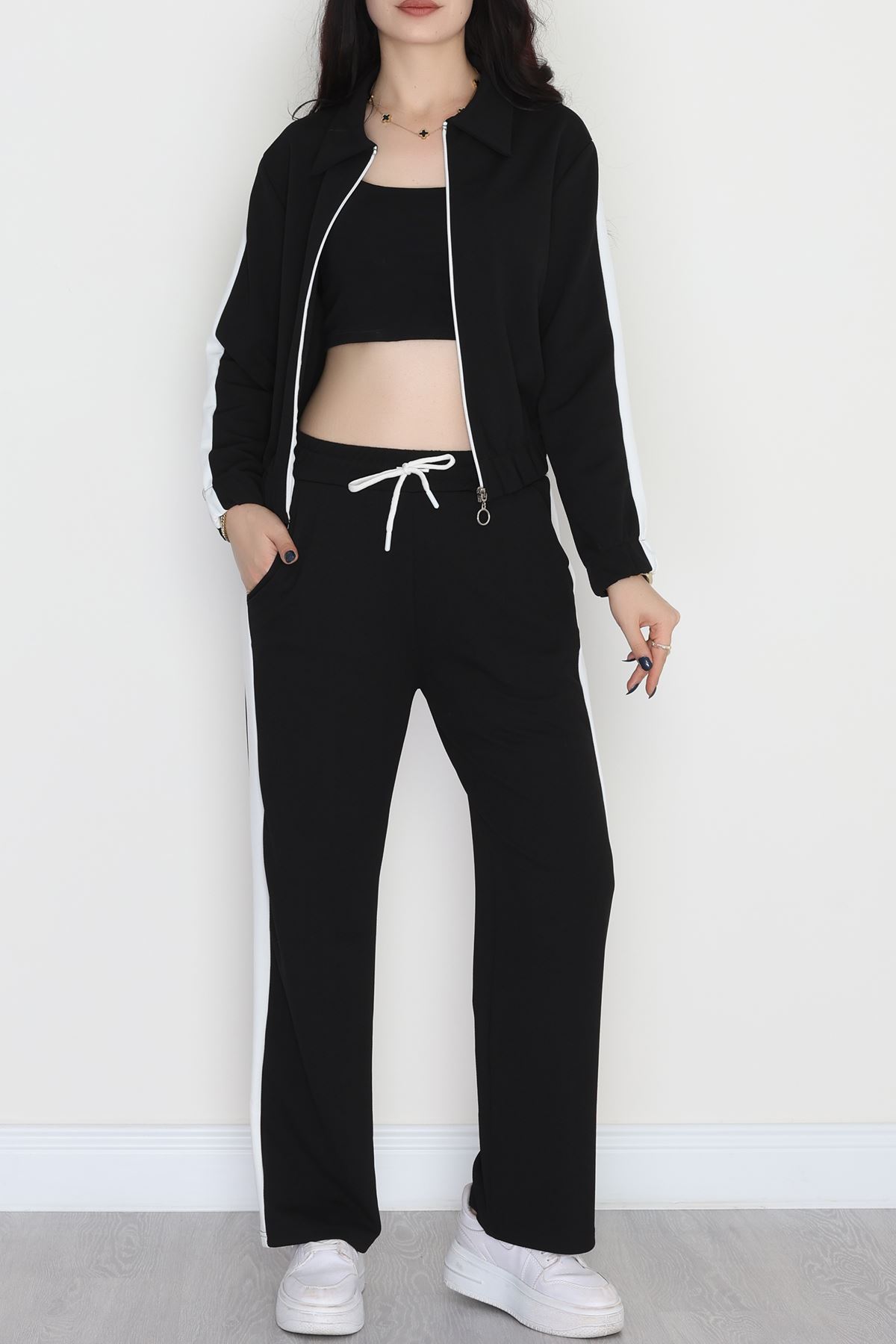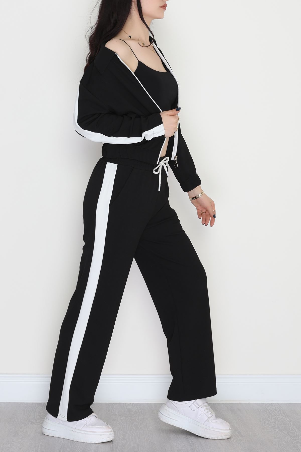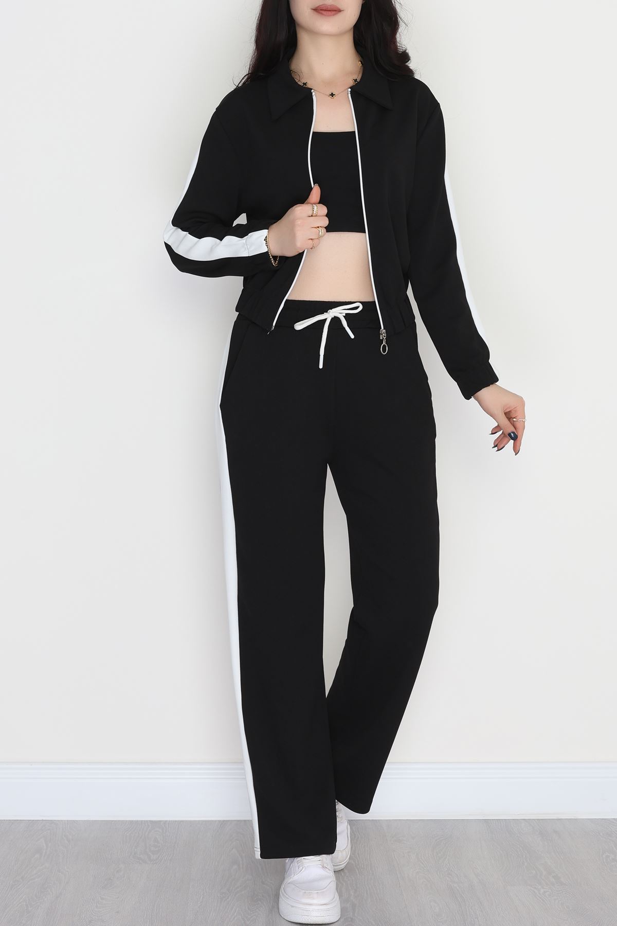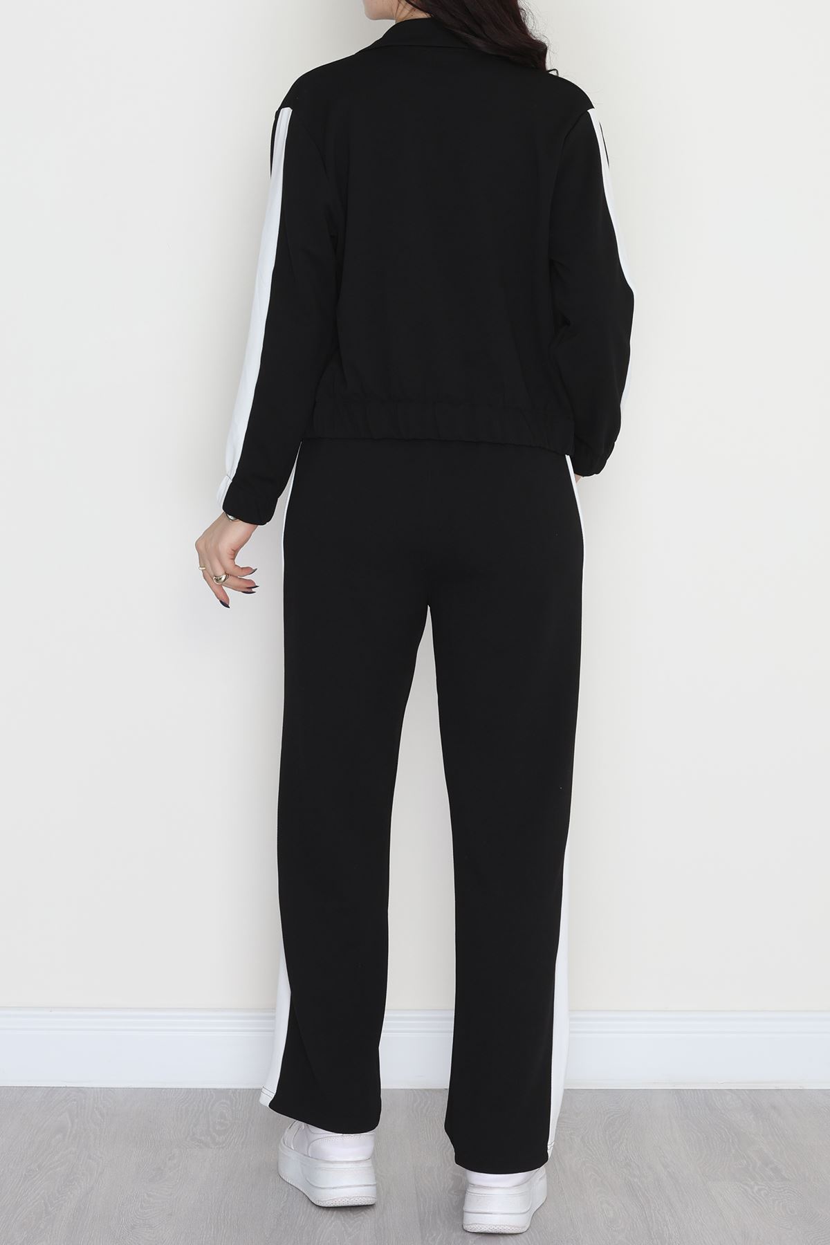 Şerit Detaylı Zra Krep Kumaş İkili Takım Siyahbeyaz - 31442.1837.