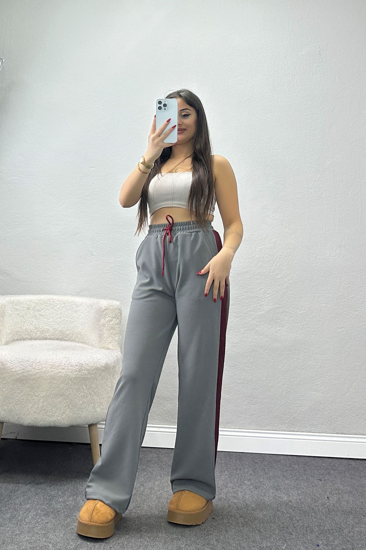 Şerit Detaylı Zra Krep Lastikli Pantolon Antrasitbordo - 31441.1837.