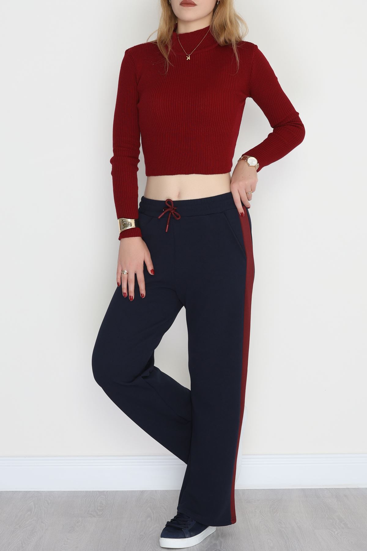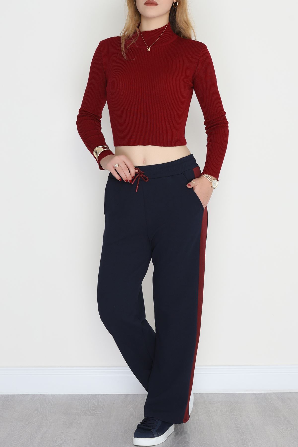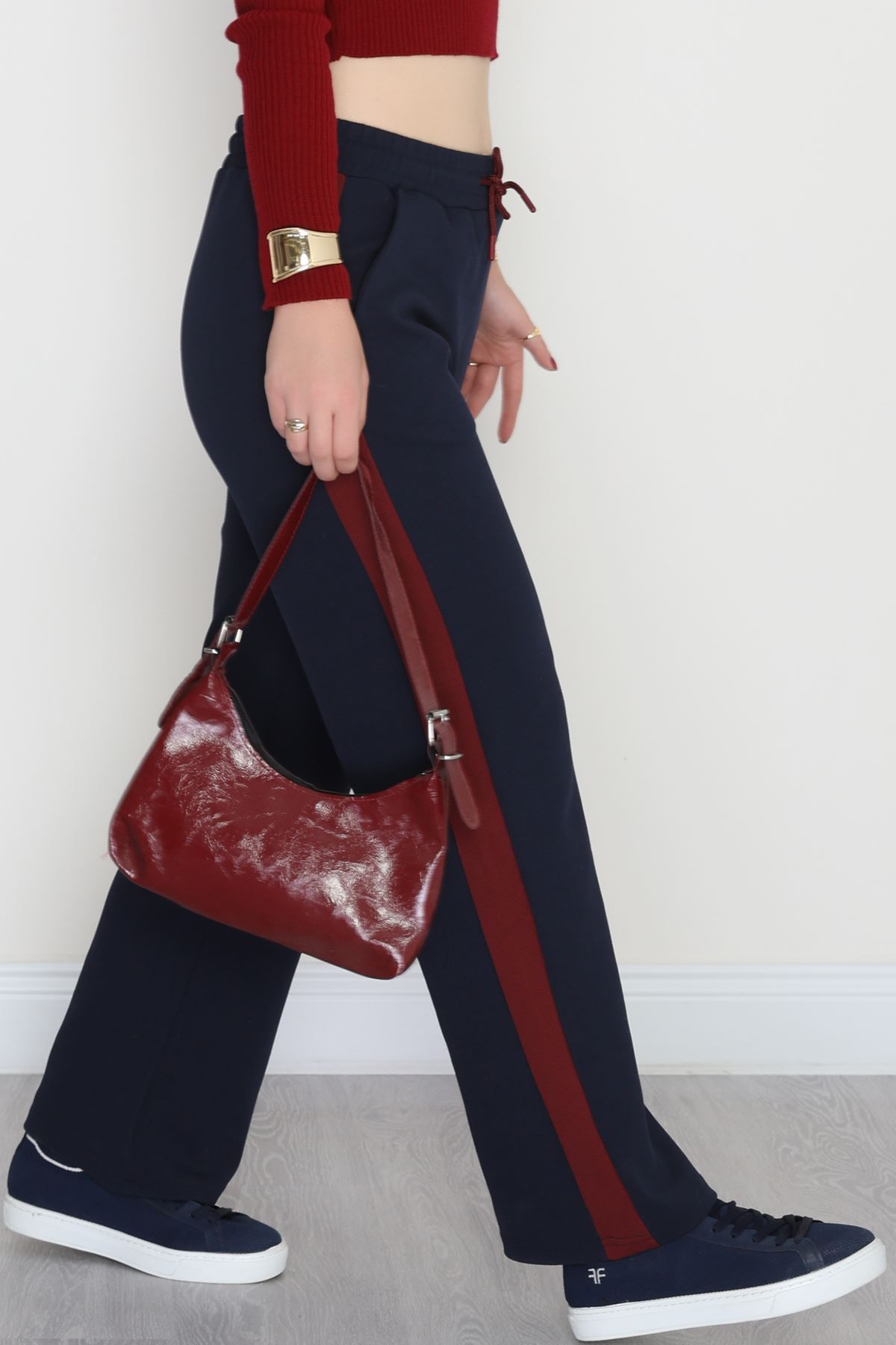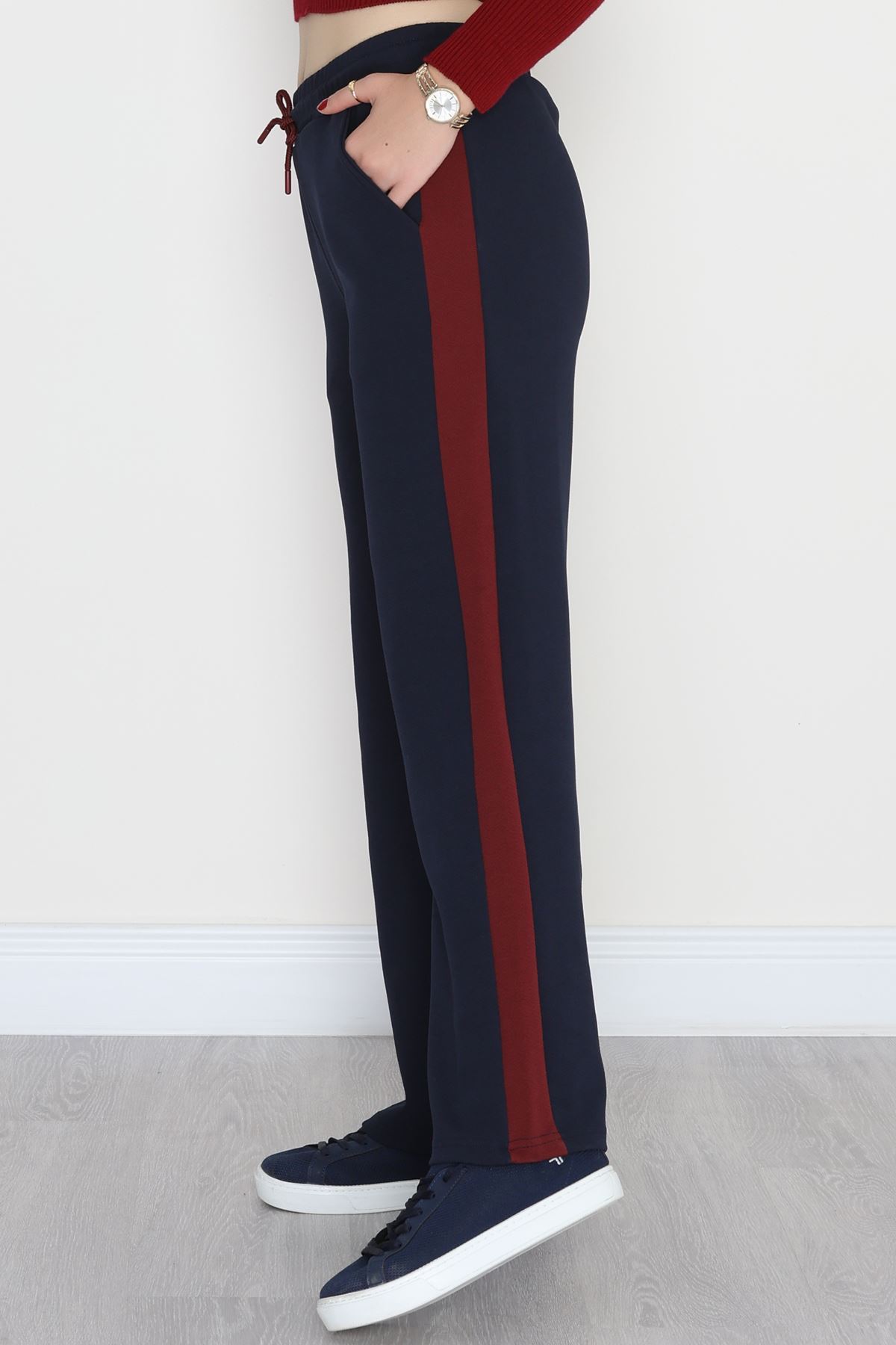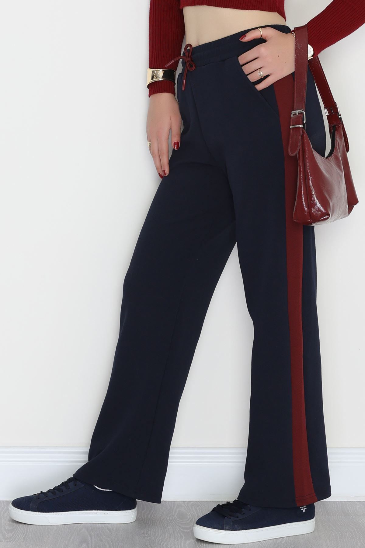 Şerit Detaylı Zra Krep Lastikli Pantolon Lacivertbordo - 31441.1837.