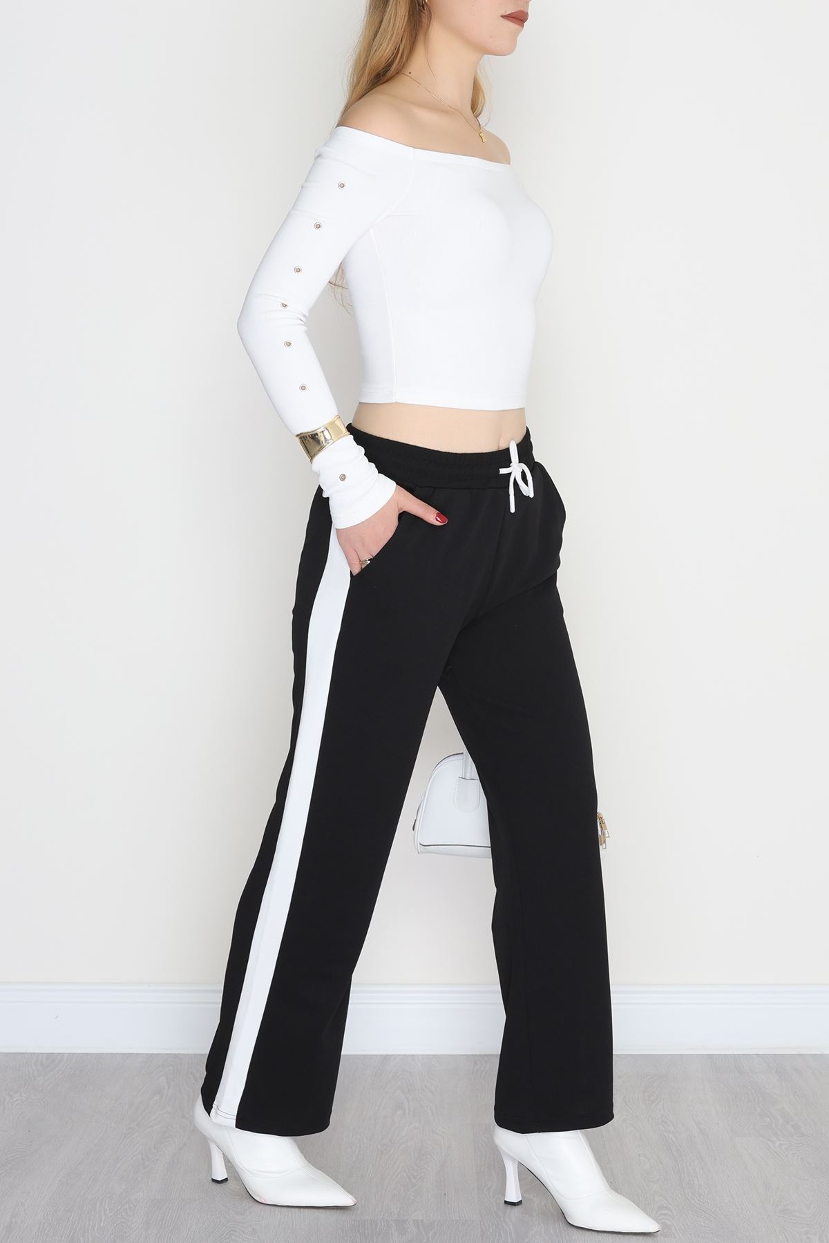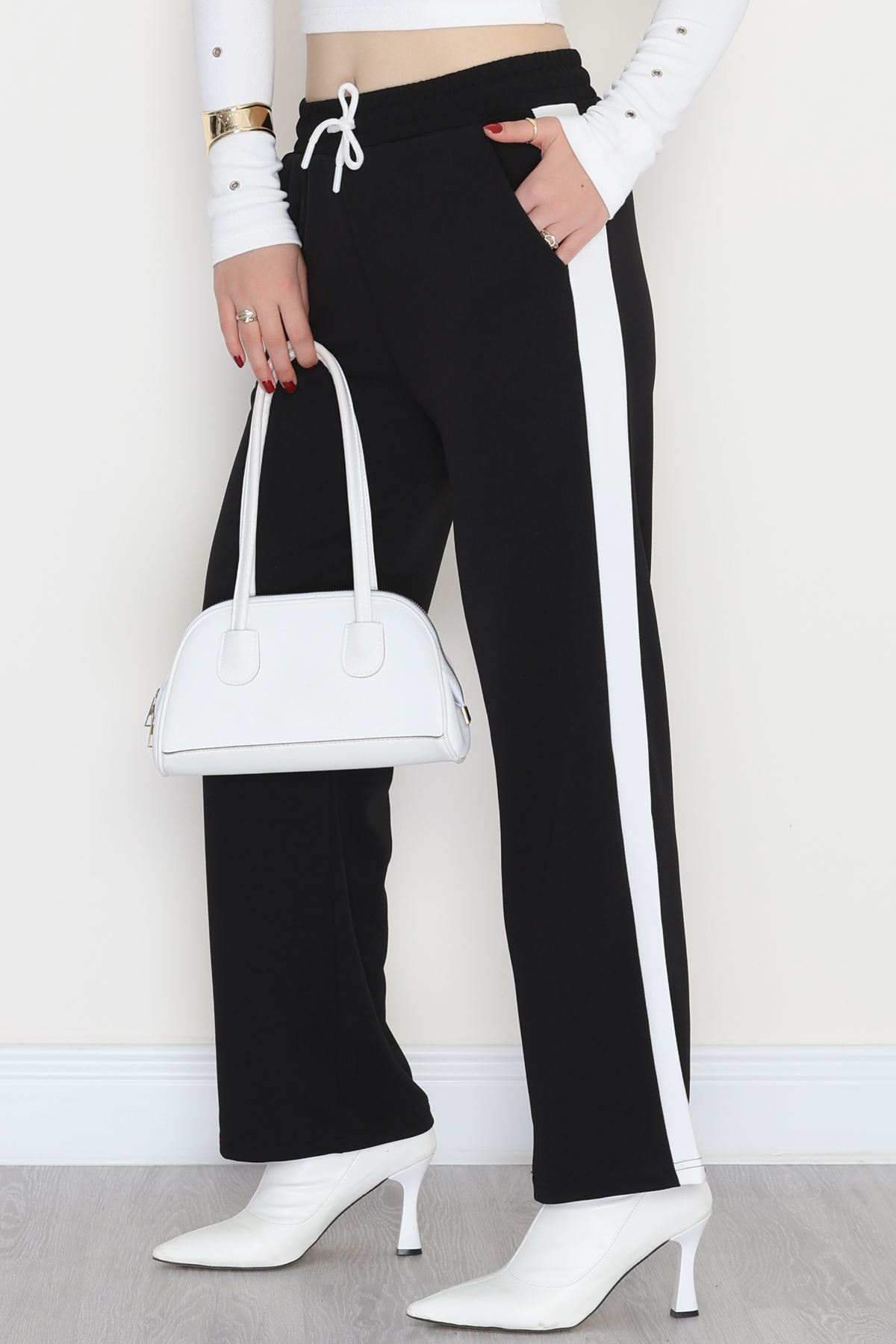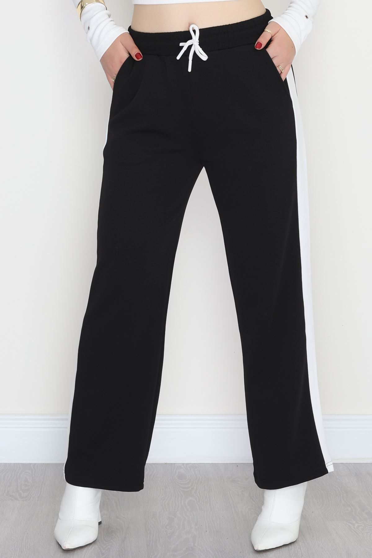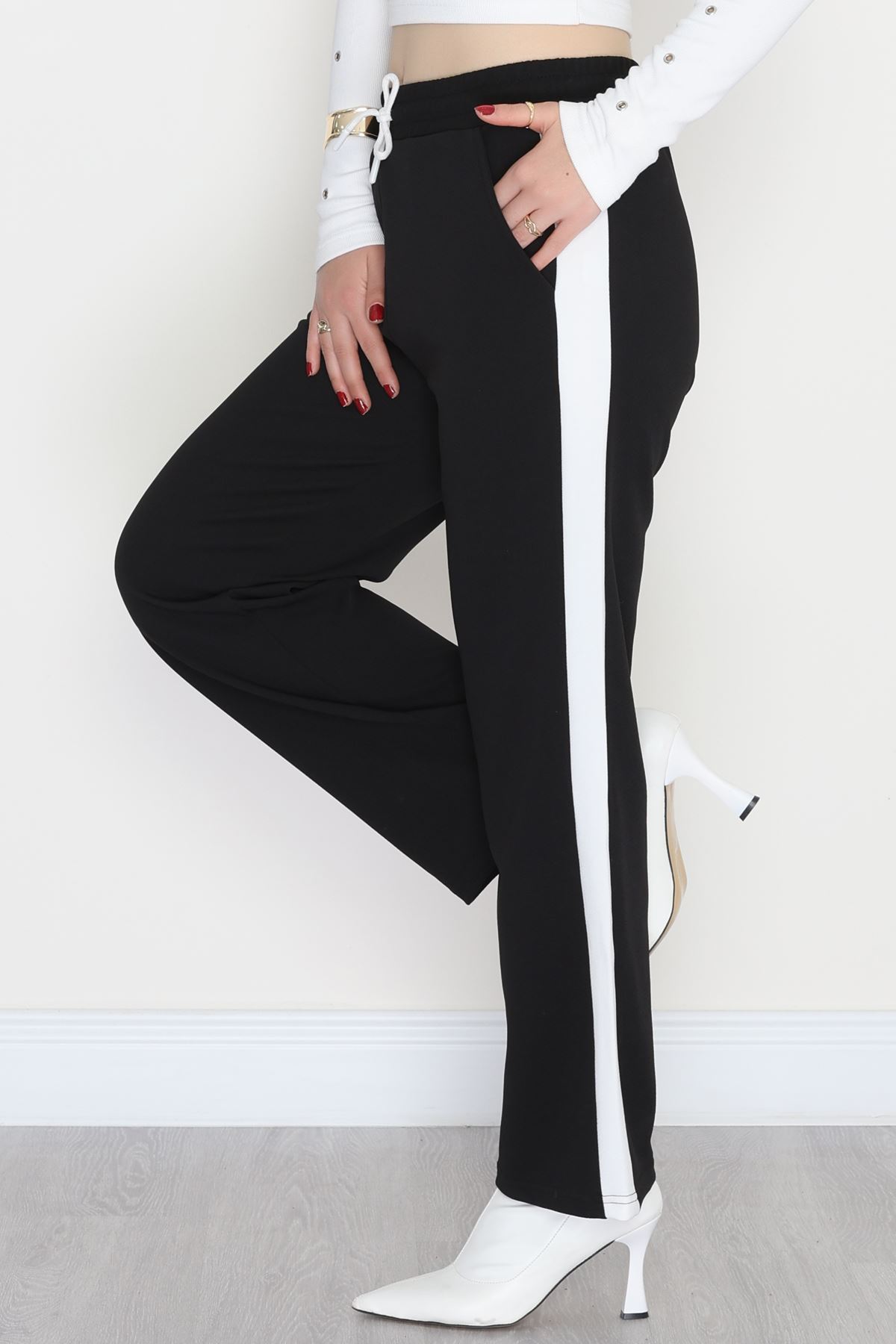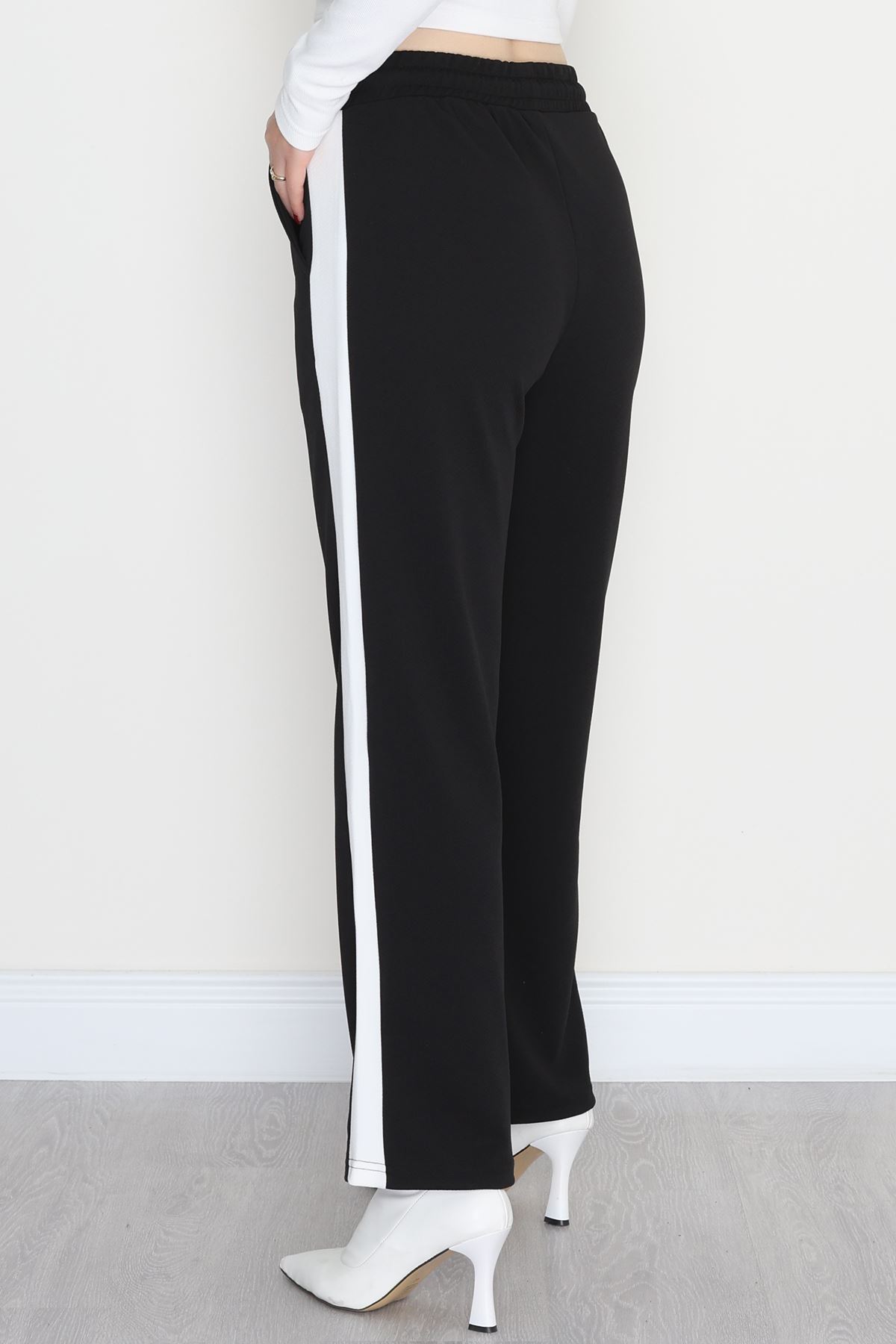 Şerit Detaylı Zra Krep Lastikli Pantolon Siyahbeyaz - 31441.1837.