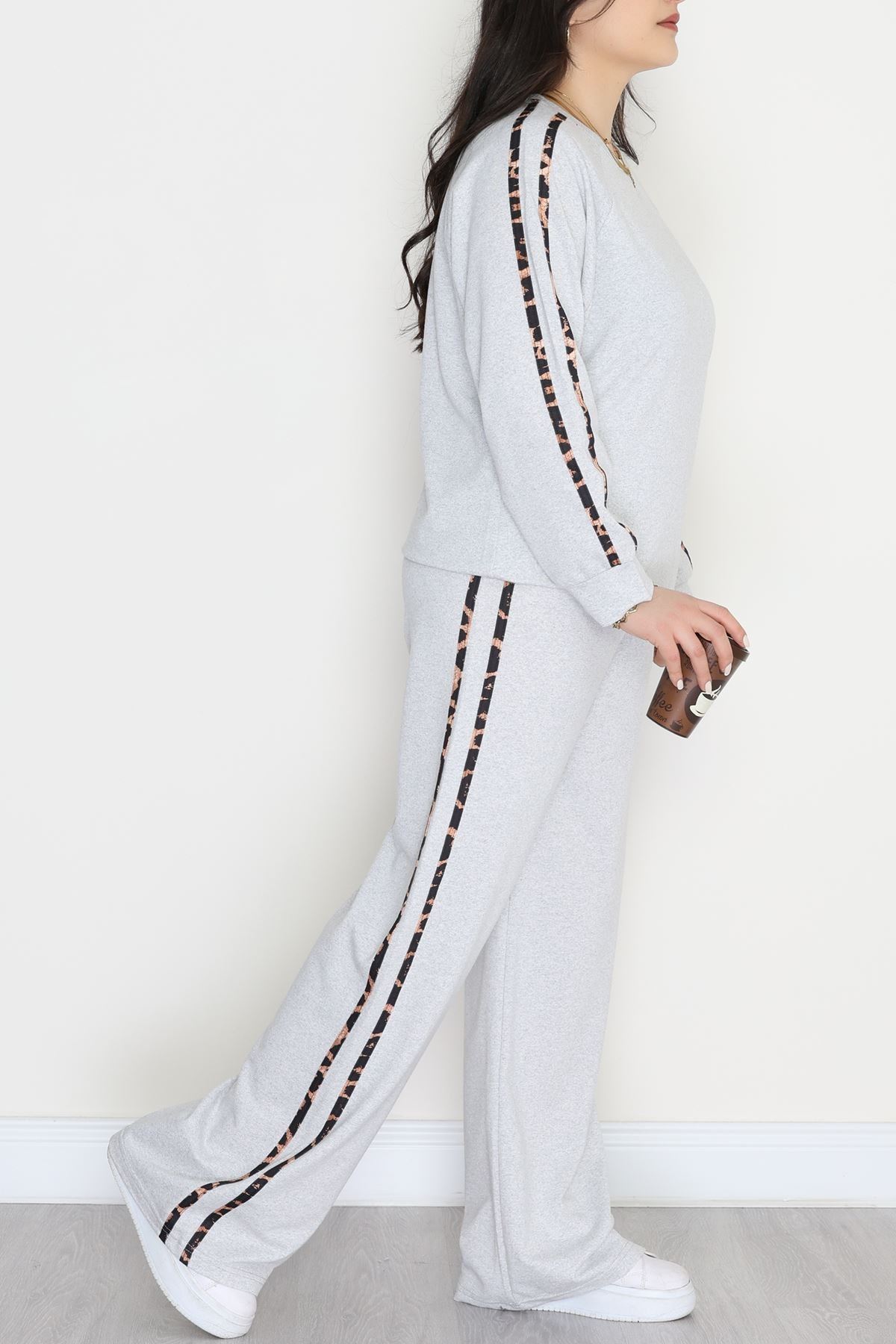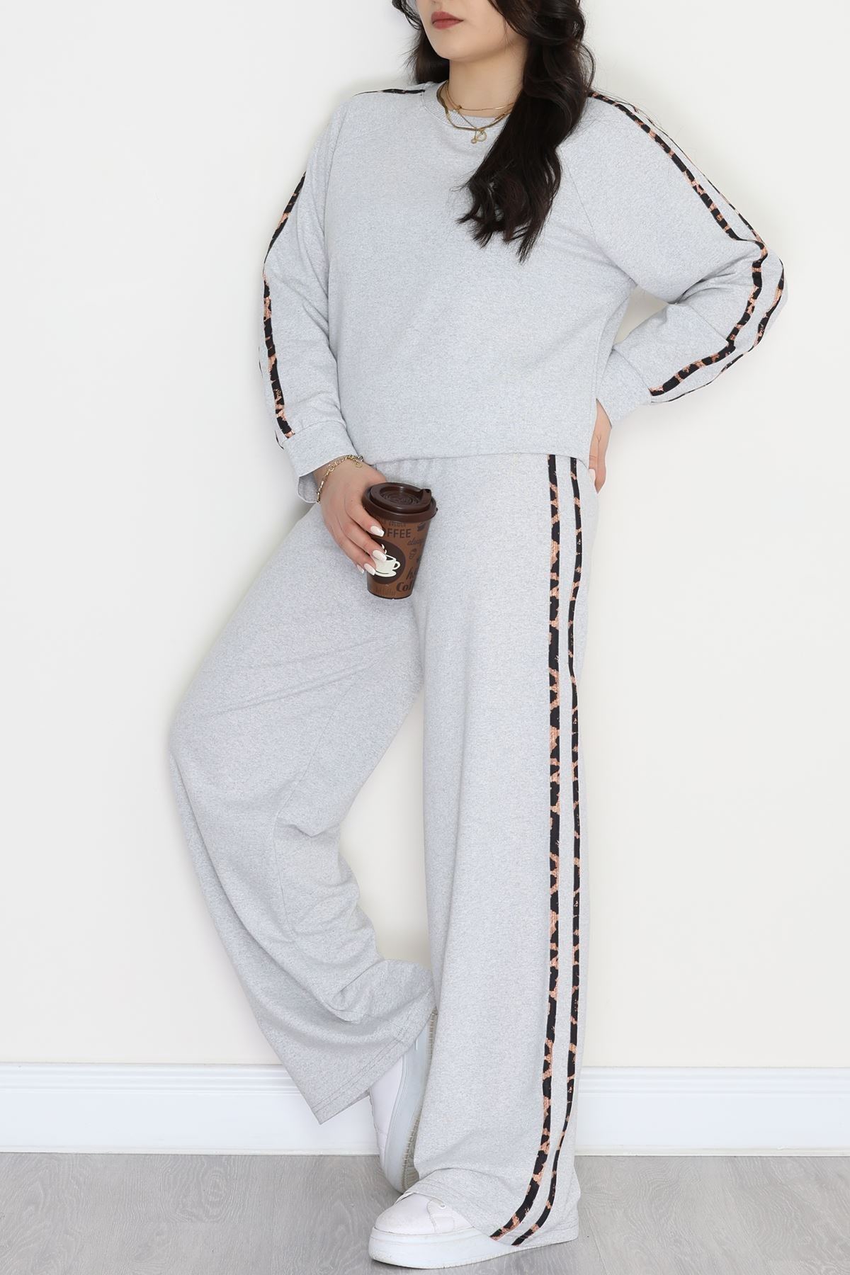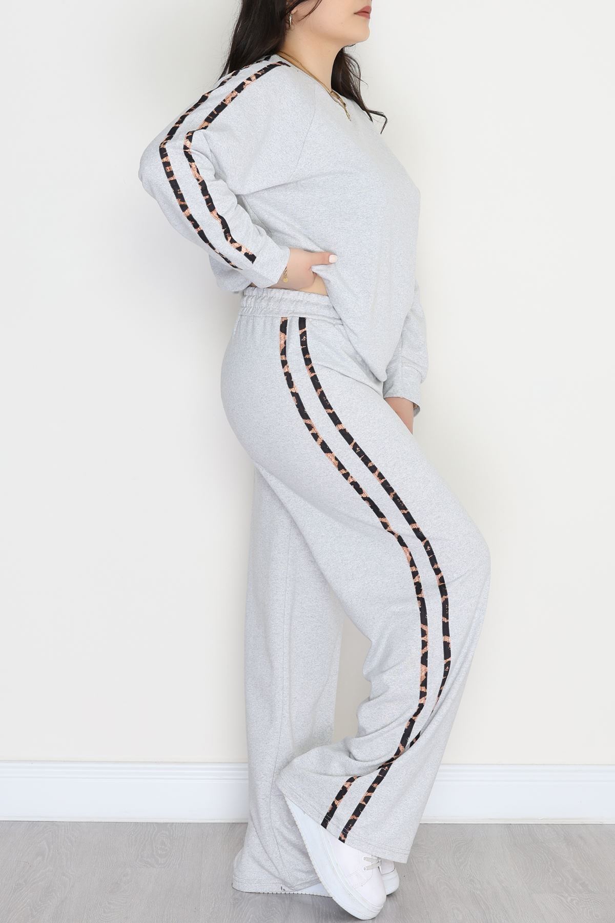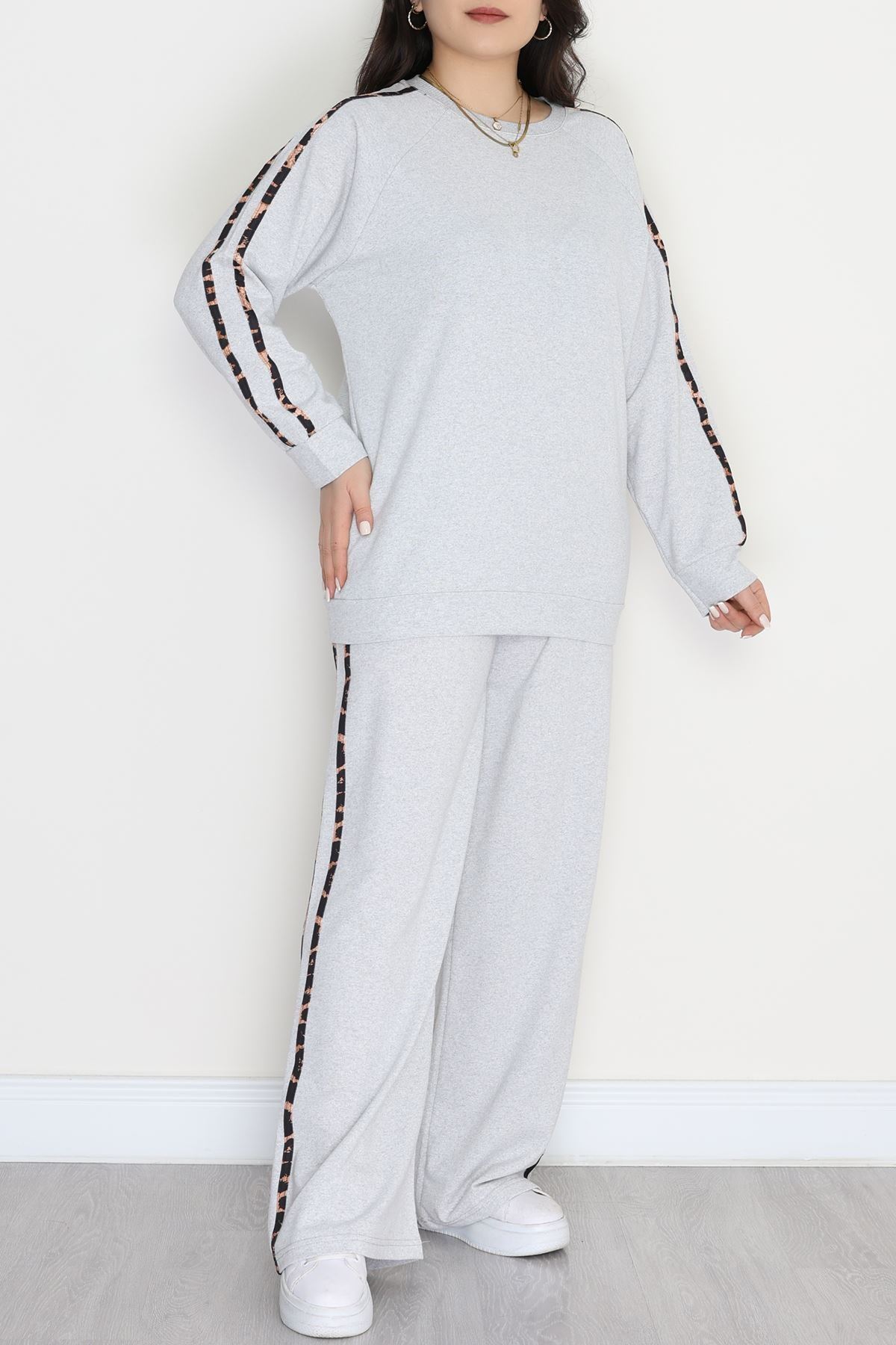Şeritli 2 İplik Büyük Beden Eşofman Takımı Gri - 50784.1857.