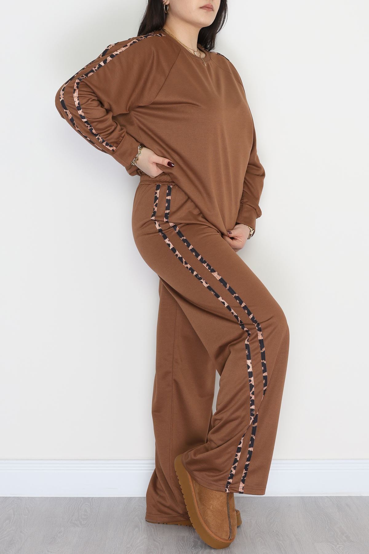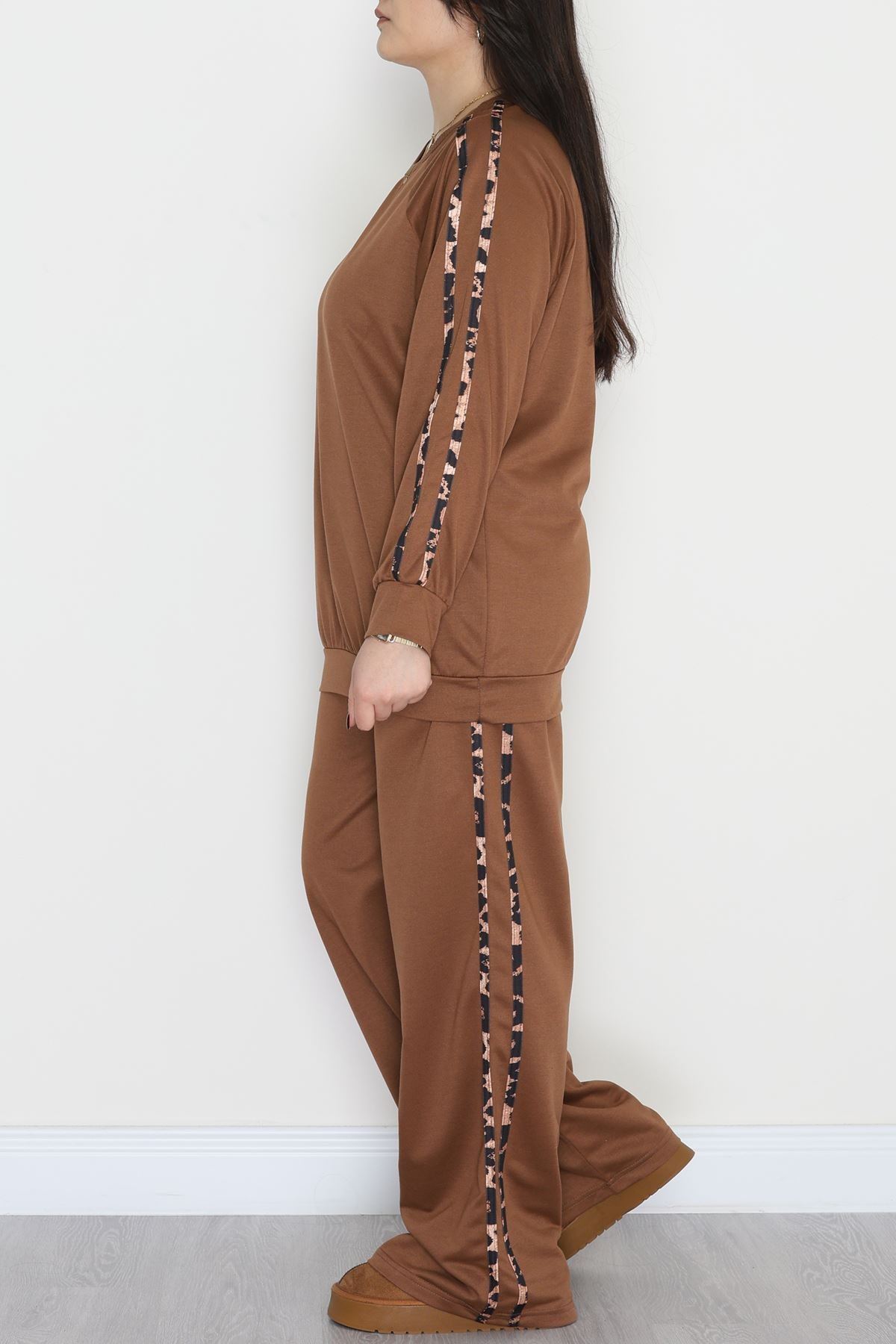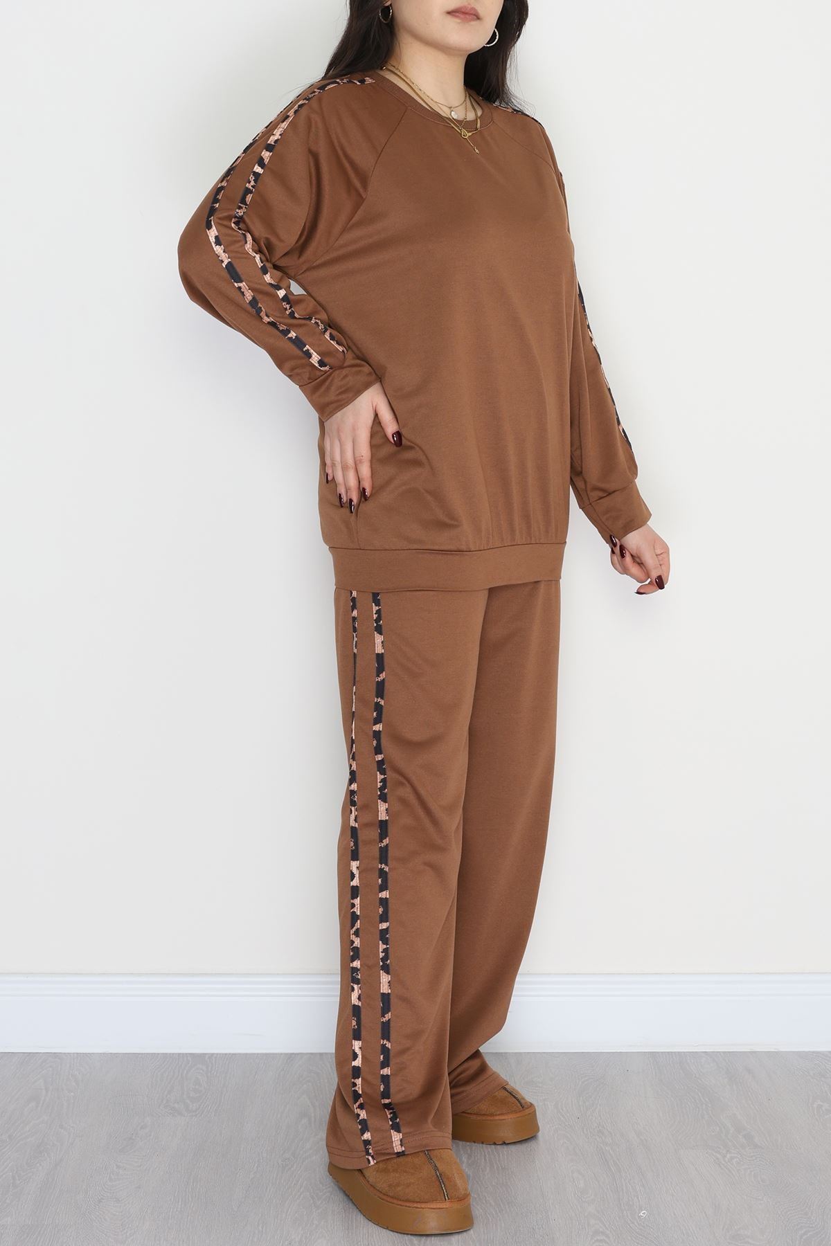 Şeritli 2 İplik Büyük Beden Eşofman Takımı Kahve - 50784.1857.