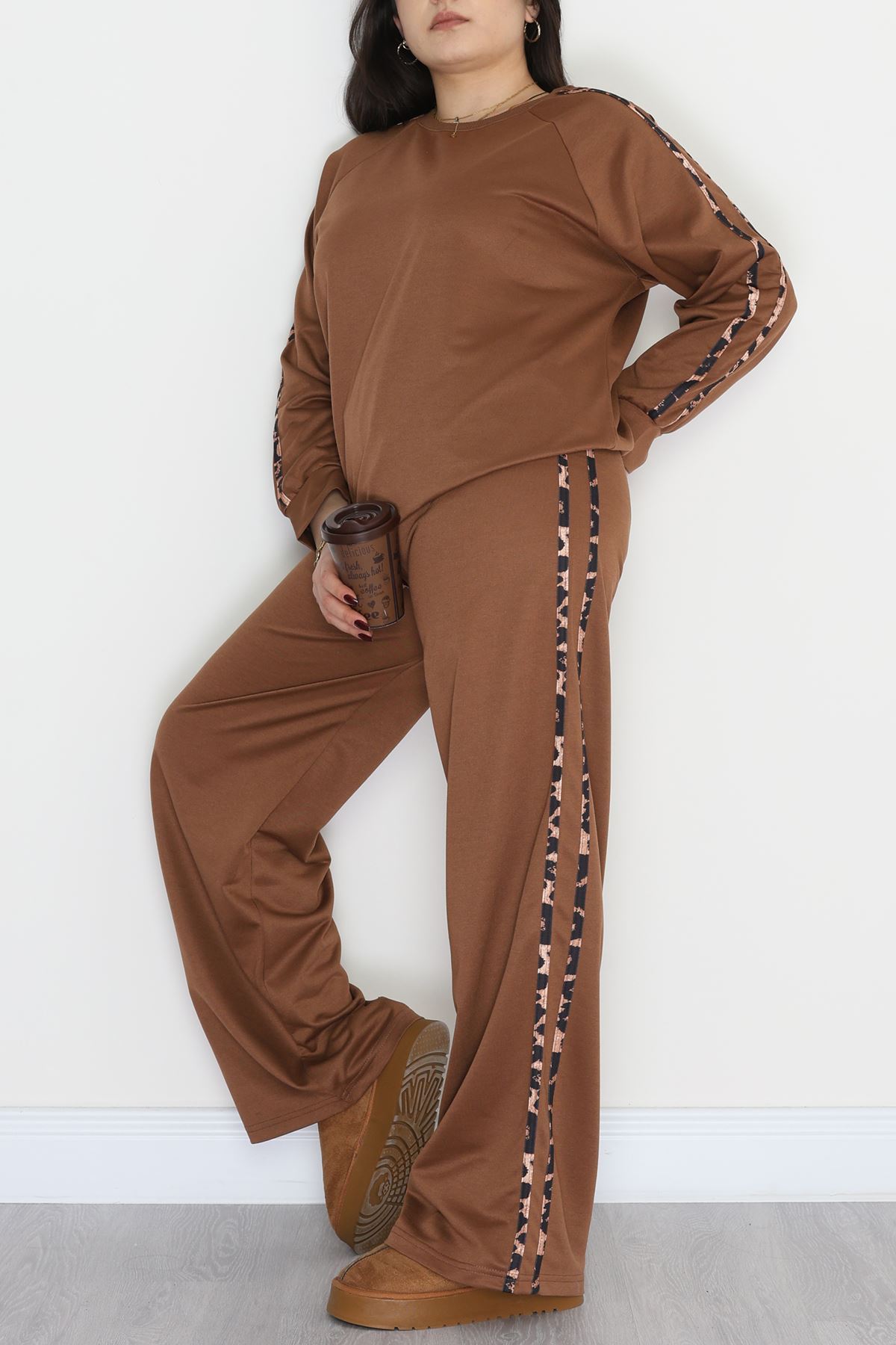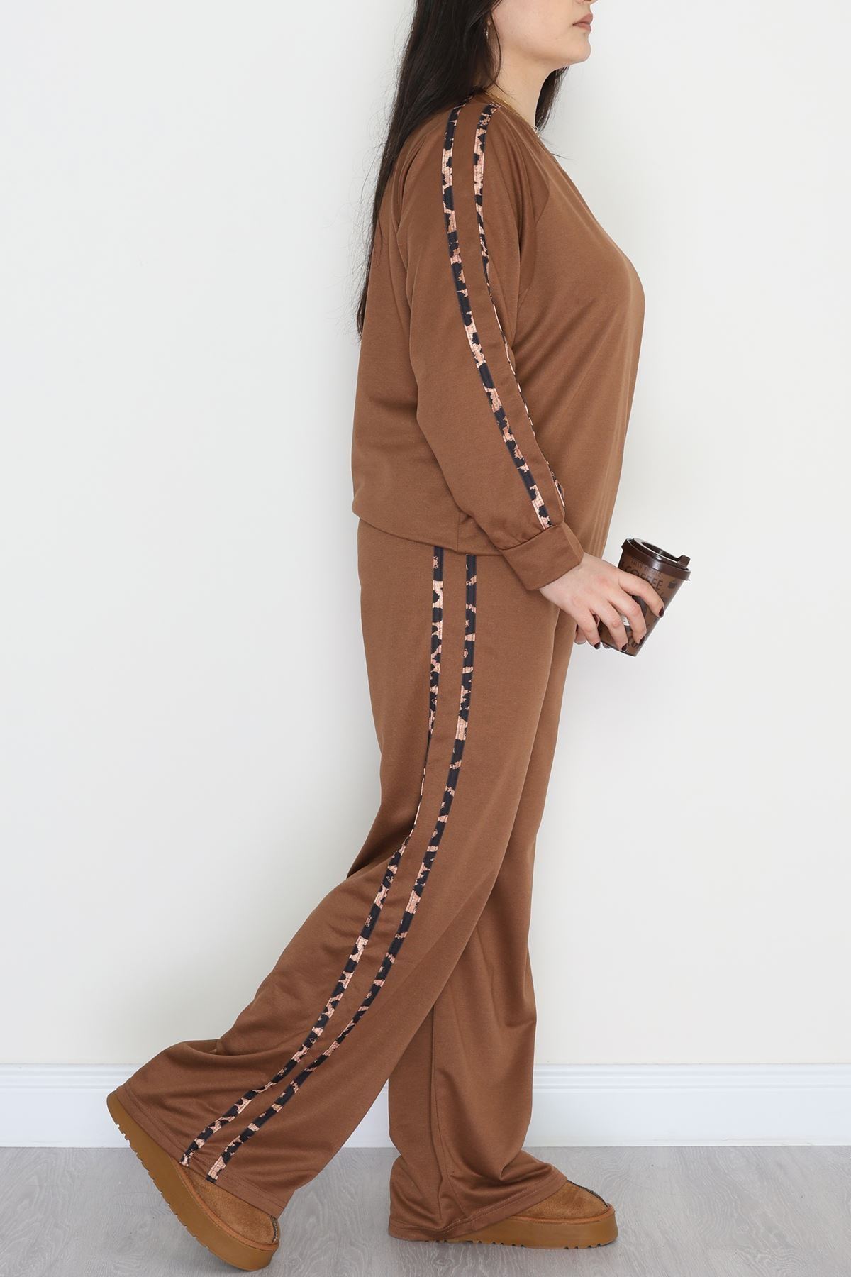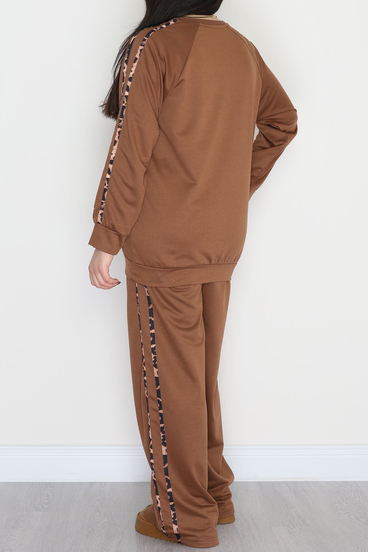 Şeritli 2 İplik Büyük Beden Eşofman Takımı Kahve - 50784.1857.