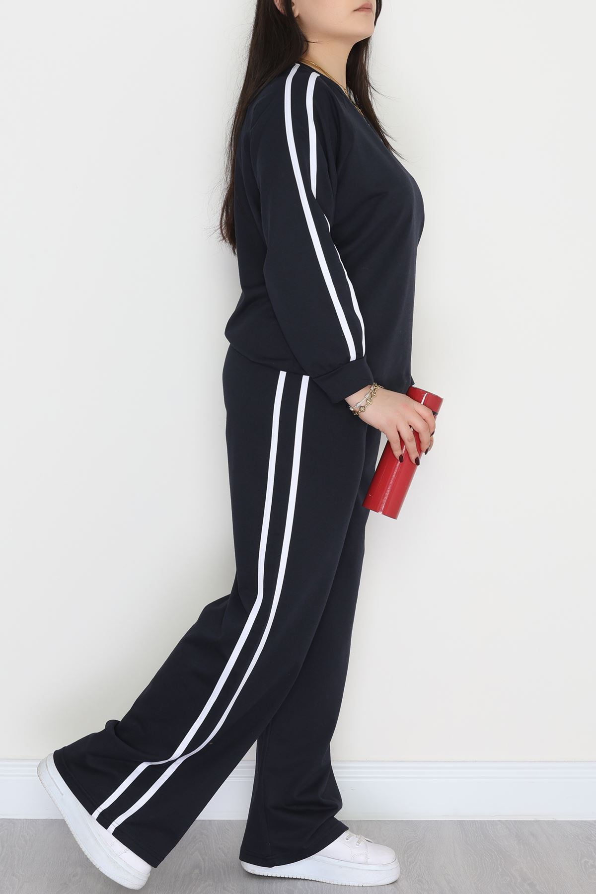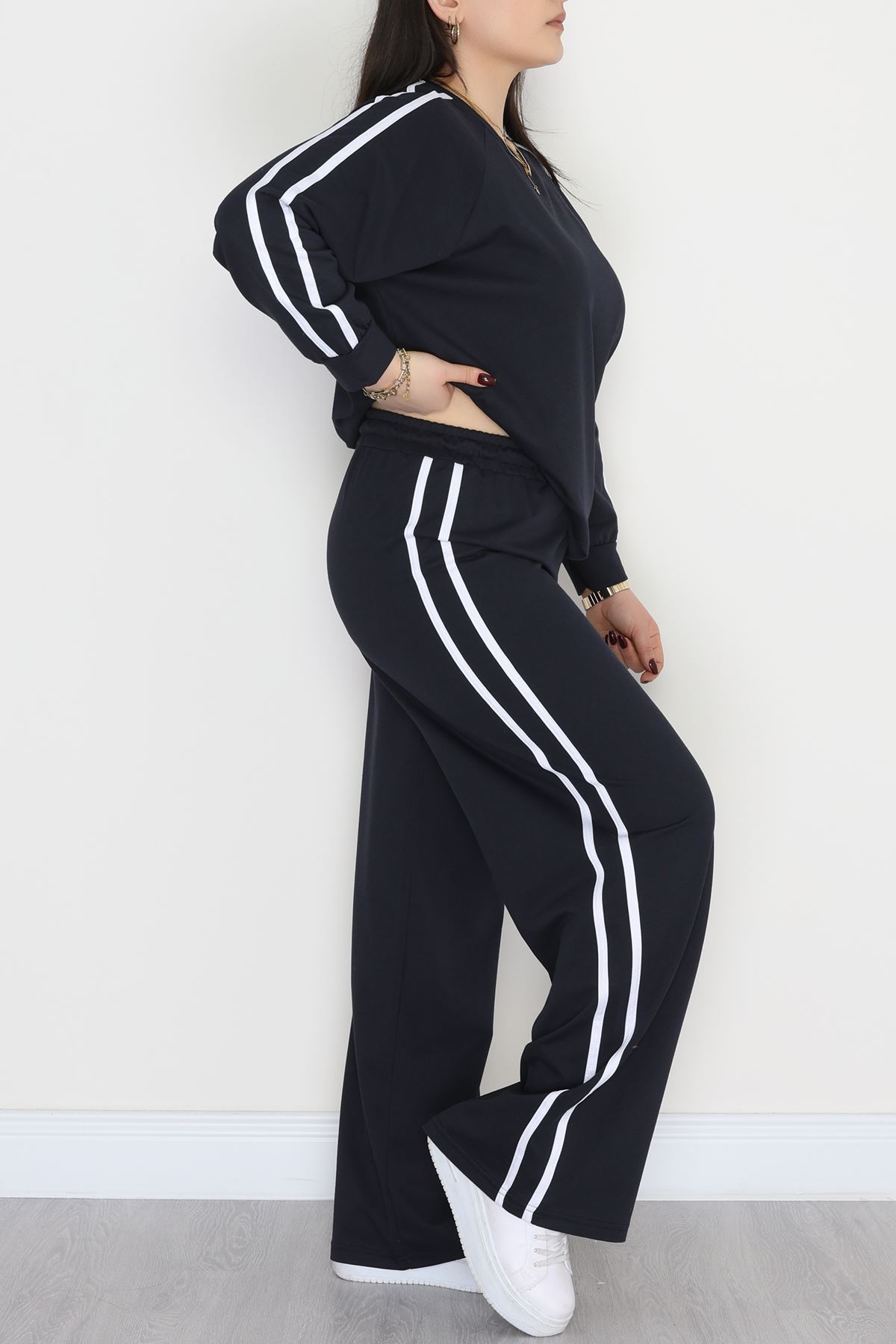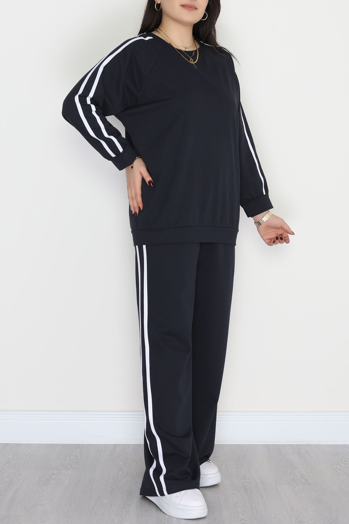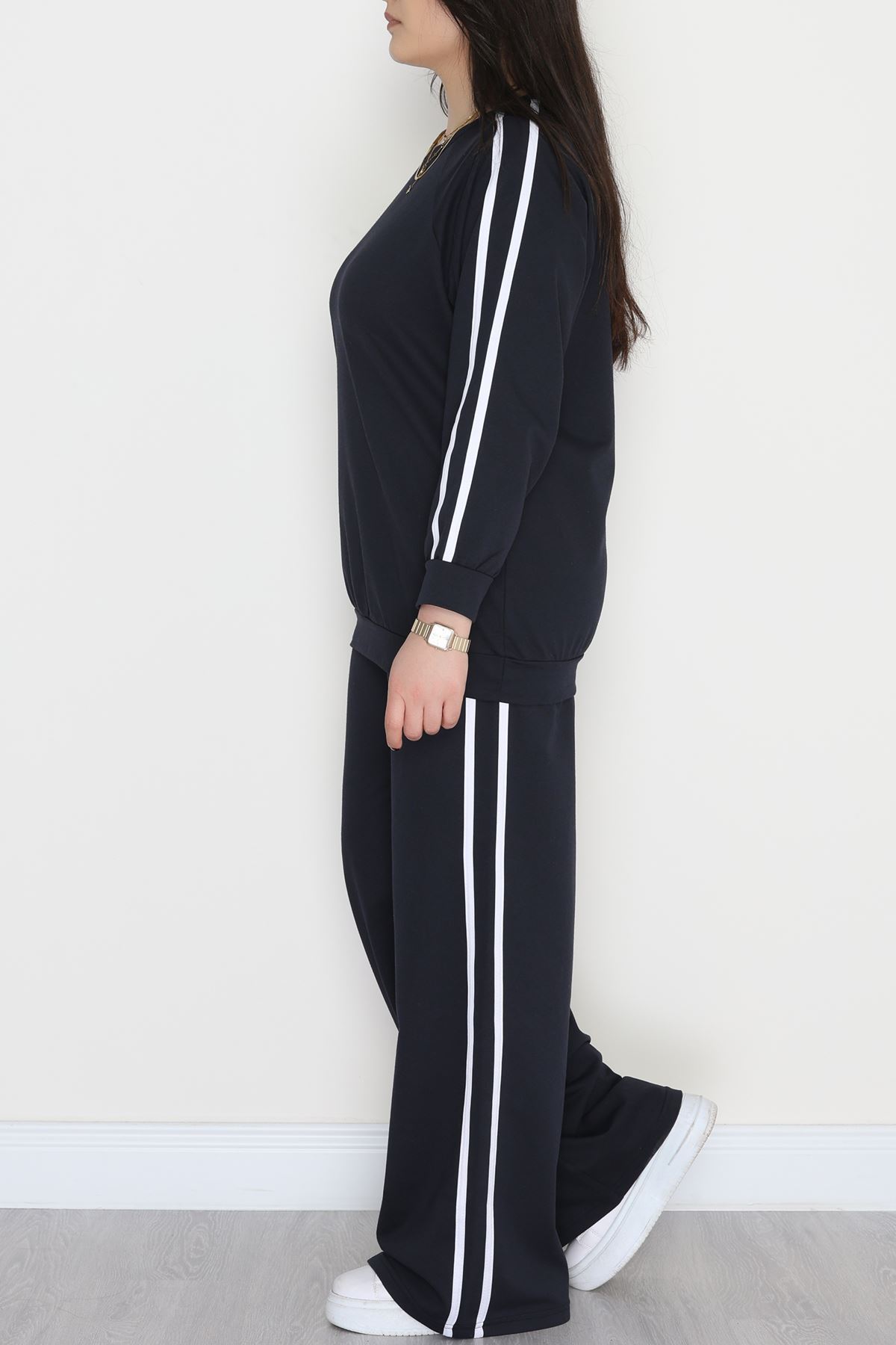 Şeritli 2 İplik Büyük Beden Eşofman Takımı Lacivert - 50784.1857.