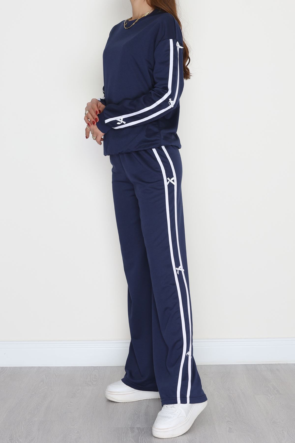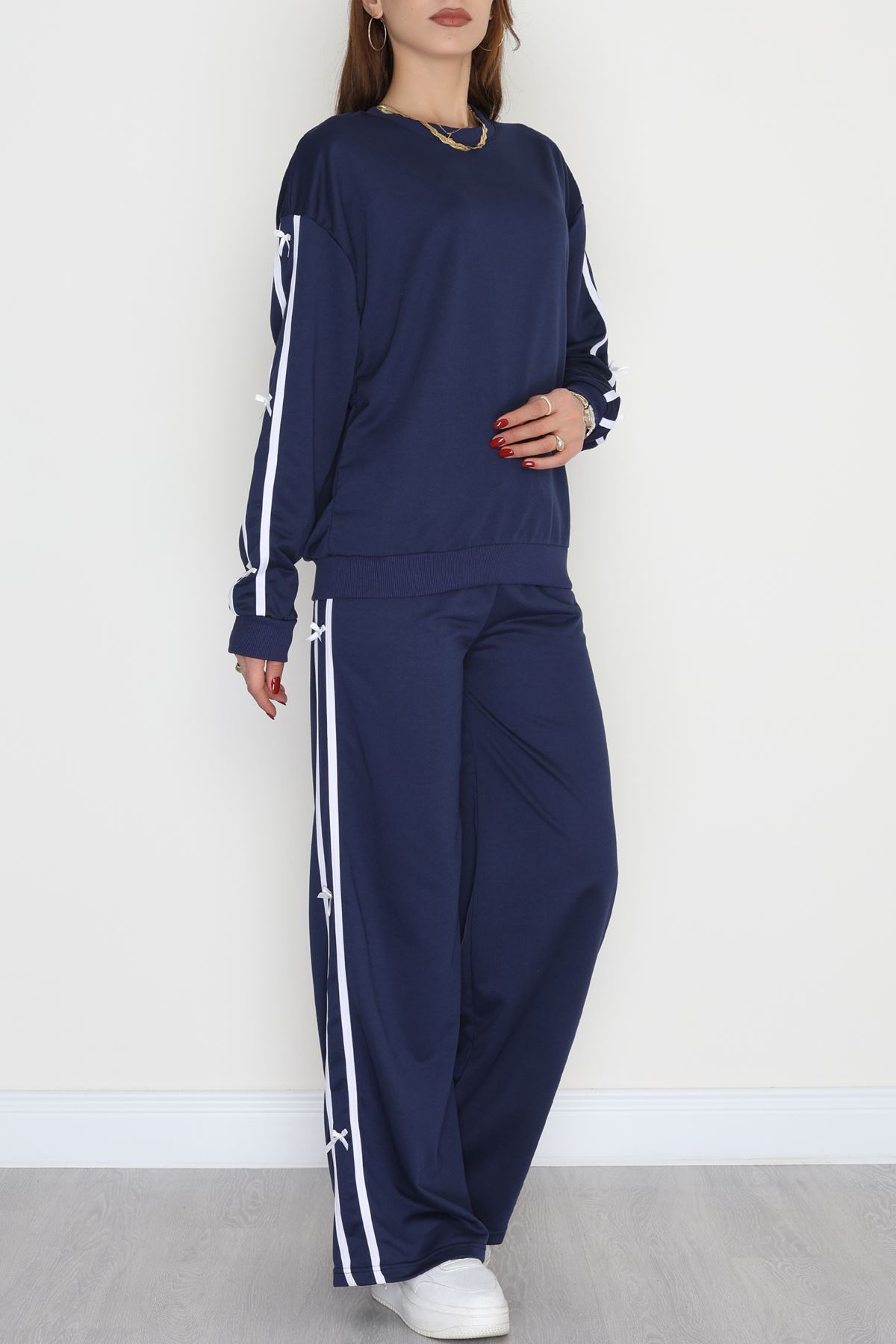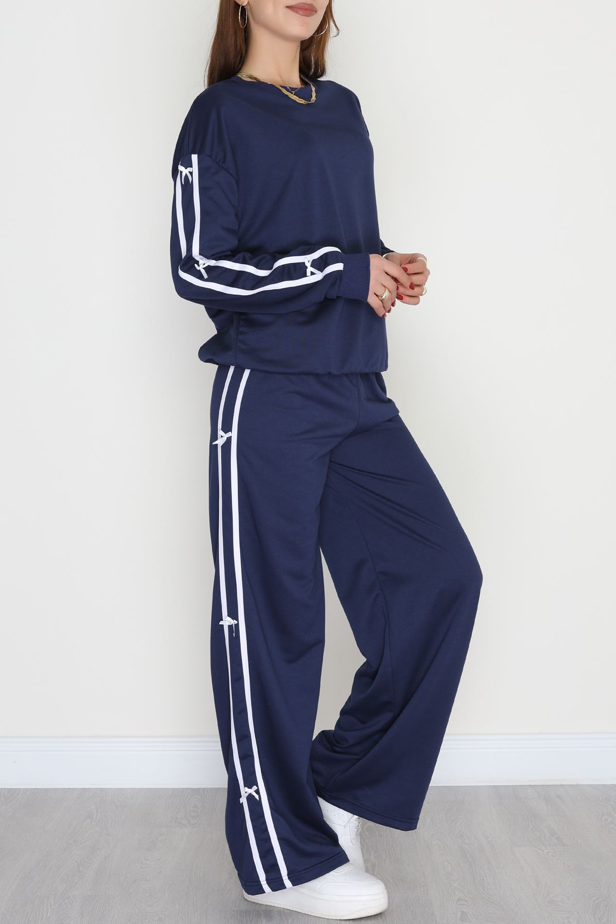 Şeritli Fiyonklu 2 İplik Eşofman Takımı Lacivert - 50788.1857.