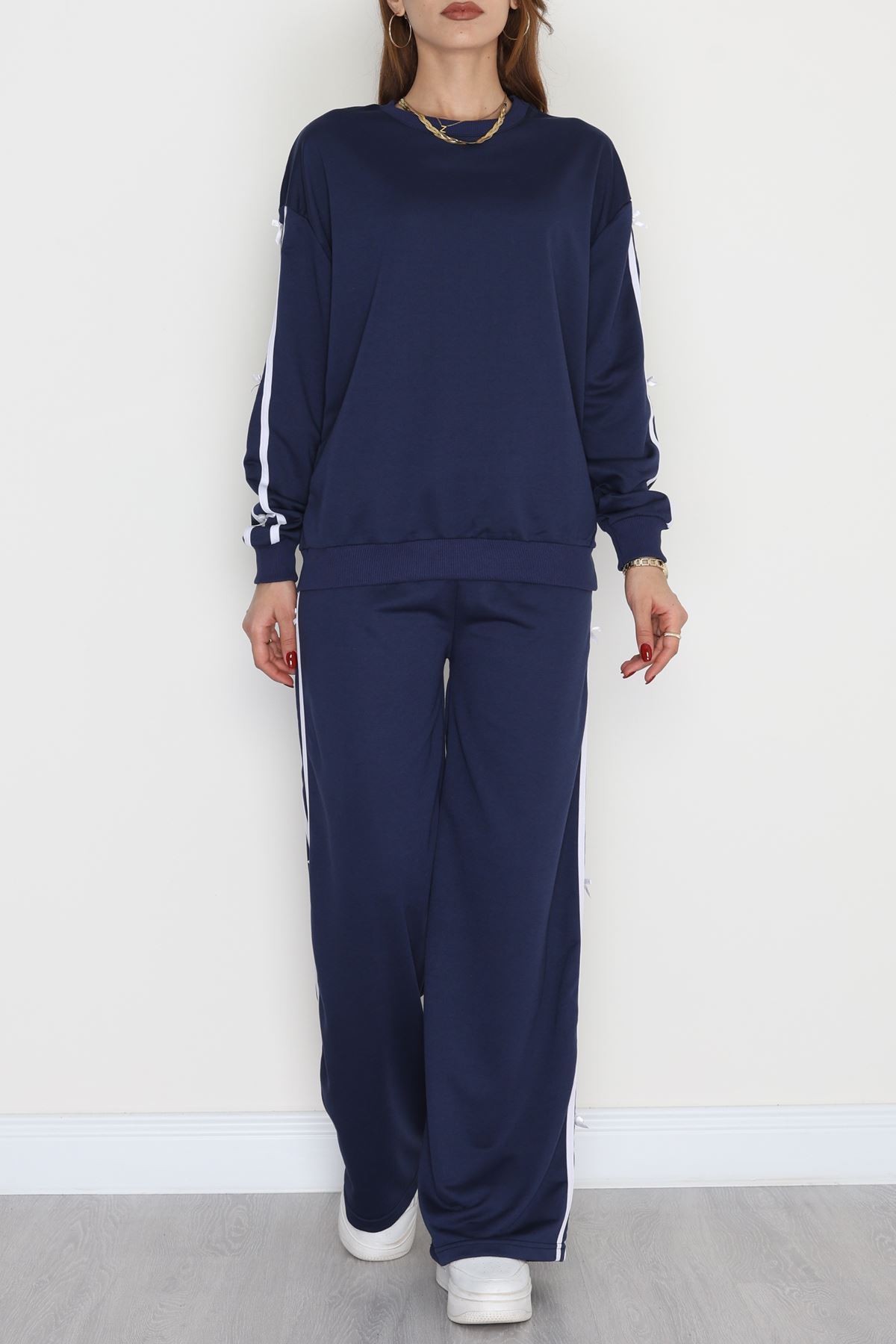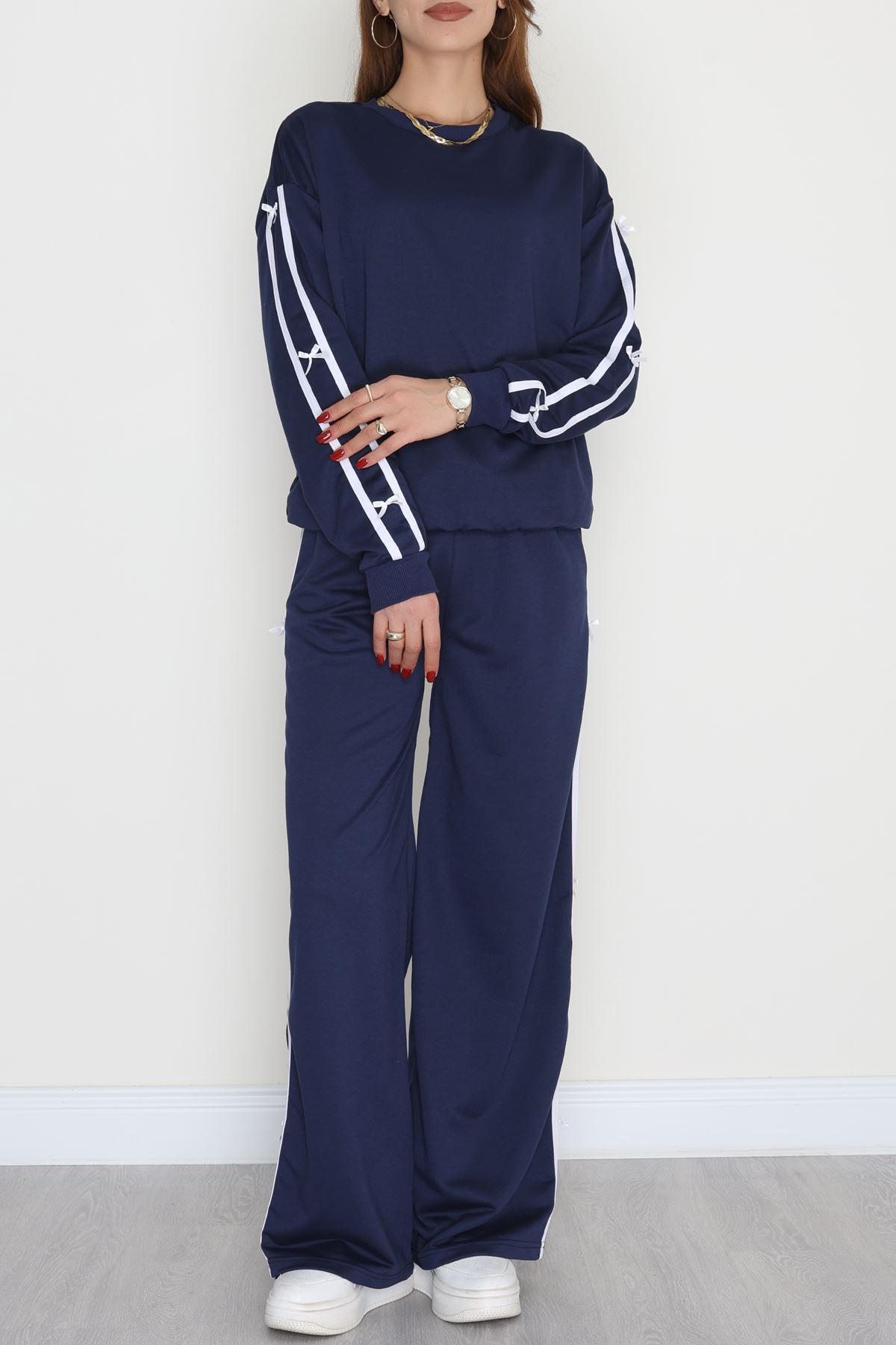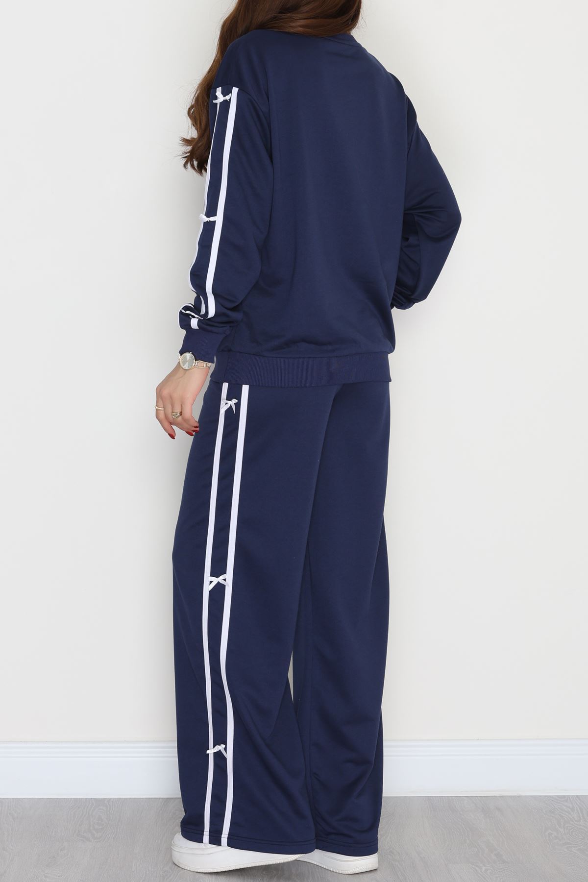 Şeritli Fiyonklu 2 İplik Eşofman Takımı Lacivert - 50788.1857.