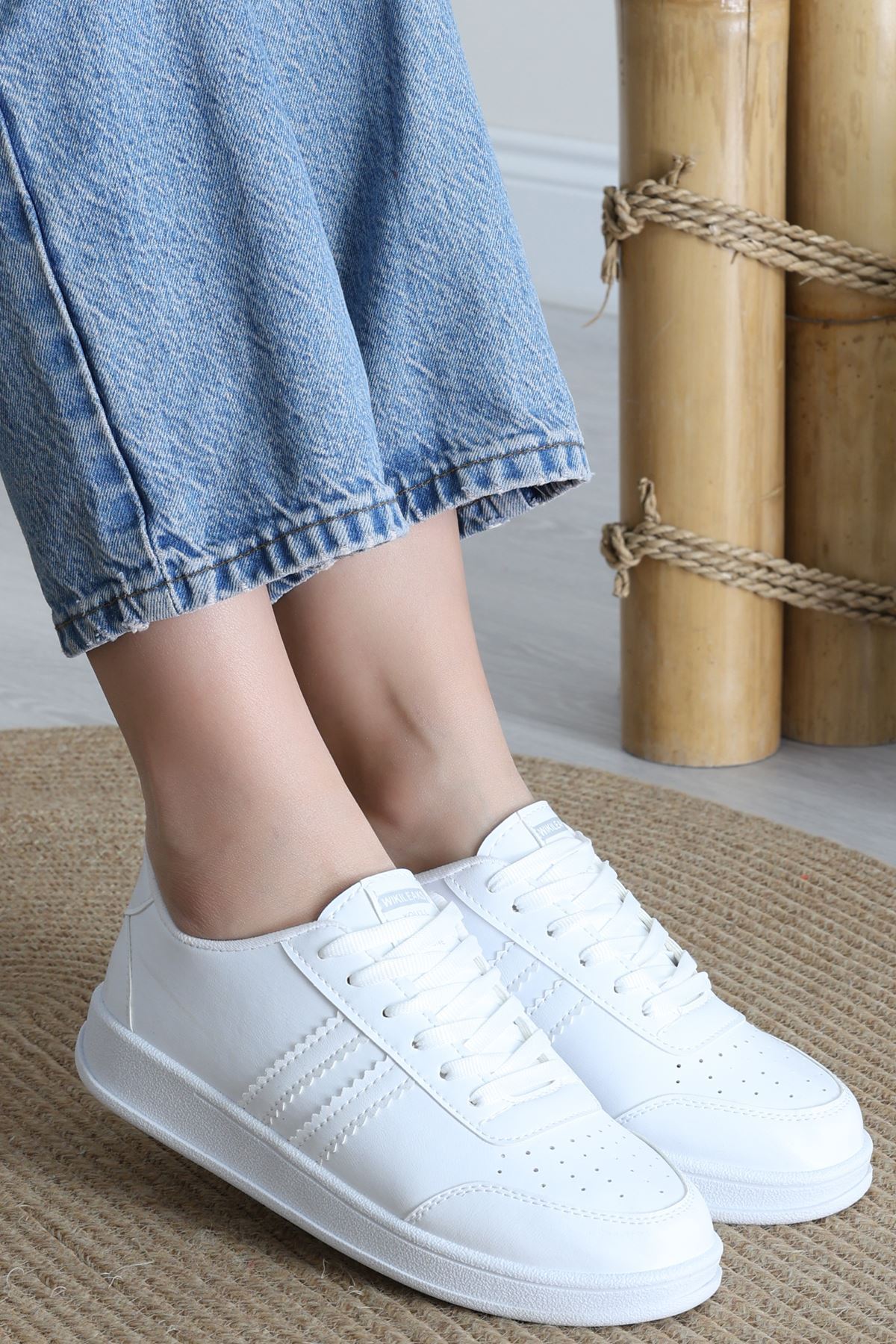 Şeritli Günlük Ayakkabı Beyazpudra - 17114.264.