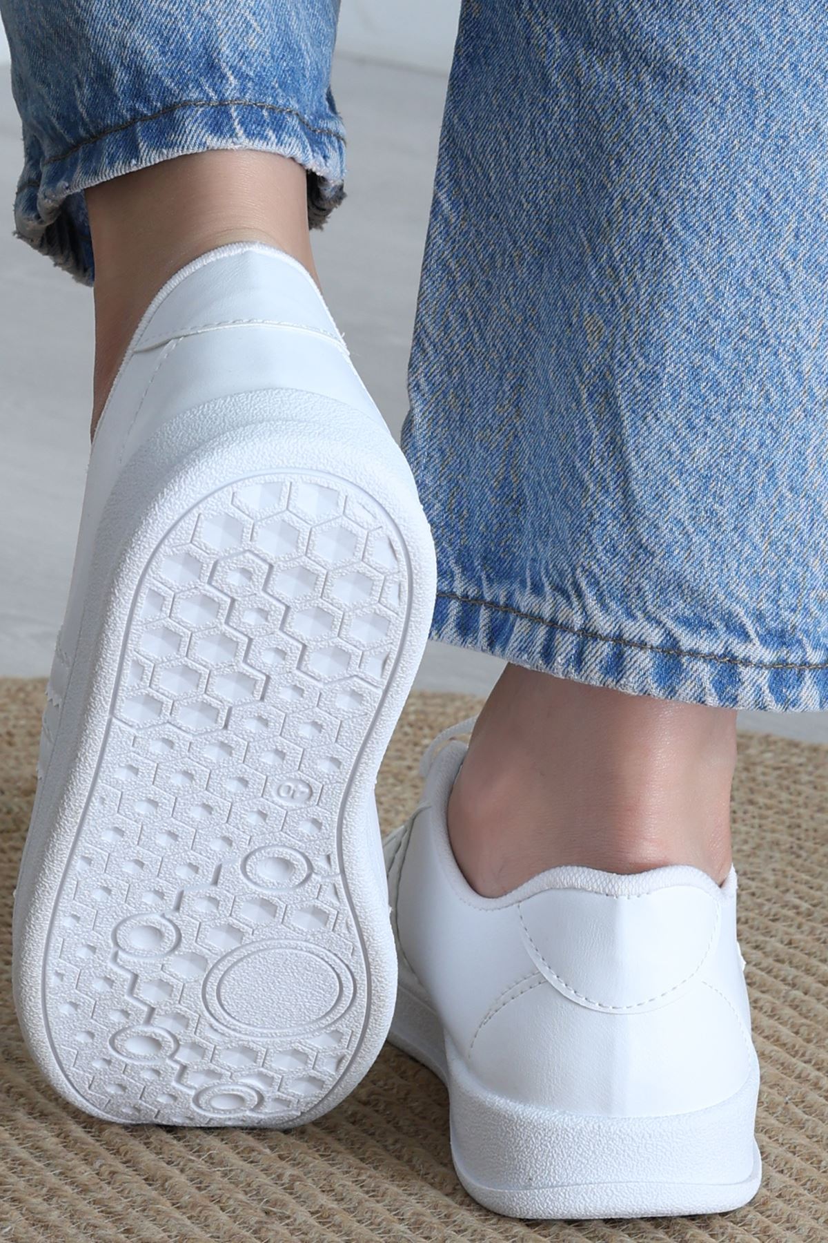 Şeritli Günlük Ayakkabı Beyaz - 17114.264.