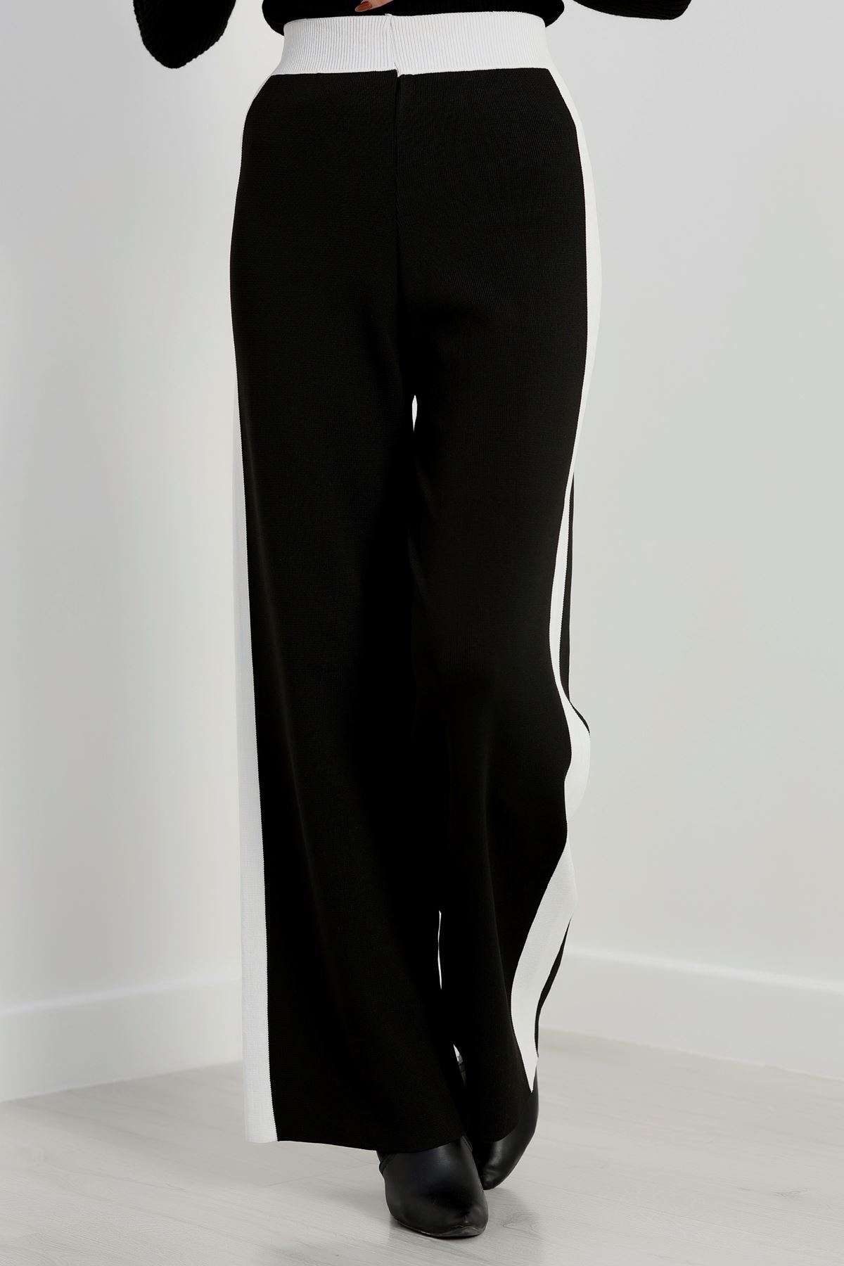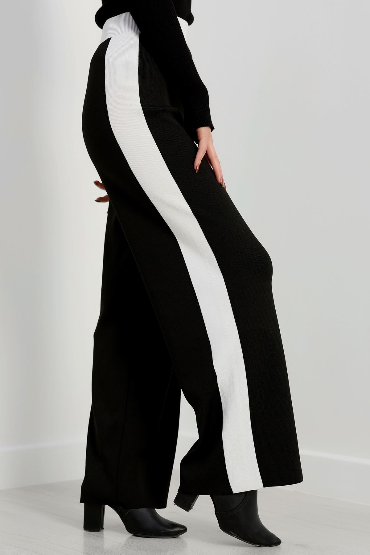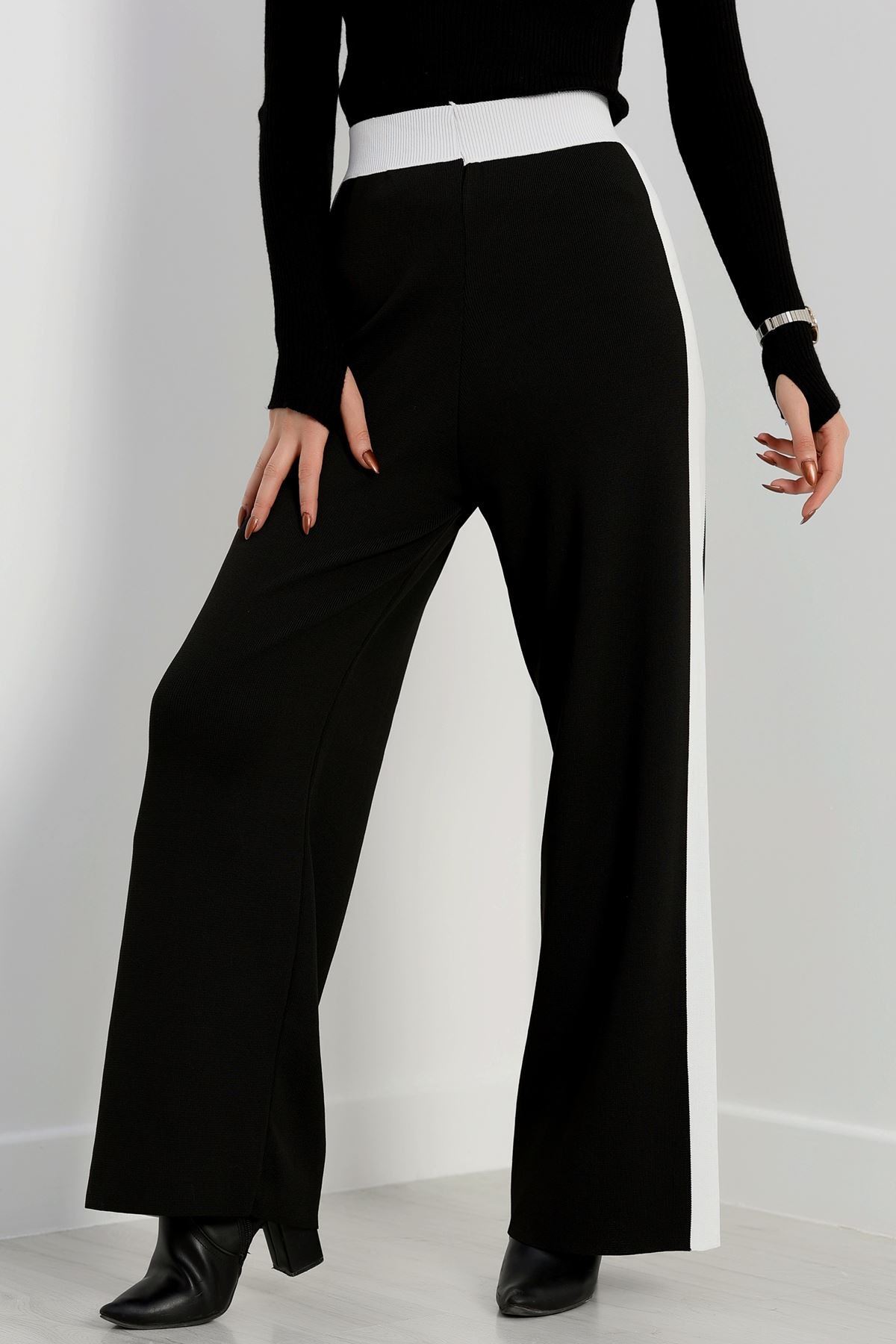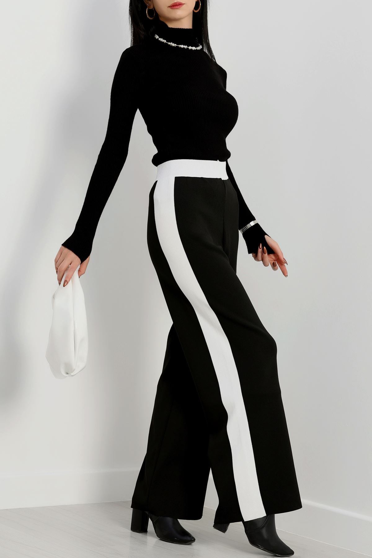 Şeritli Triko Pantolon Siyah - 2393.1765.