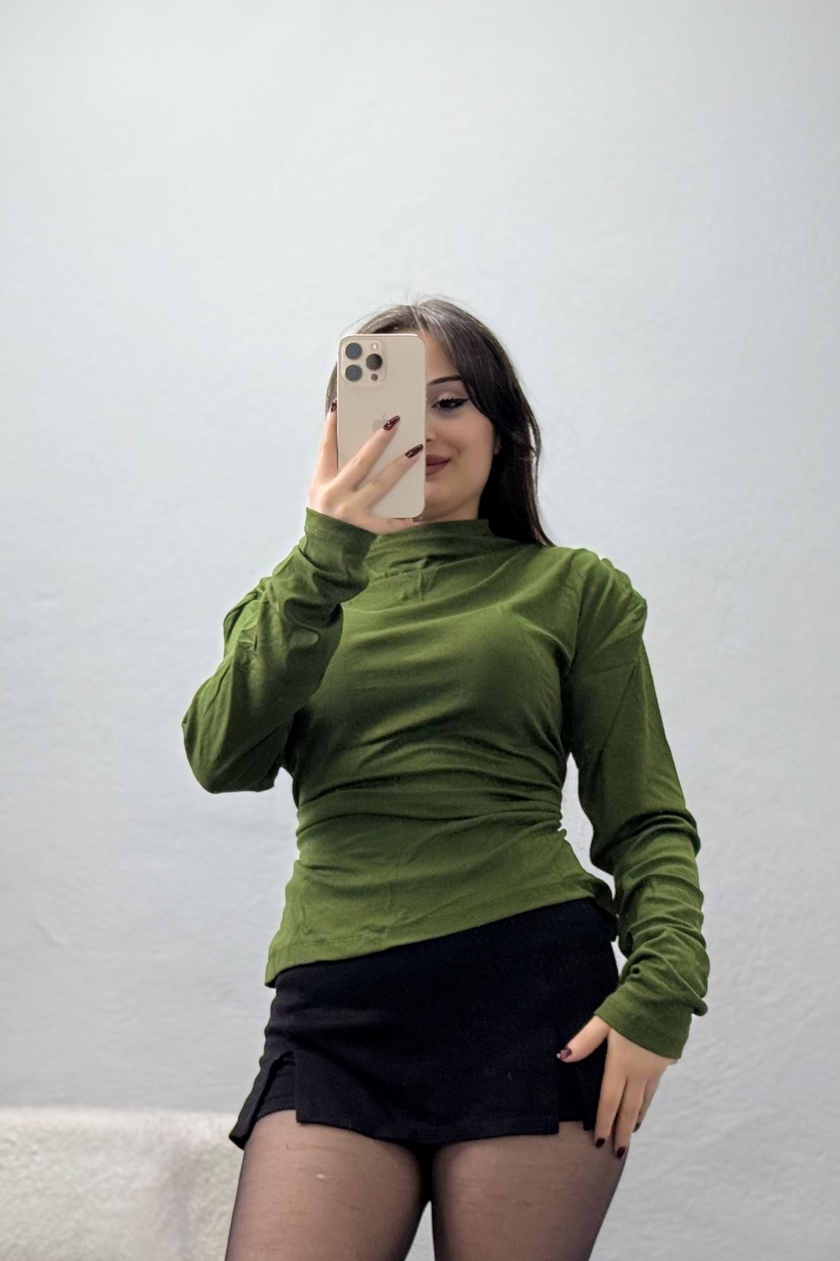 Sırt Dekolteli Örme Bluz Haki - 71788.444.