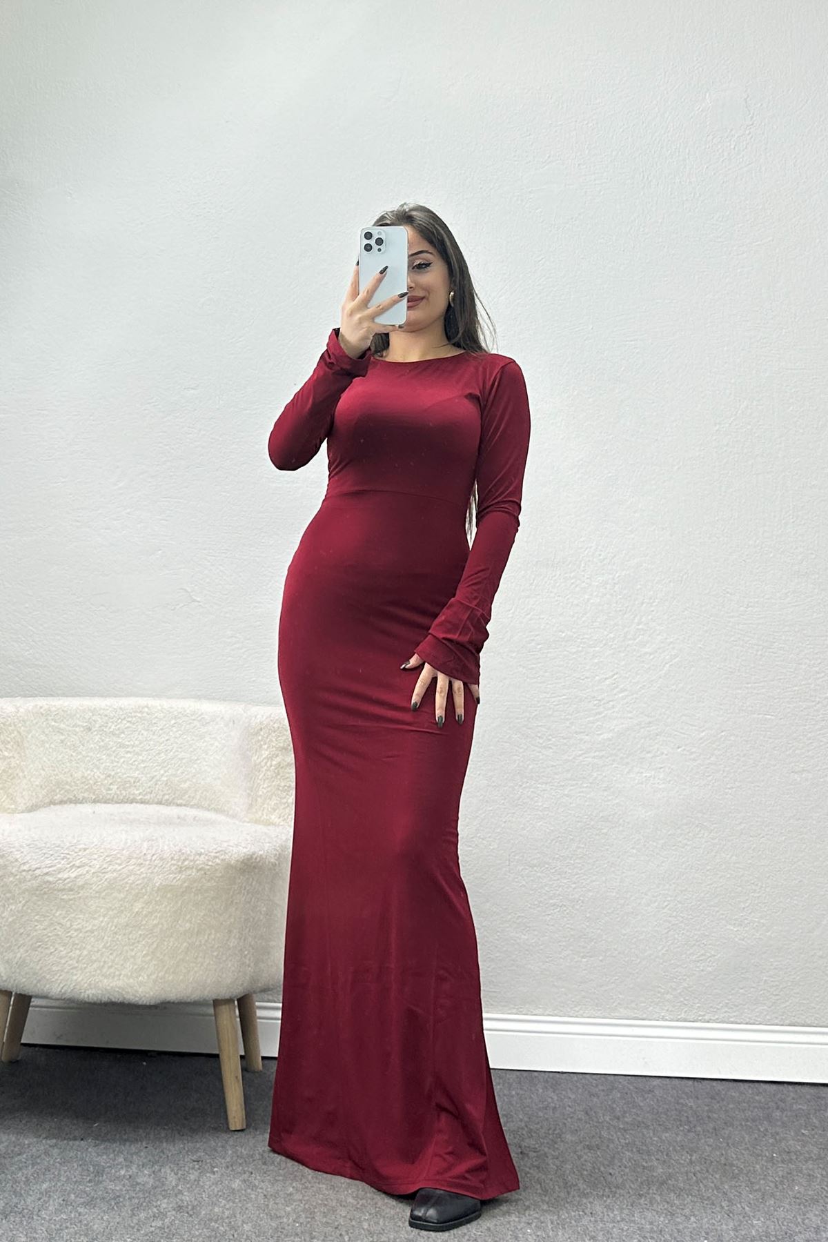 Sırt Dekolteli Sandy Elbise Bordo - 42525.1916.