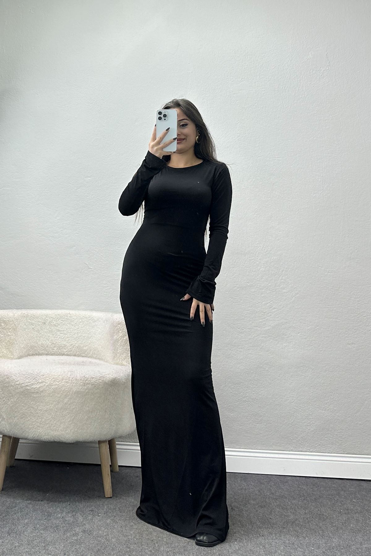 Sırt Dekolteli Sandy Elbise Siyah - 42525.1916.