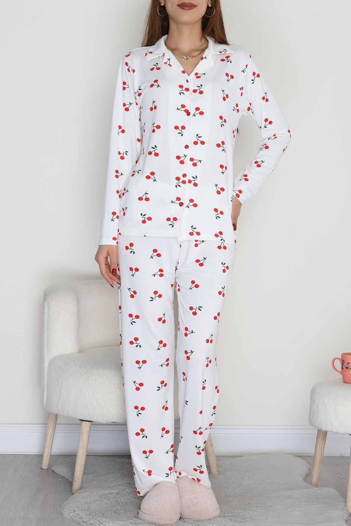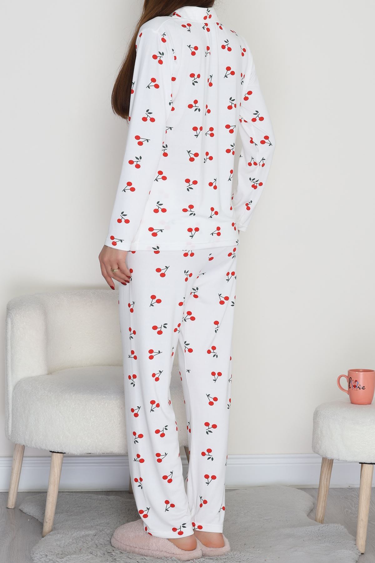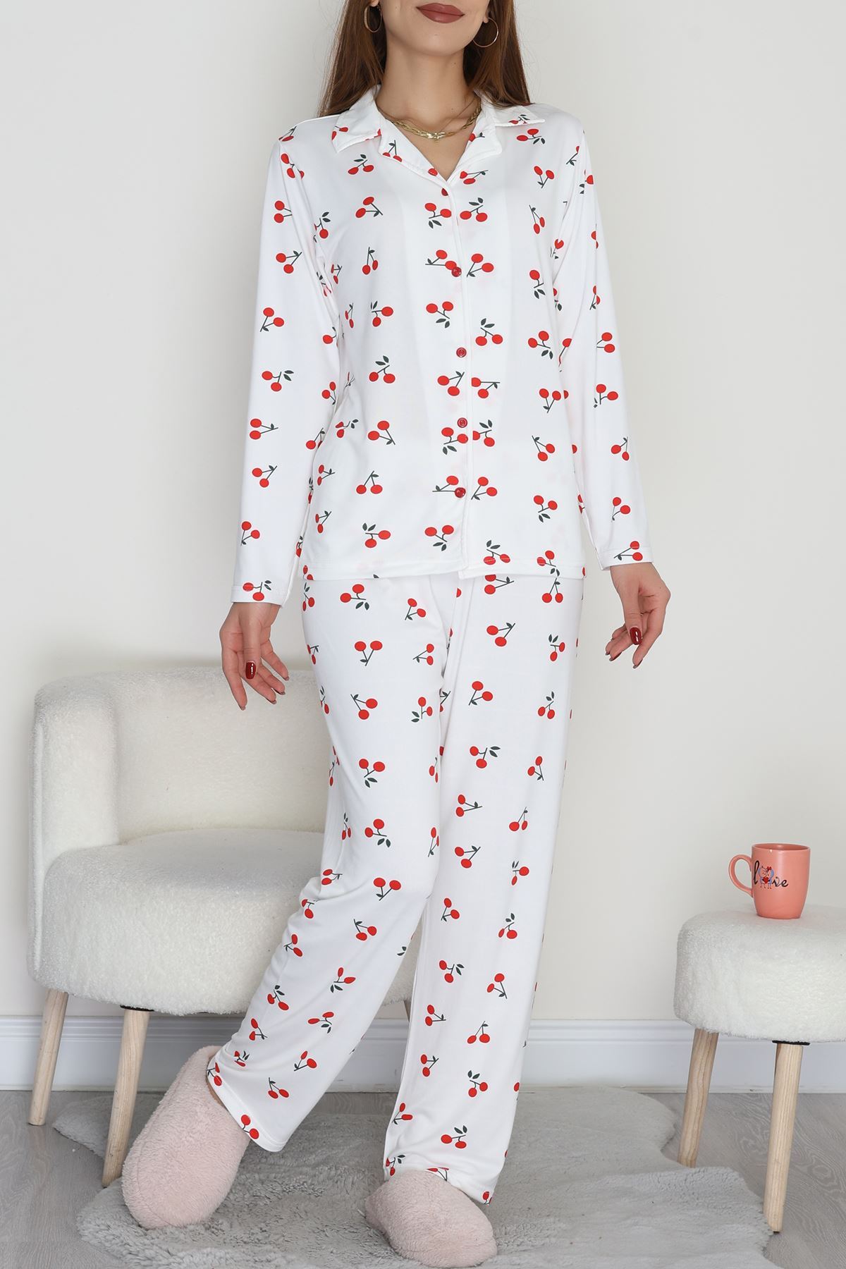Soft Milan Düğmeli Pijama Takımı Beyazkiraz - 7511.1287.