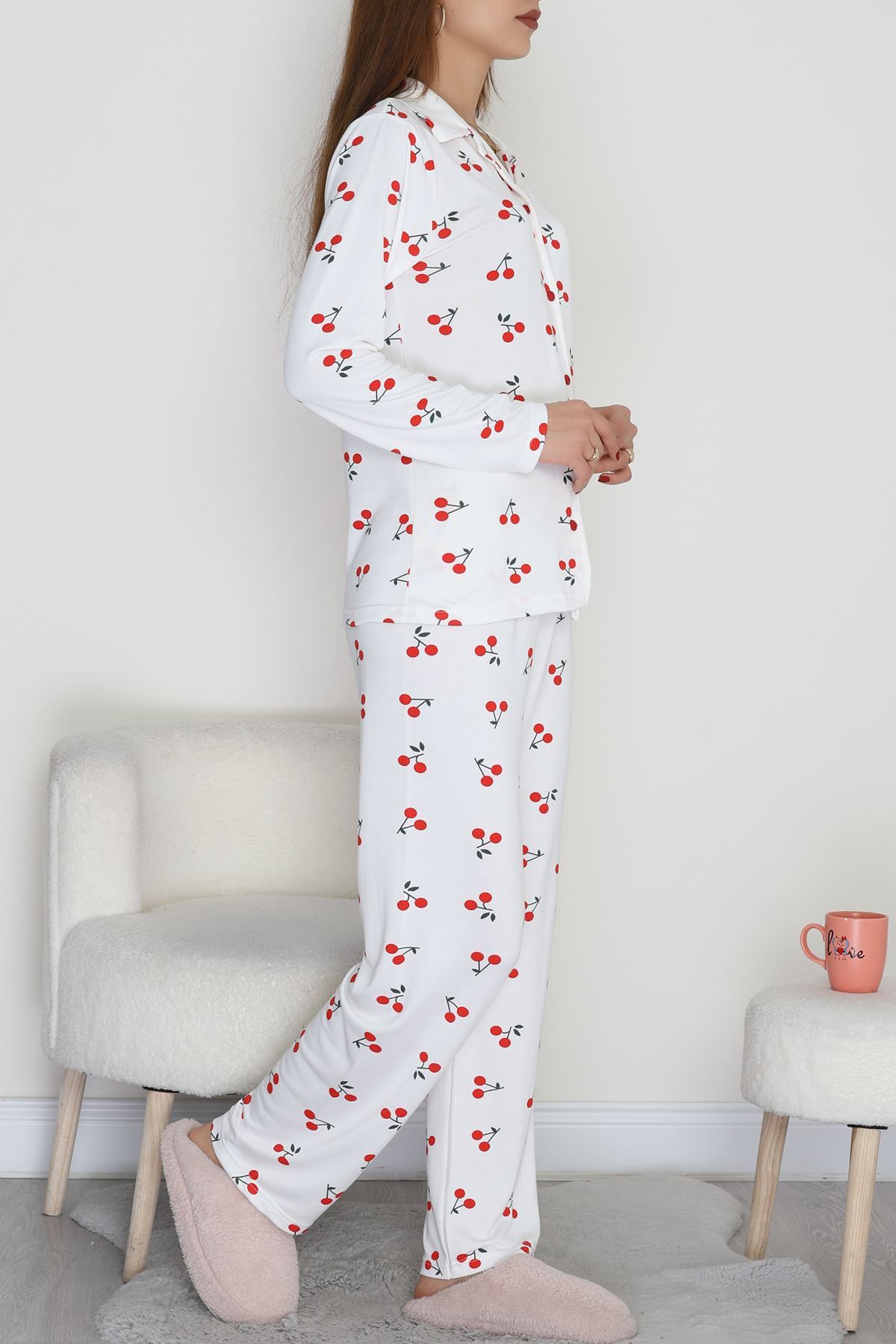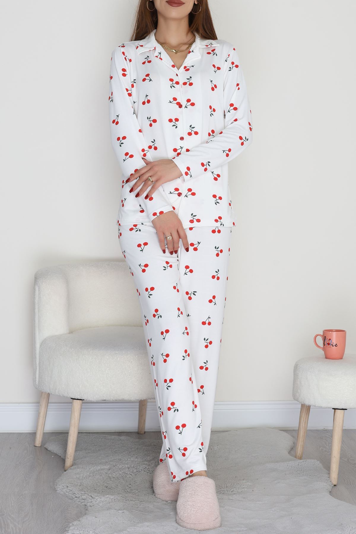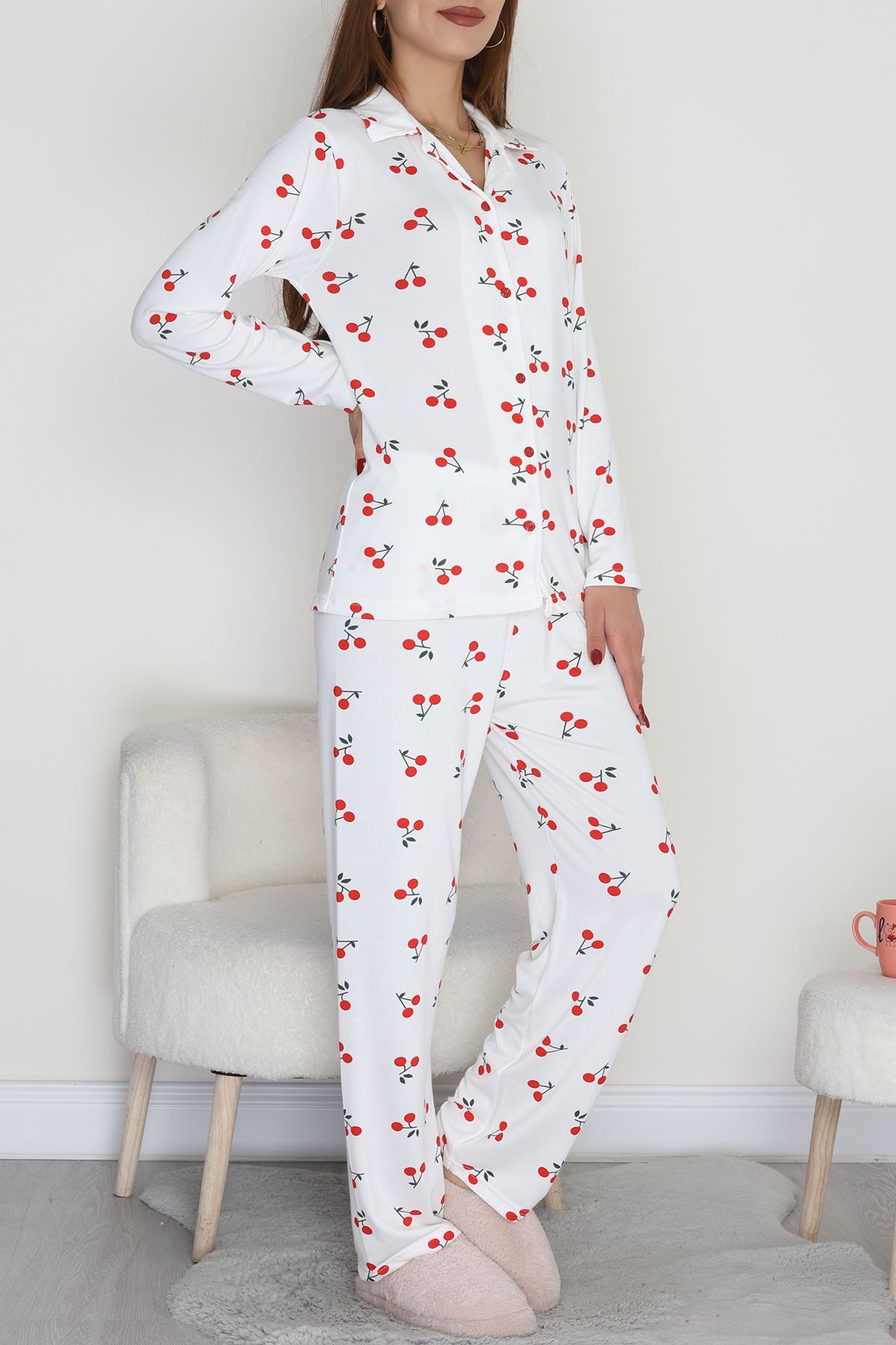 Soft Milan Düğmeli Pijama Takımı Beyazkiraz - 7511.1287.