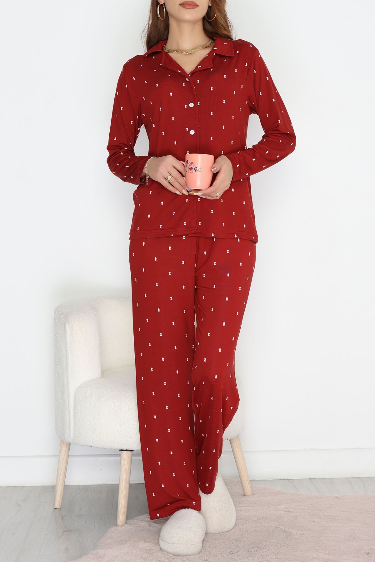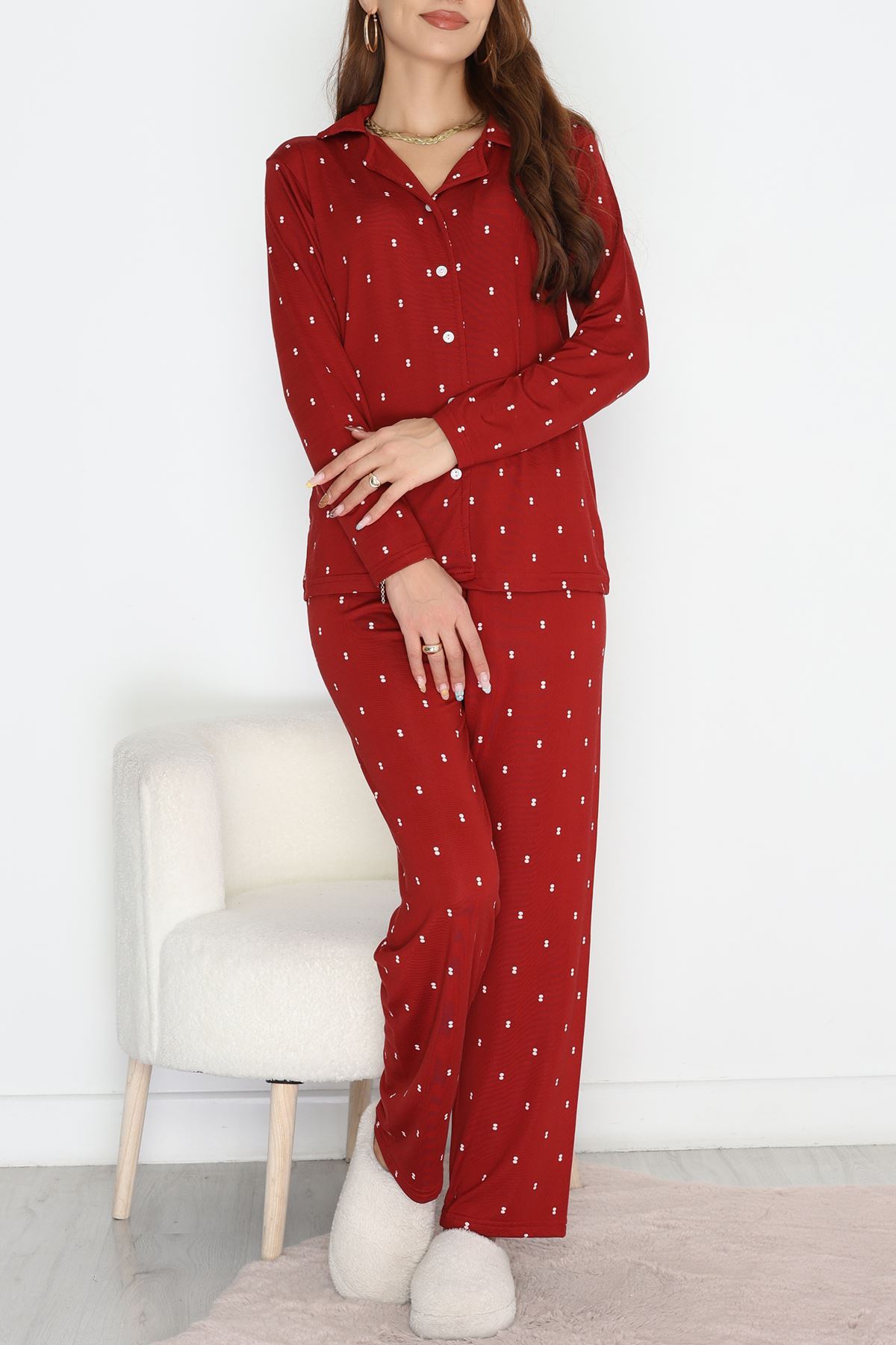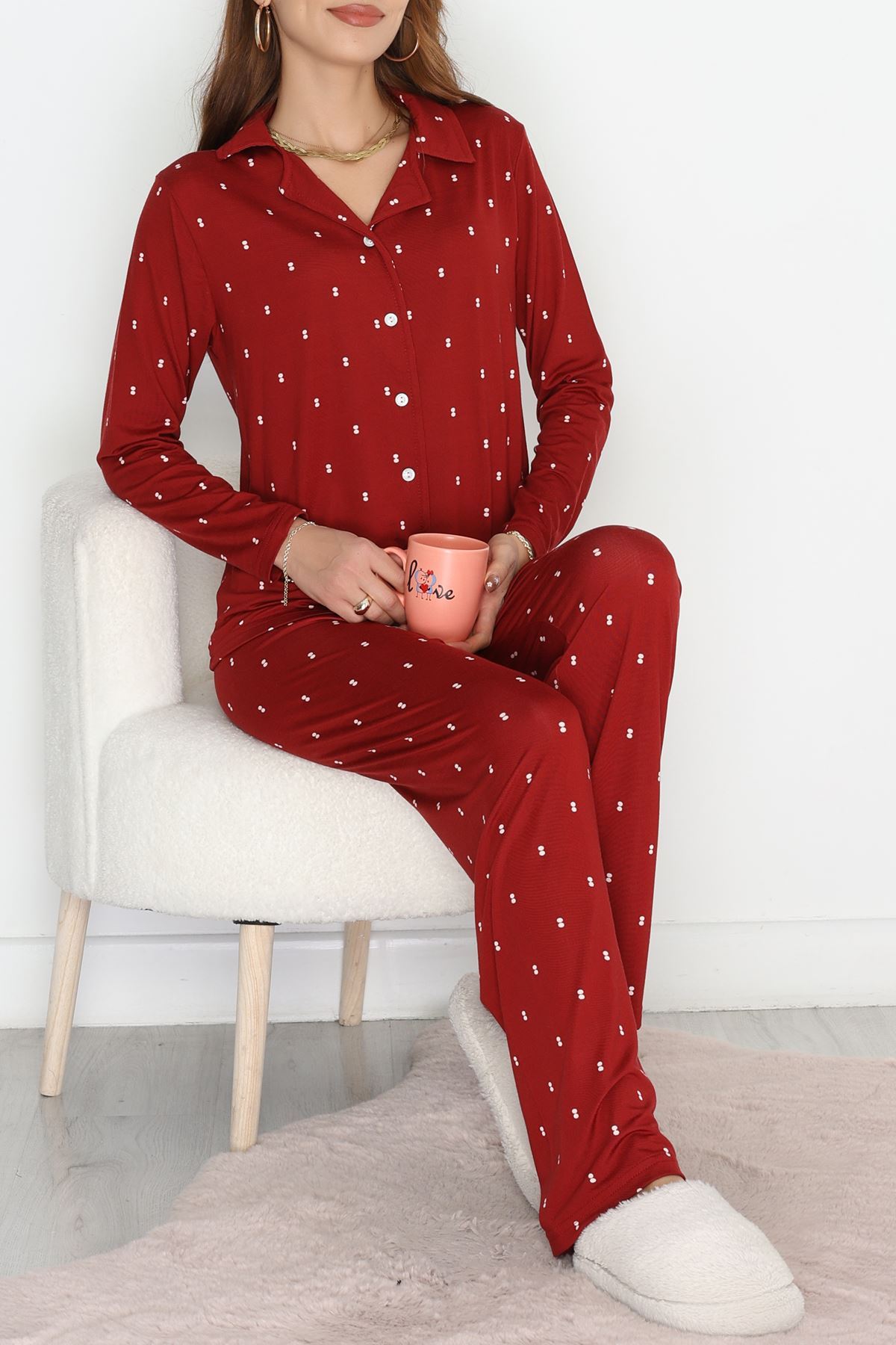 Soft Milan Düğmeli Pijama Takımı Bordobenek - 7511.1287.