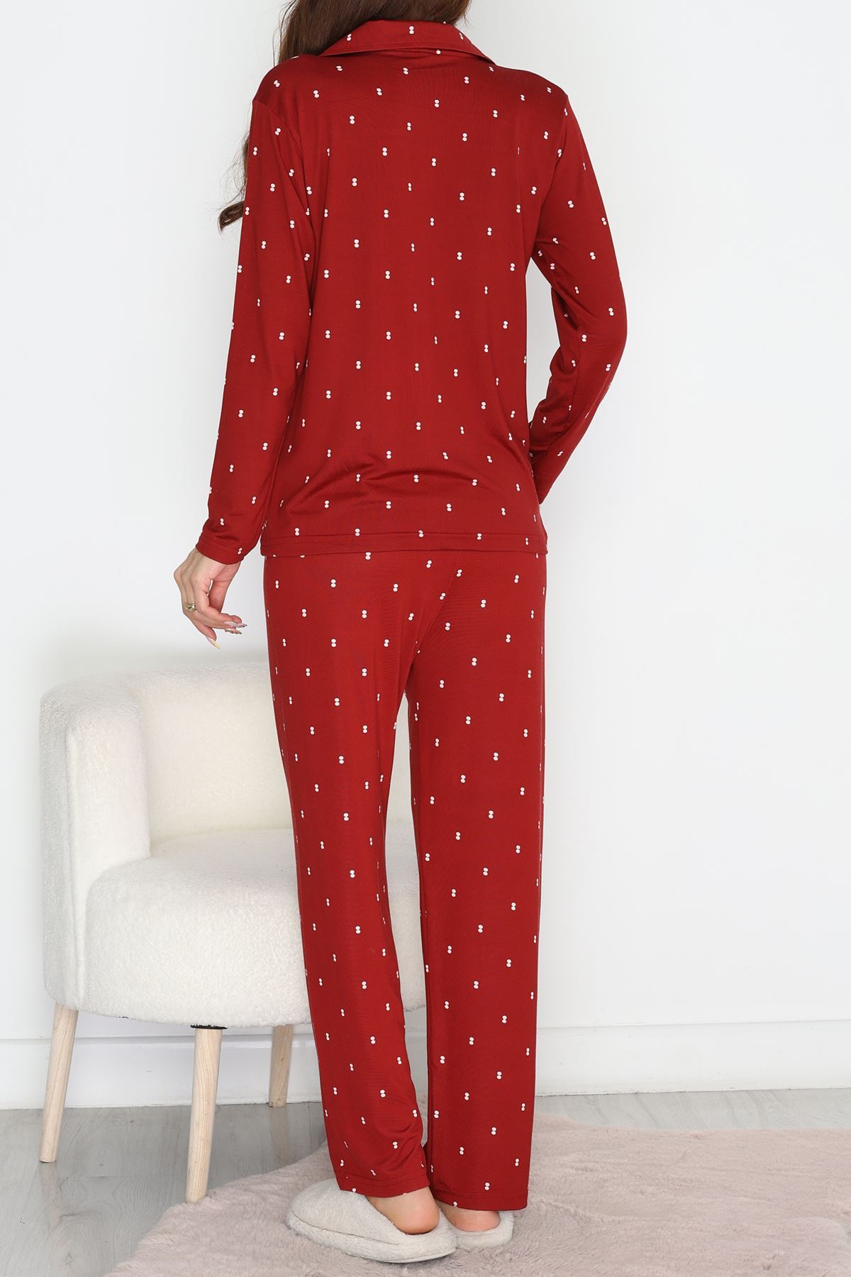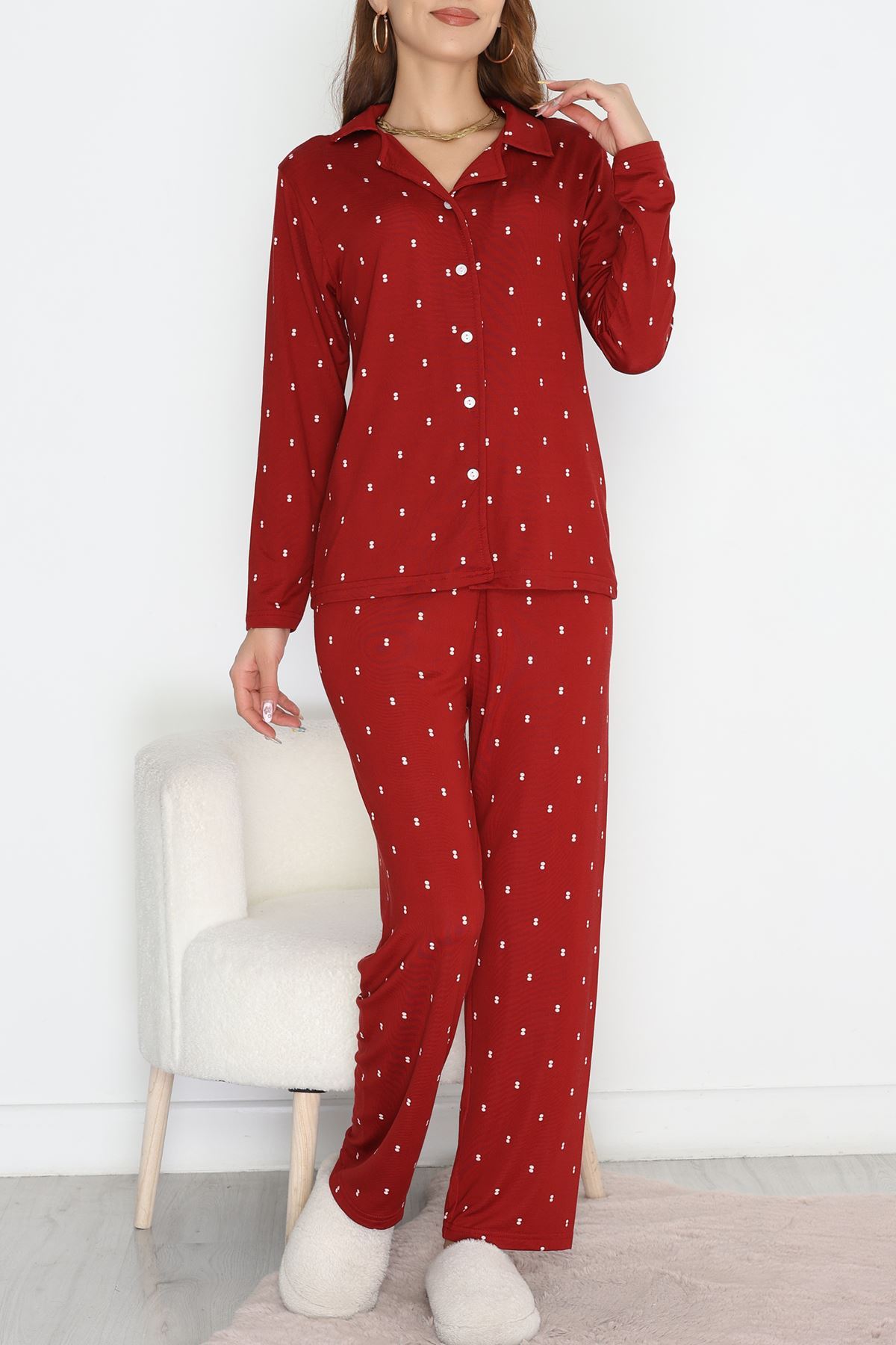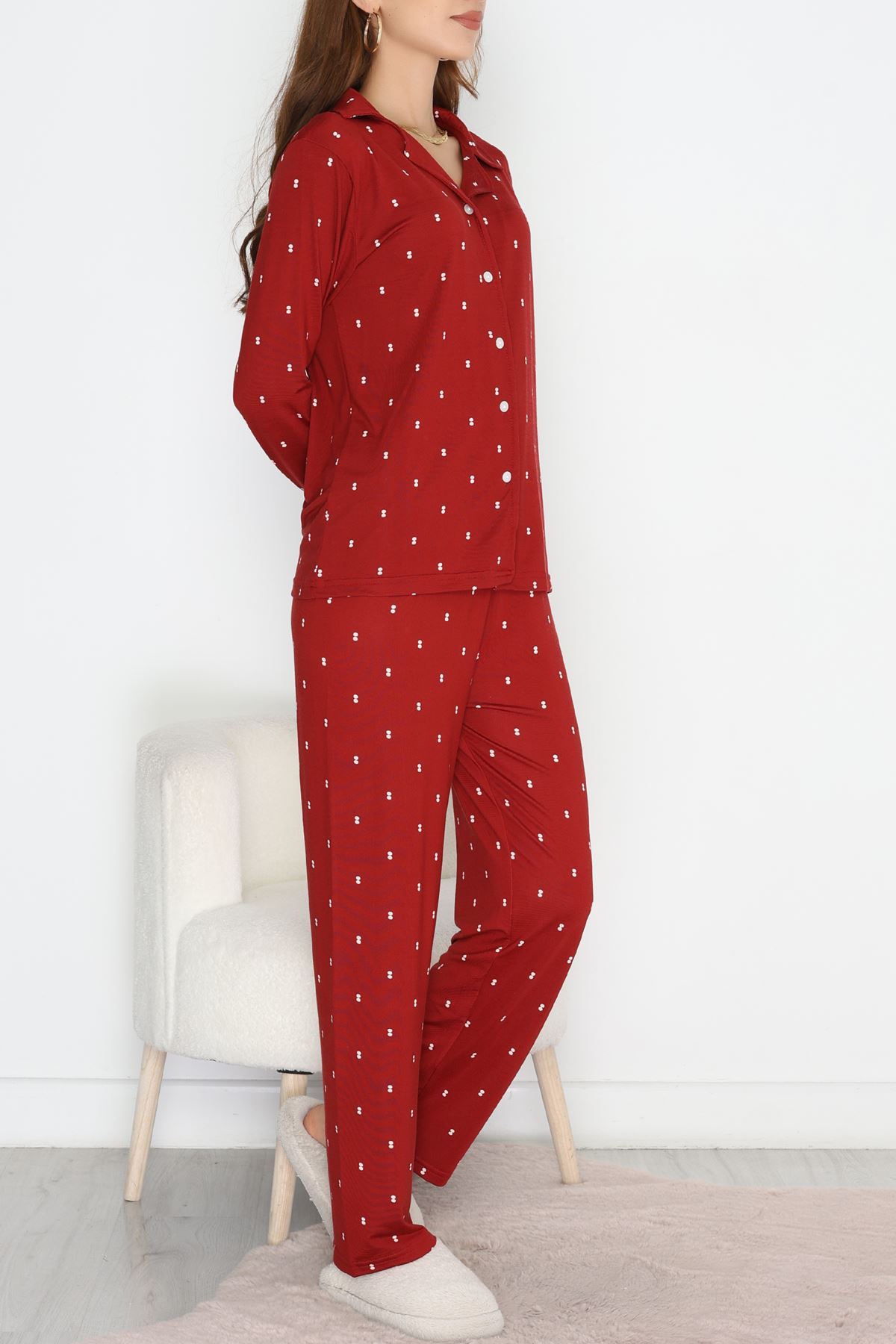 Soft Milan Düğmeli Pijama Takımı Bordobenek - 7511.1287.