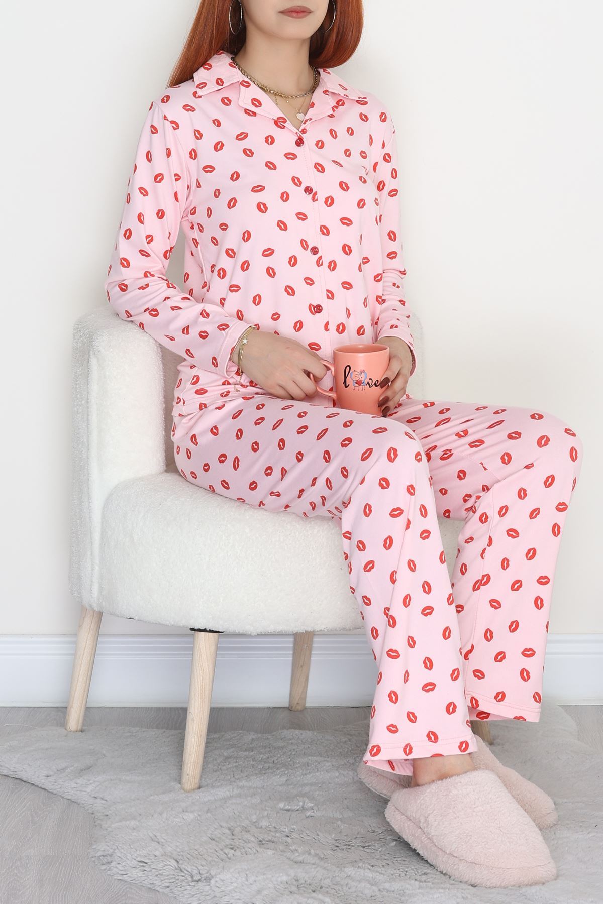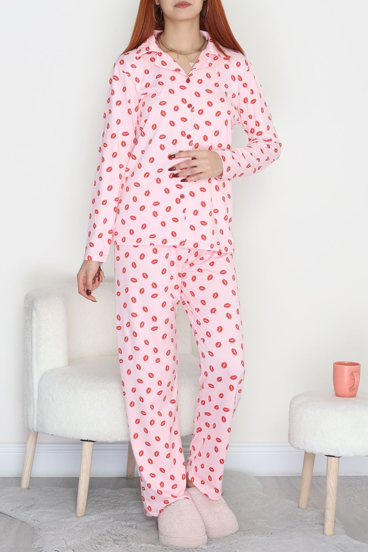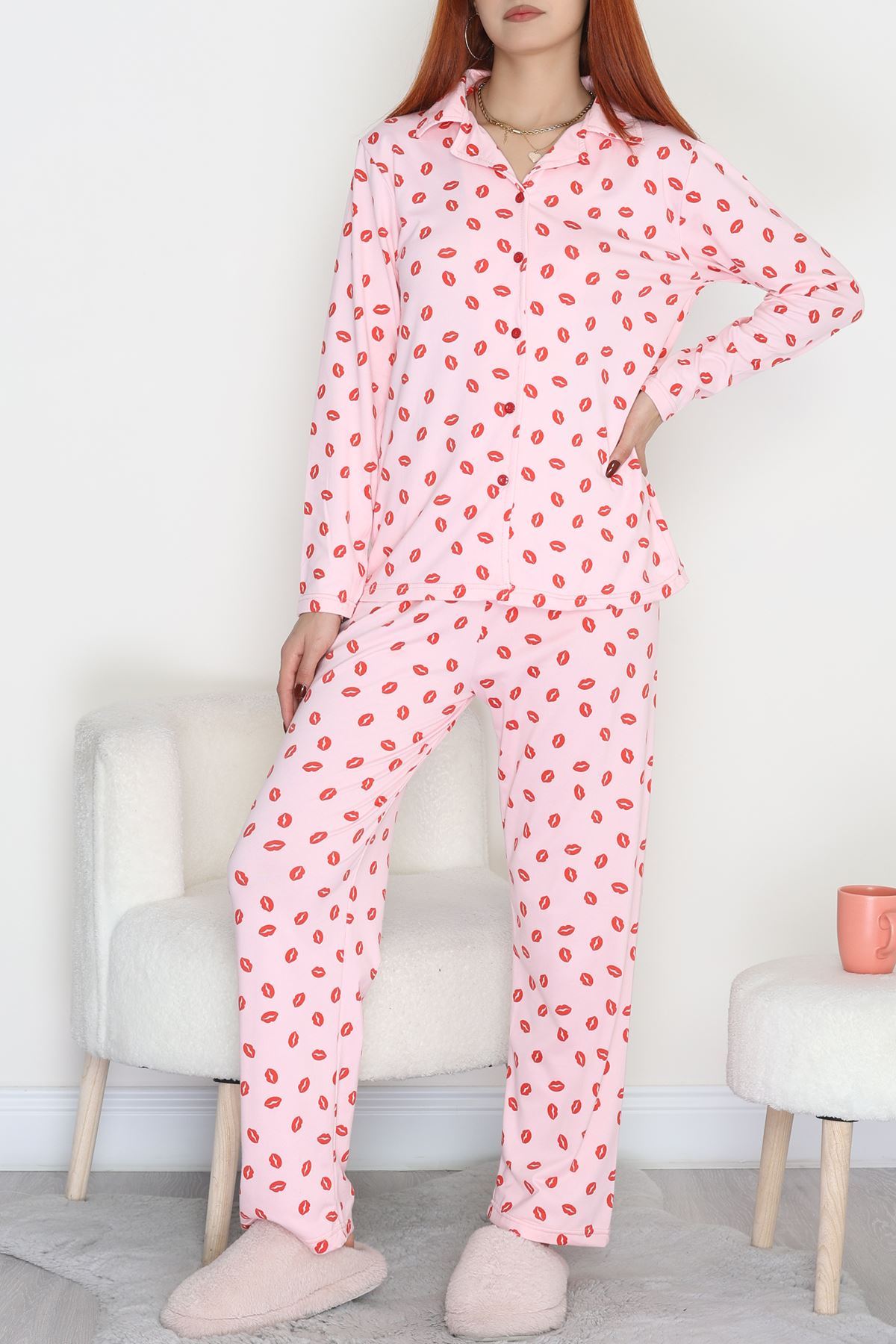 Soft Milan Düğmeli Pijama Takımı Pembedudak - 7511.1287.