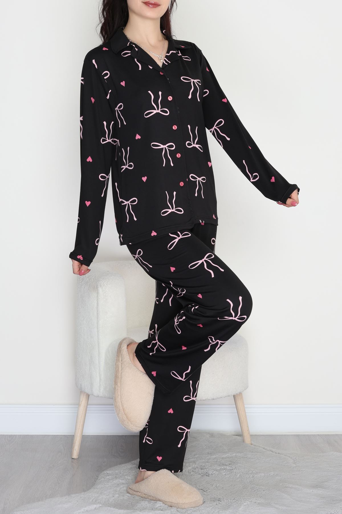 Soft Milan Enjeksiyon Baskılı Pijama Takımı Siyahpembefiyonk - 664.1287.
