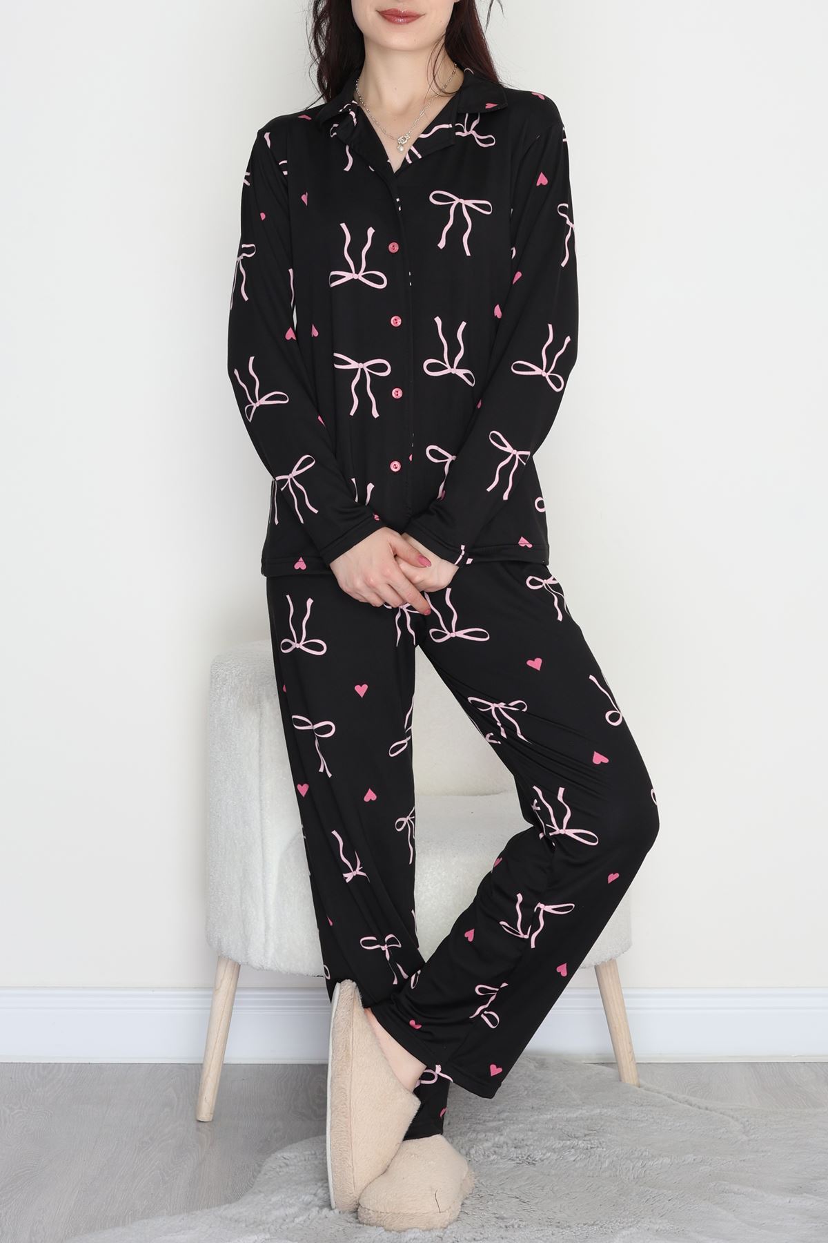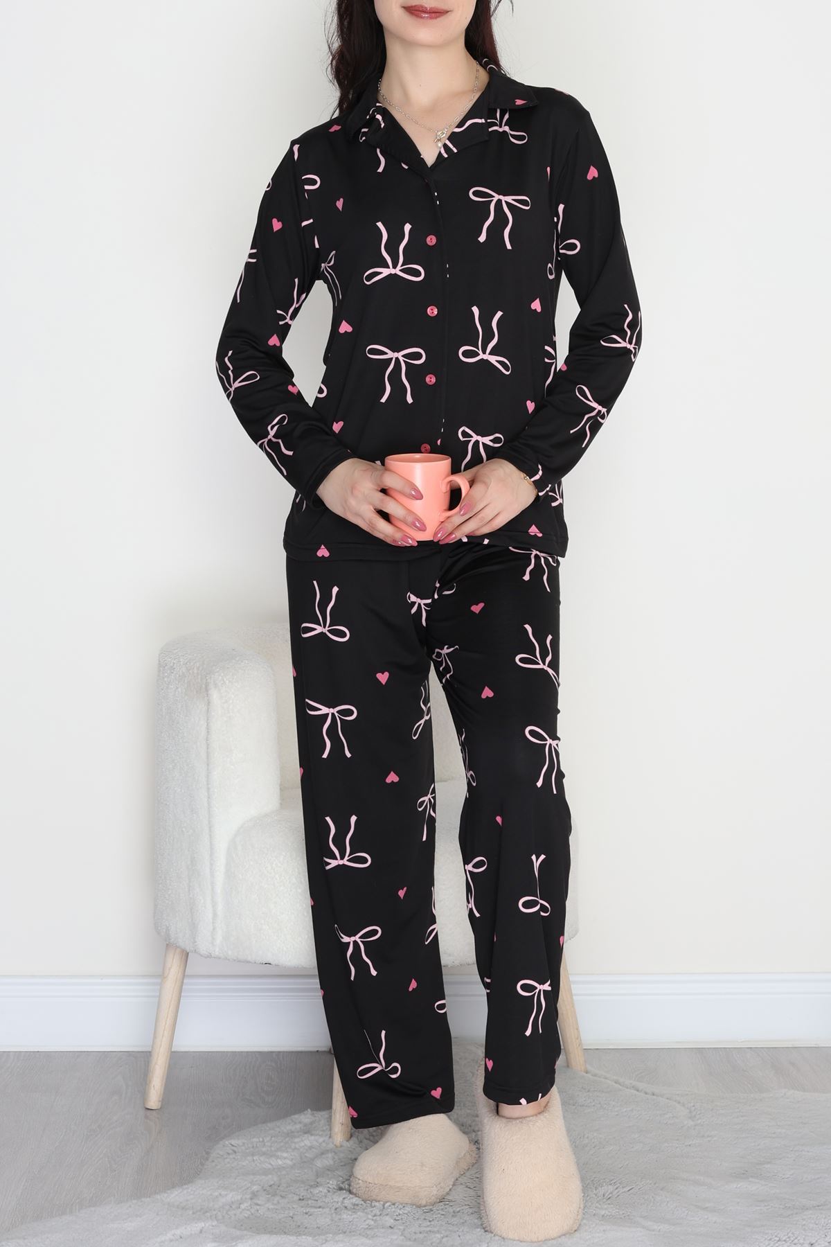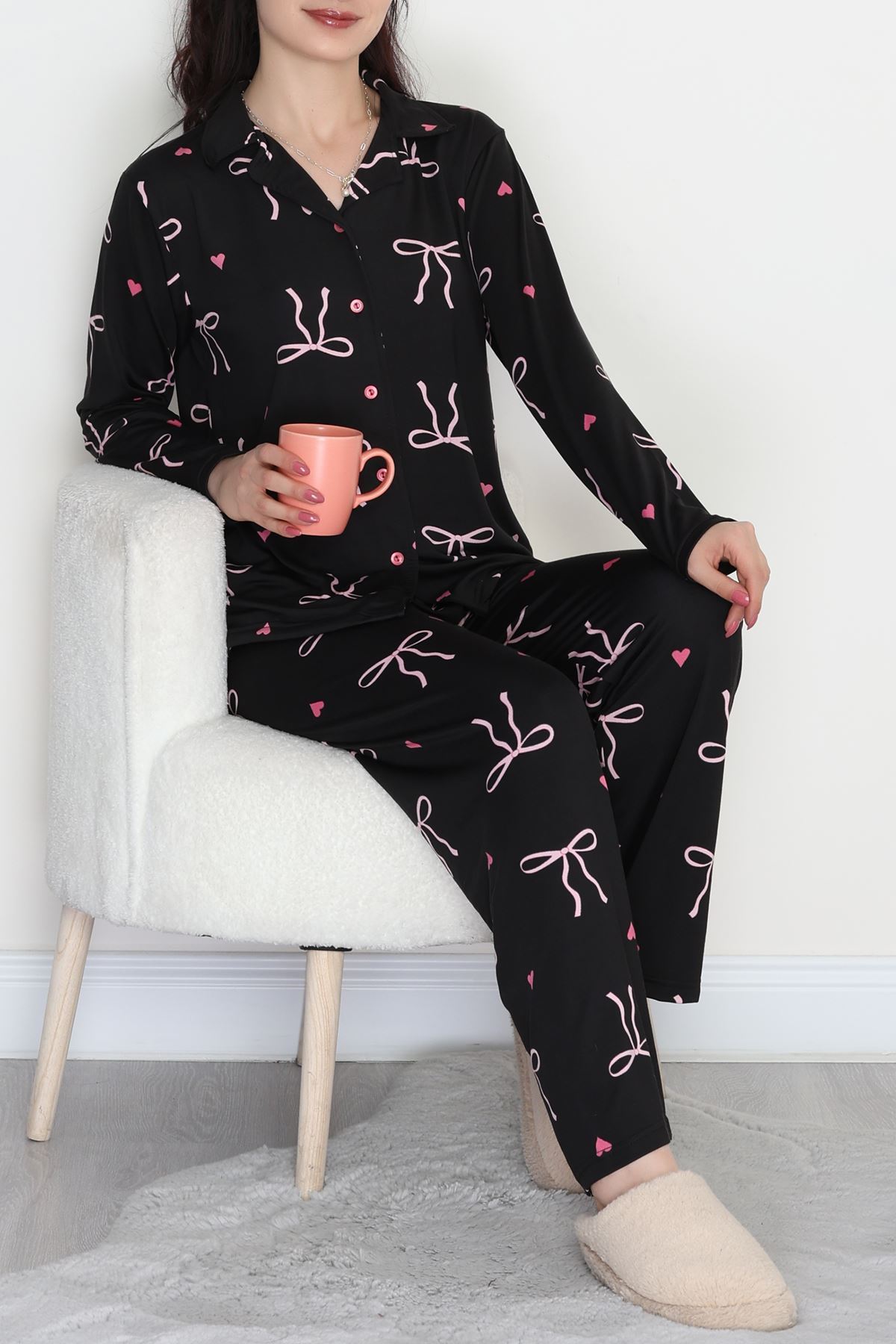 Soft Milan Düğmeli Pijama Takımı Pembefiyonk - 7511.1287.