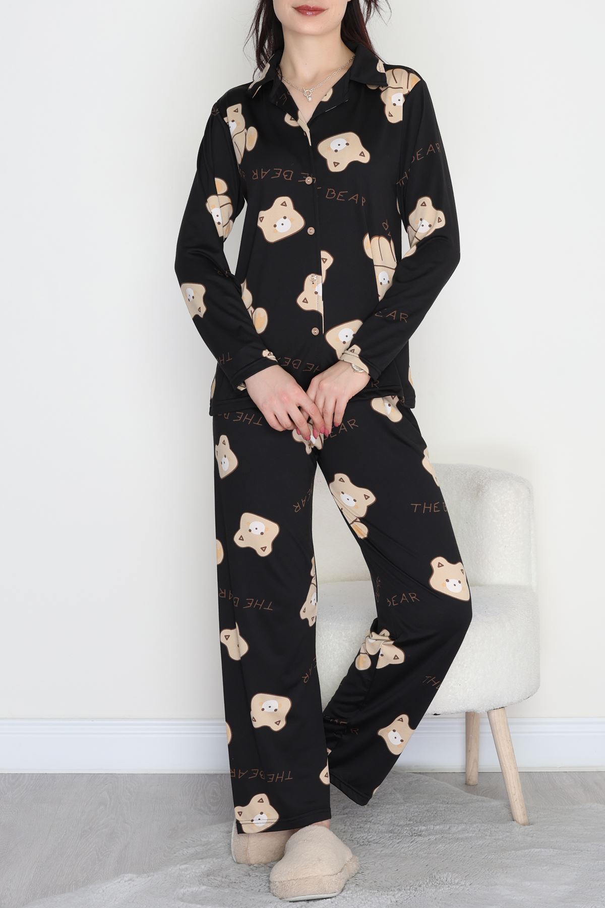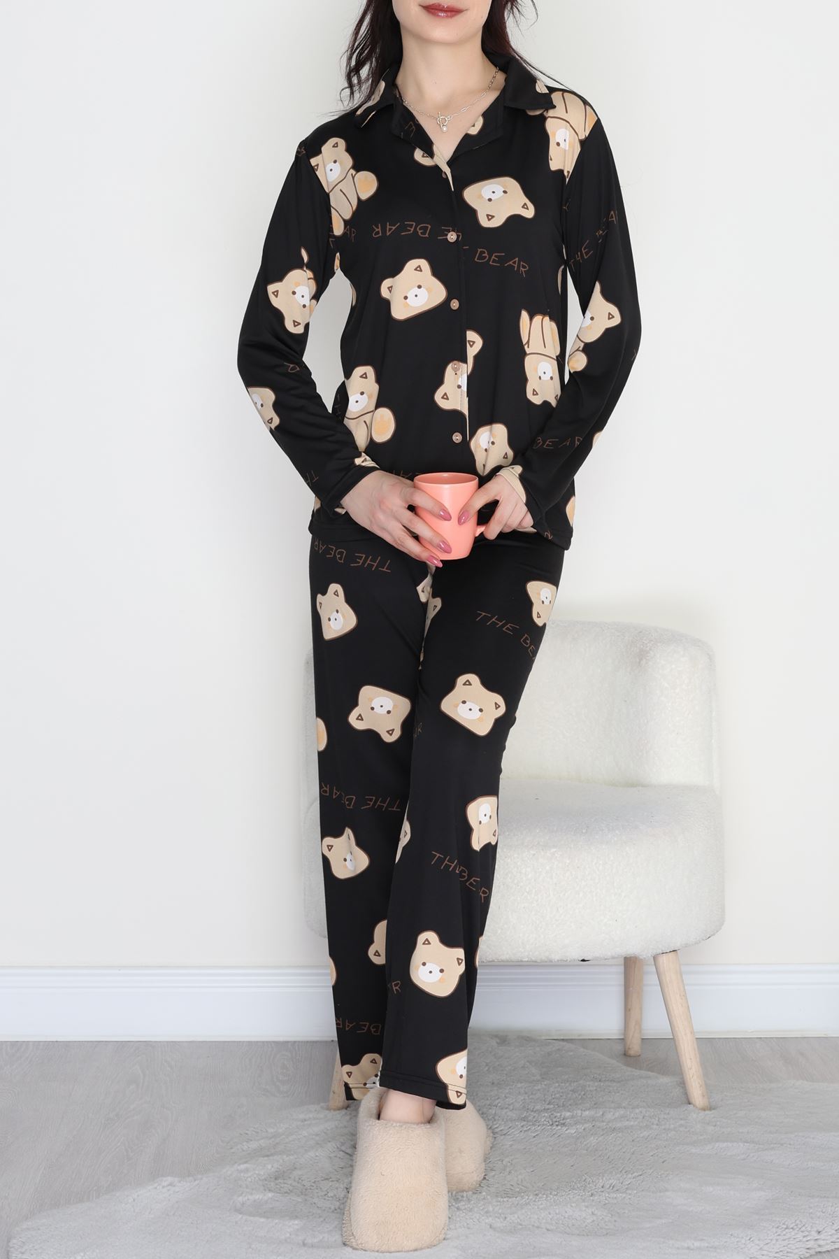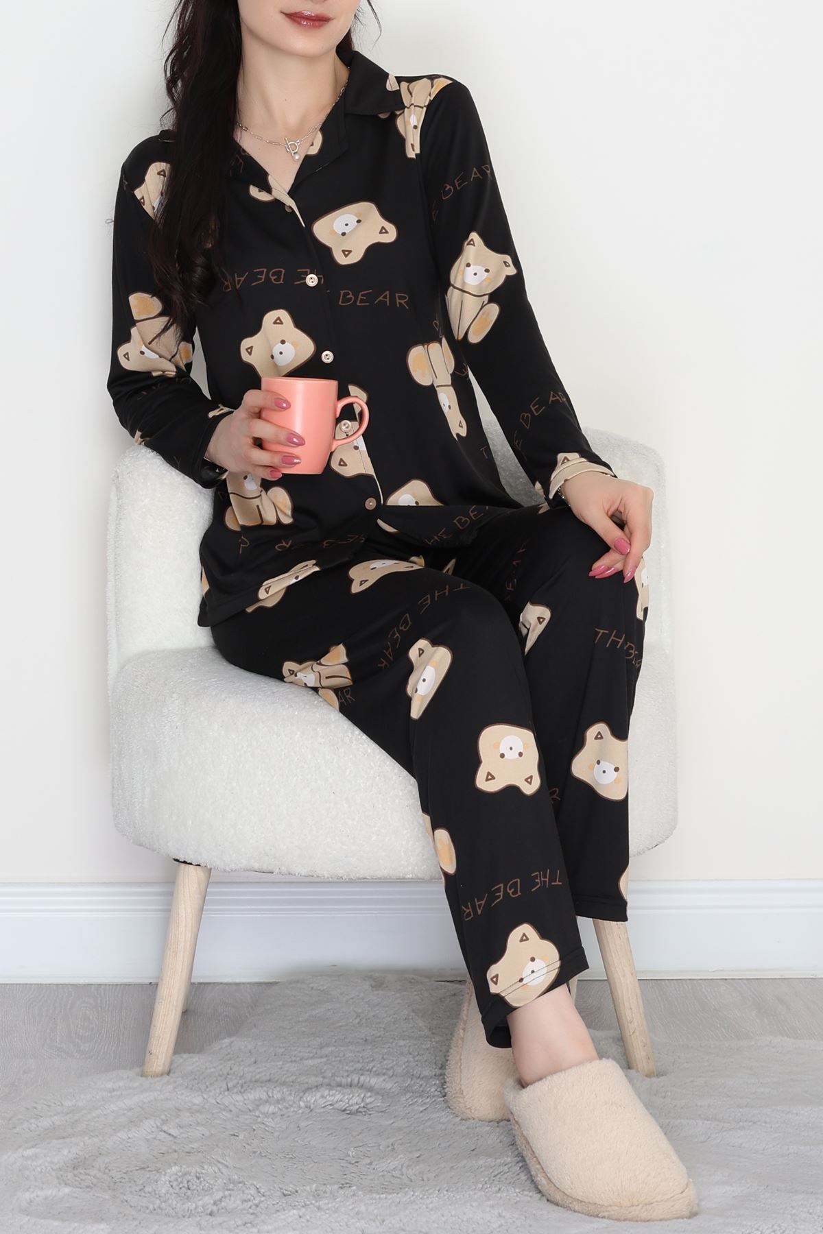 Soft Milan Düğmeli Pijama Takımı Siyahayı - 7511.1287.