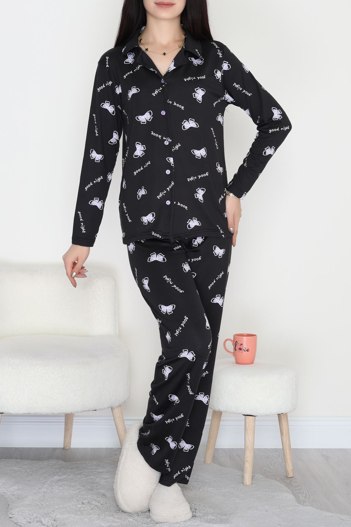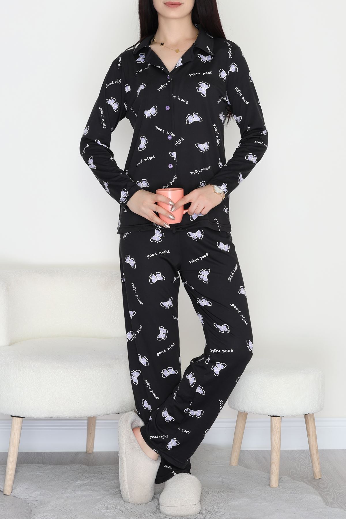 Soft Milan Düğmeli Pijama Takımı Siyahfiyonk - 7511.1287.