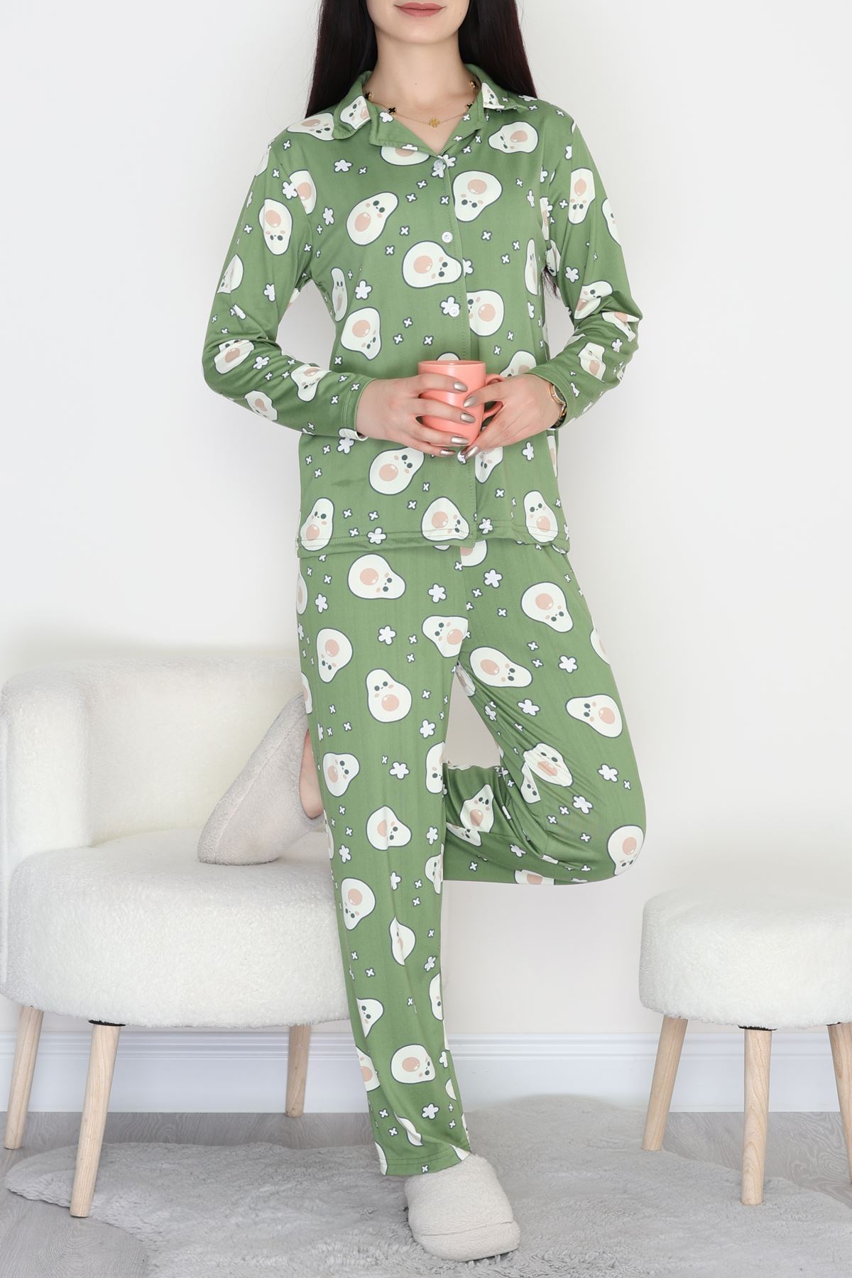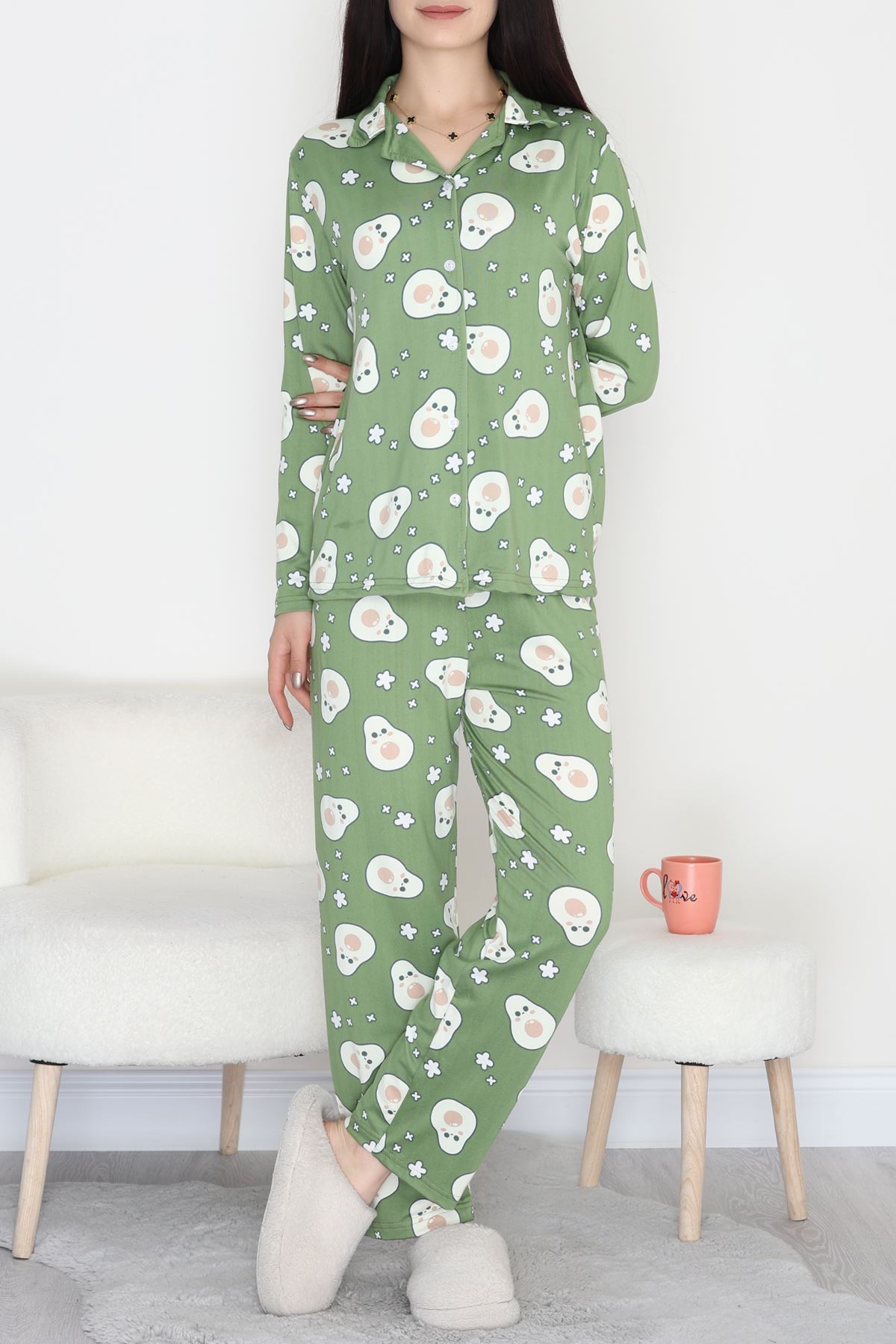 Soft Milan Düğmeli Pijama Takımı Yeşil - 7511.1287.