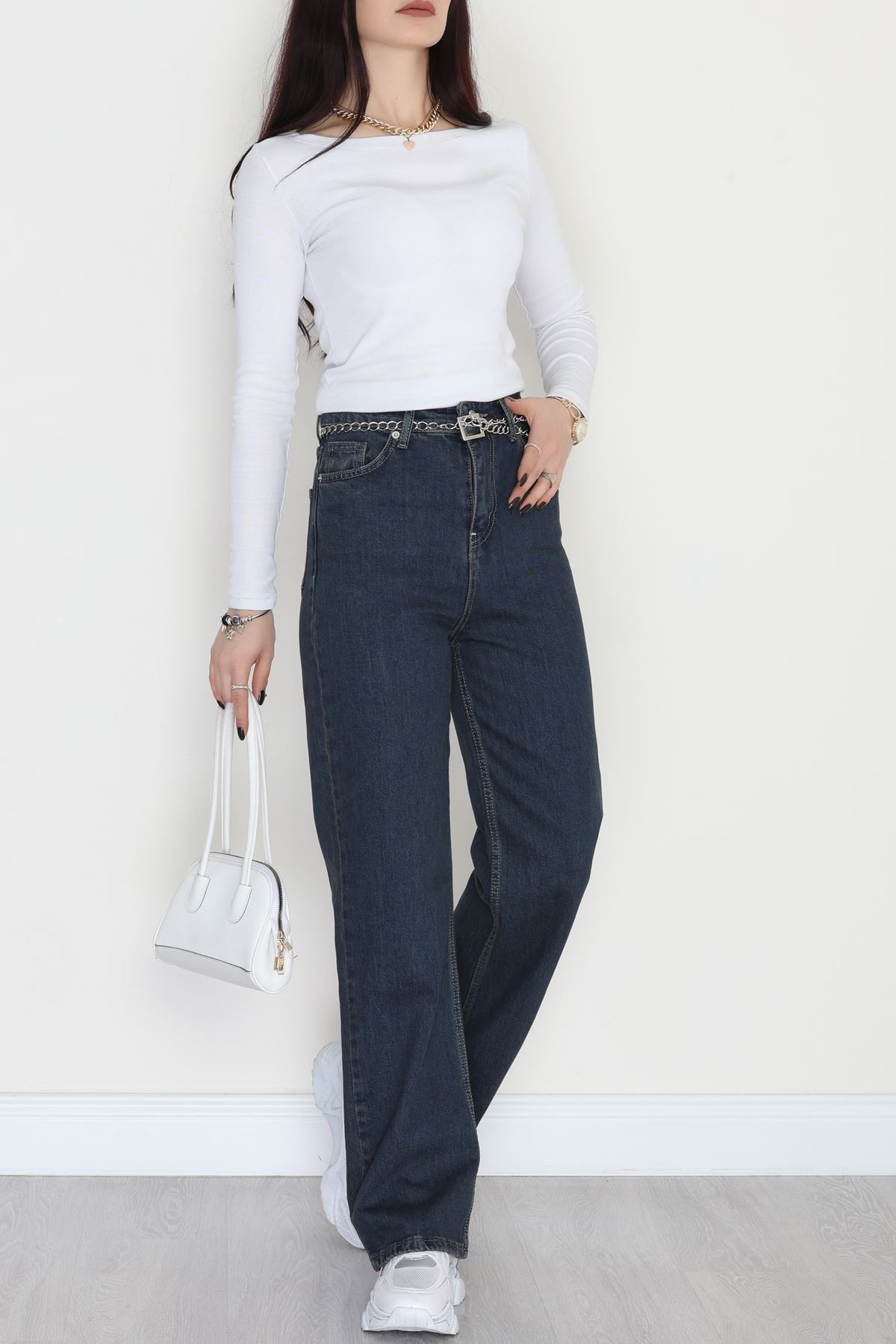 Geniş Paça Palazzo Kot Pantolon Lacivert - 31564.2059.