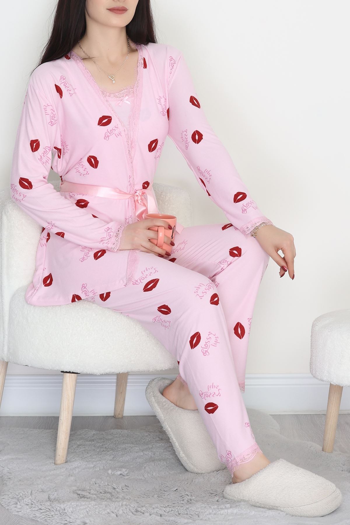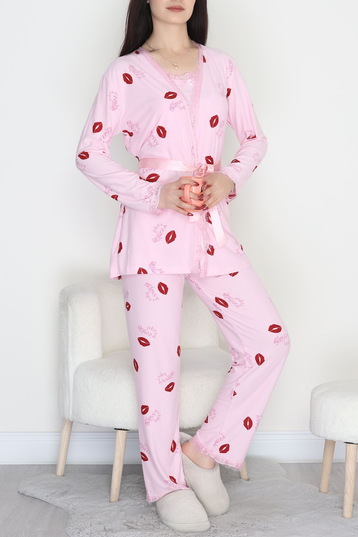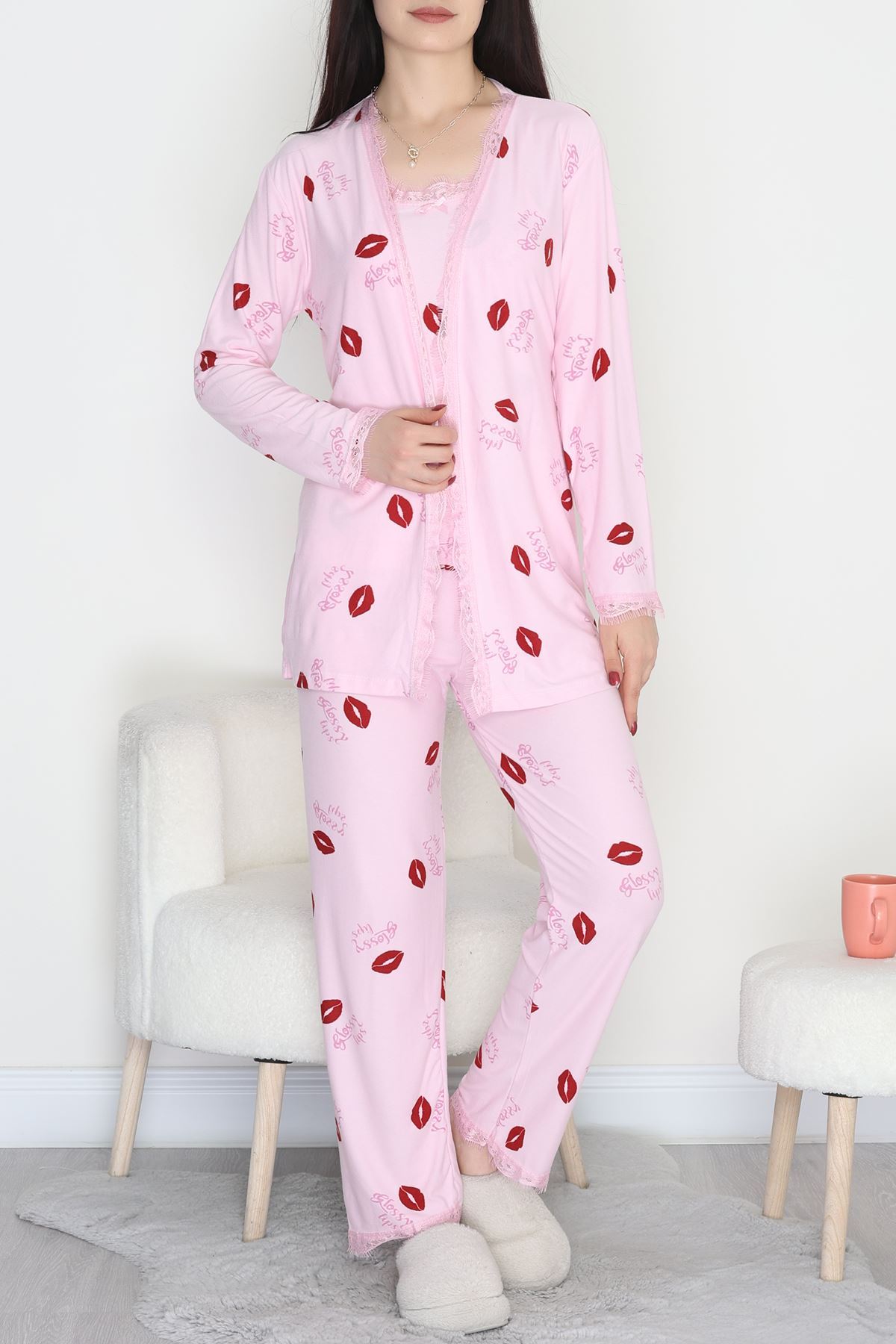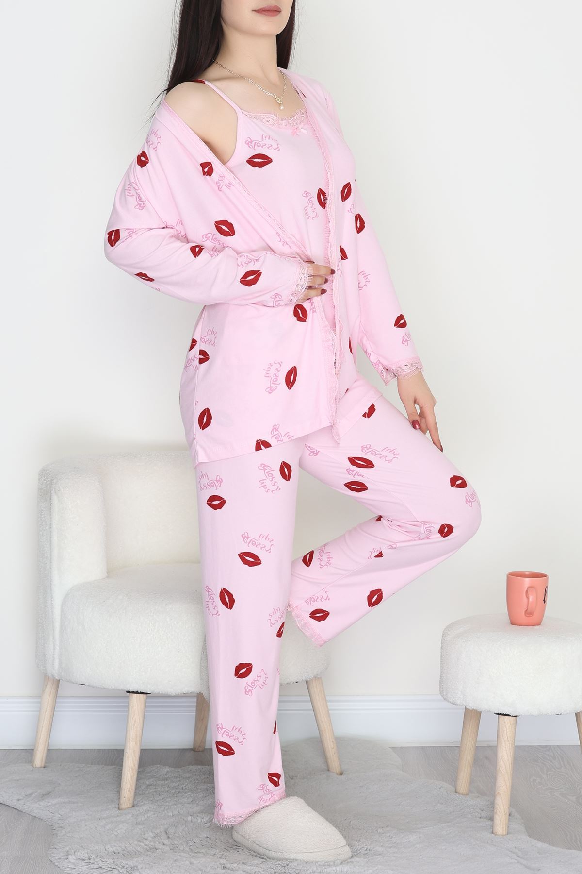 Süet 3'Lü Pijama Set Kırmızıdudak - 798.1287.