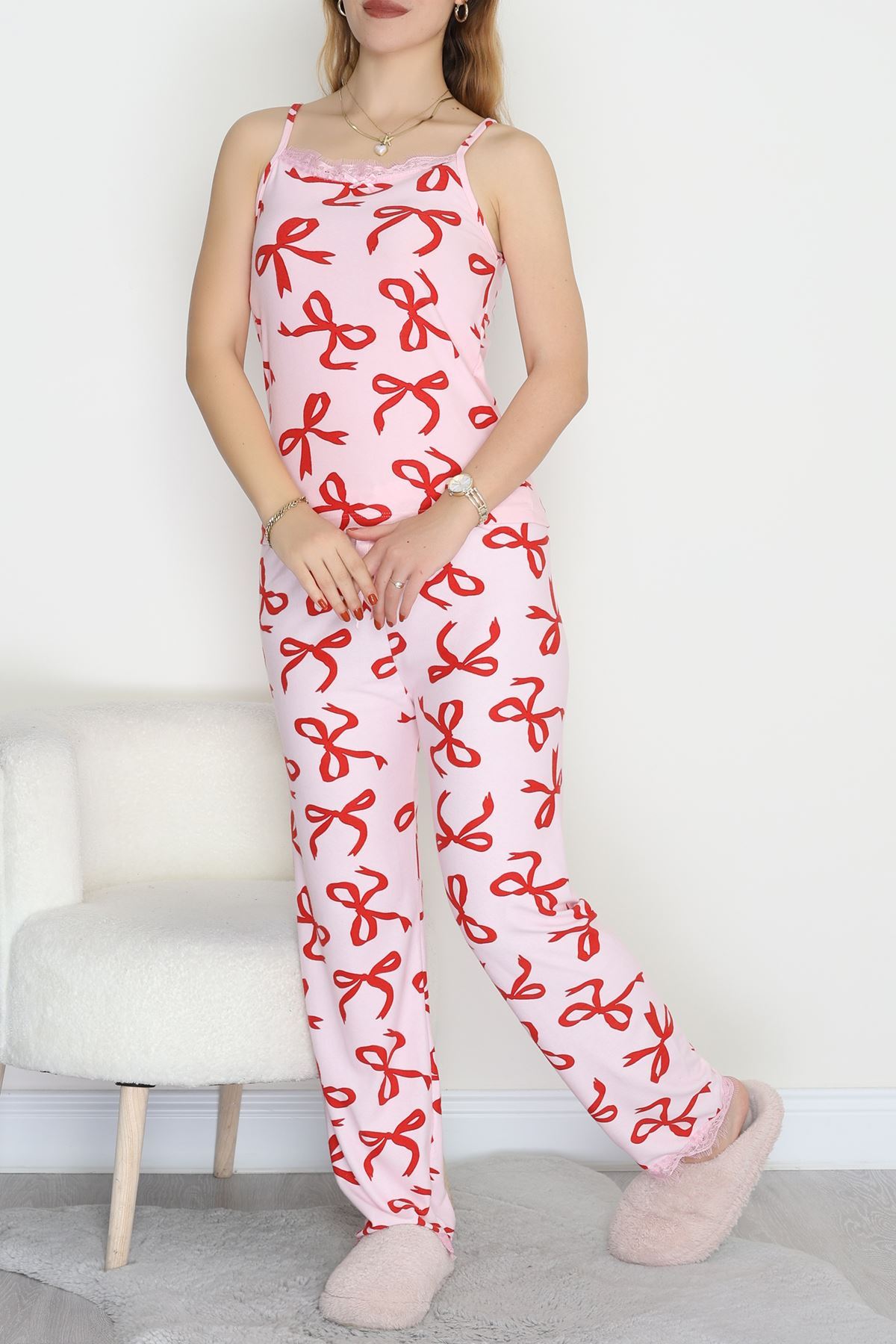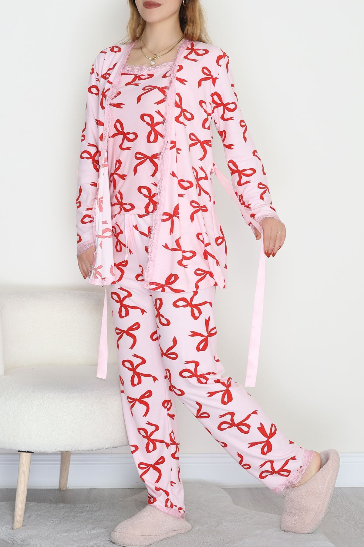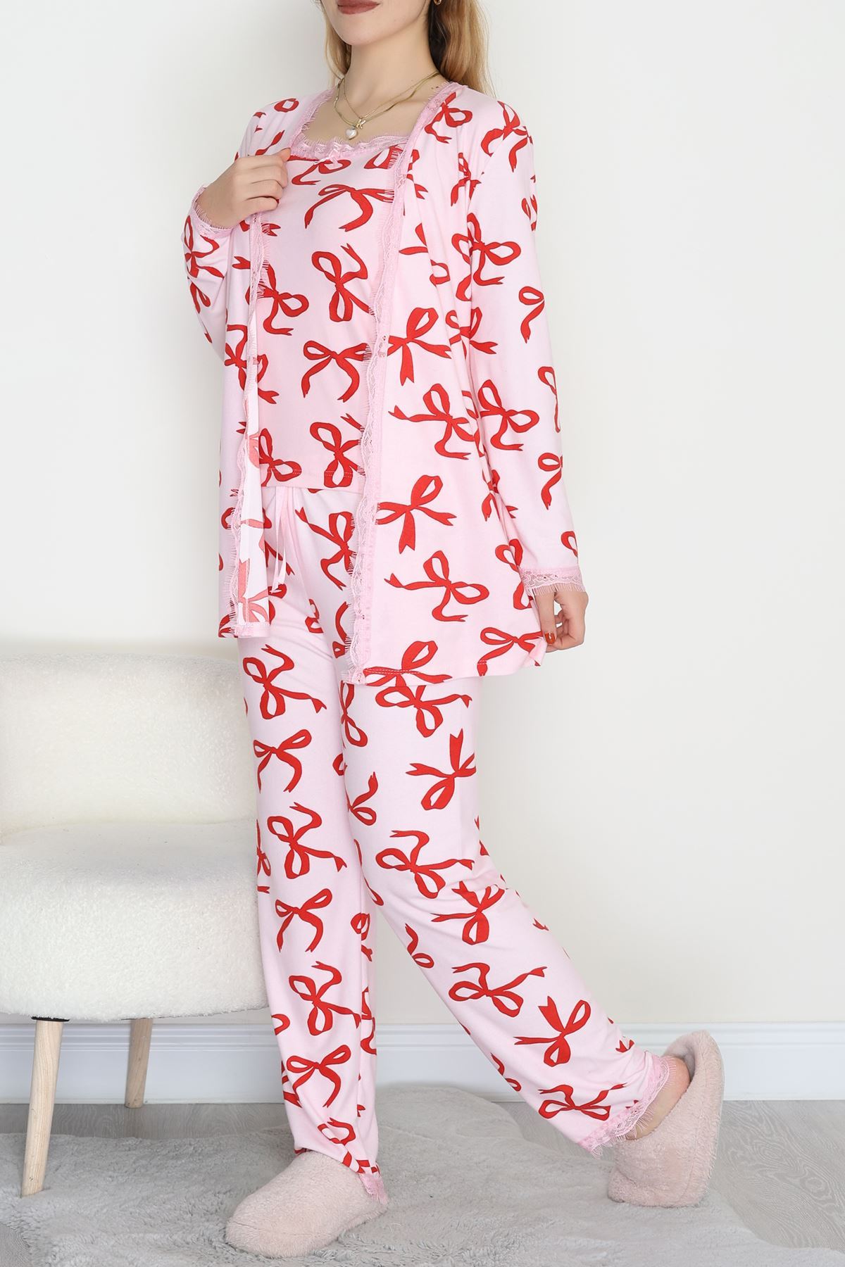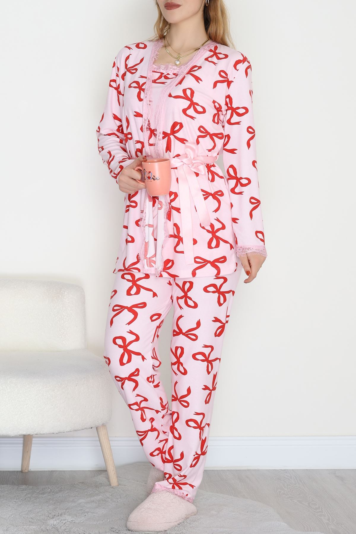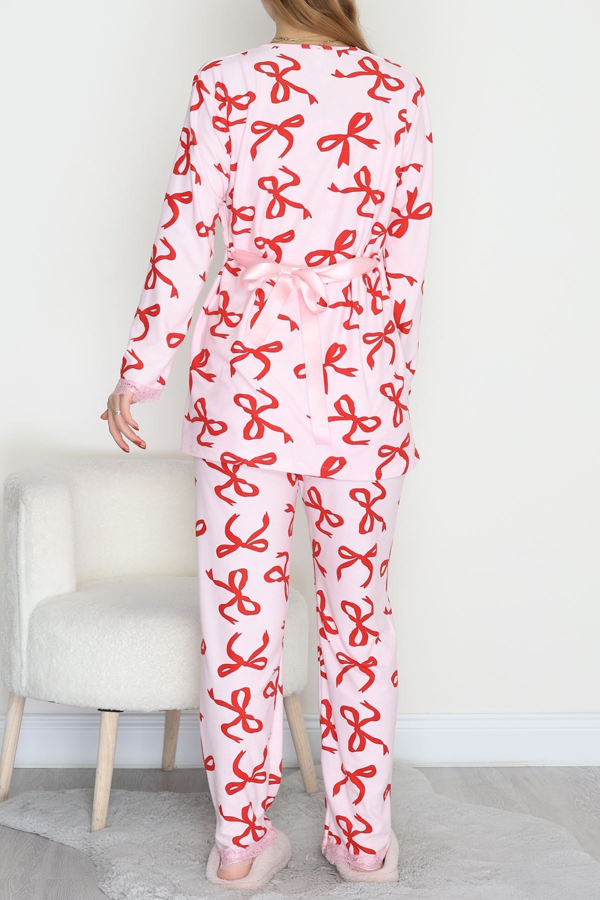 Süet 3'Lü Pijama Set Kırmızıkurdele - 798.1287.